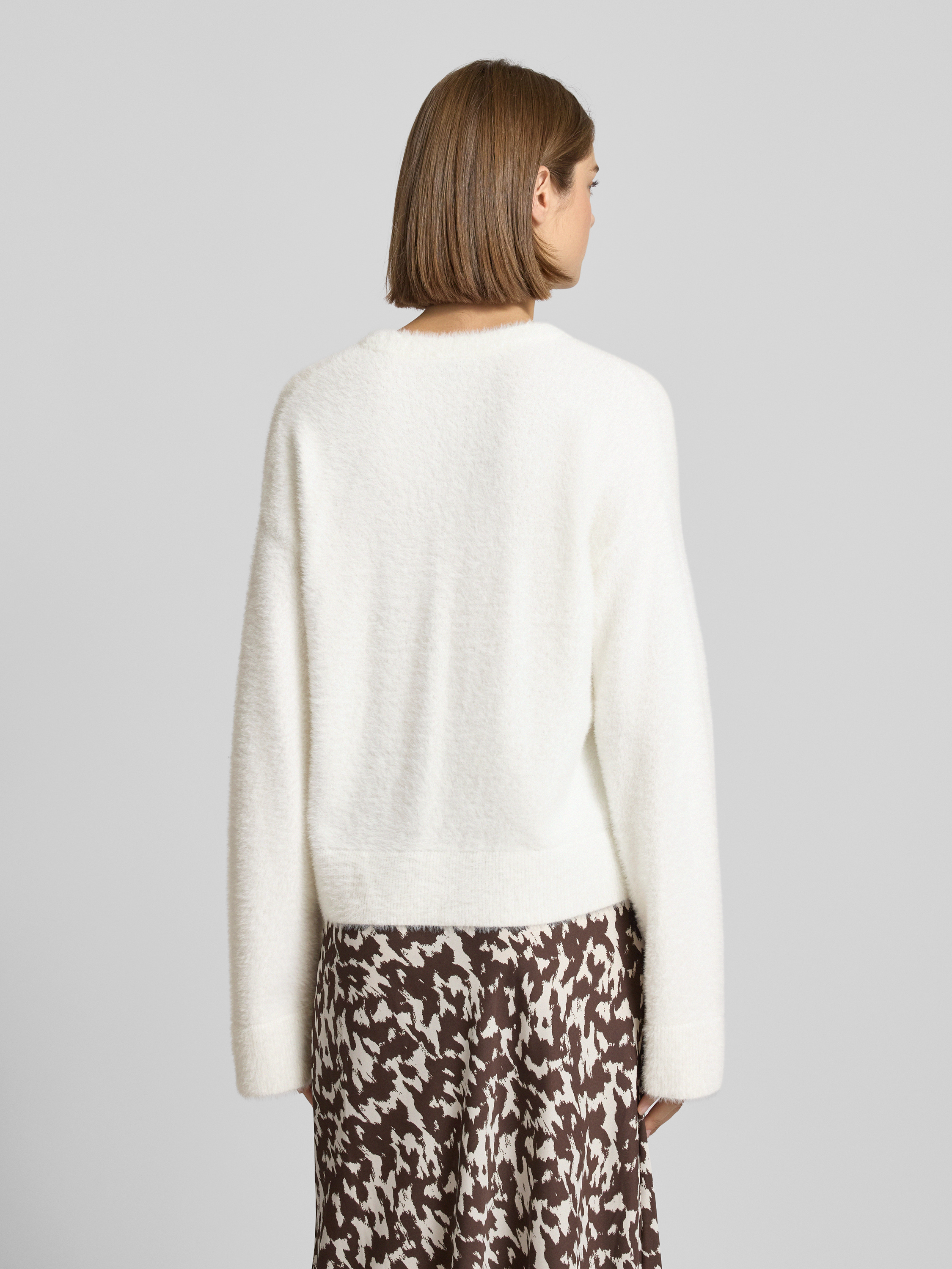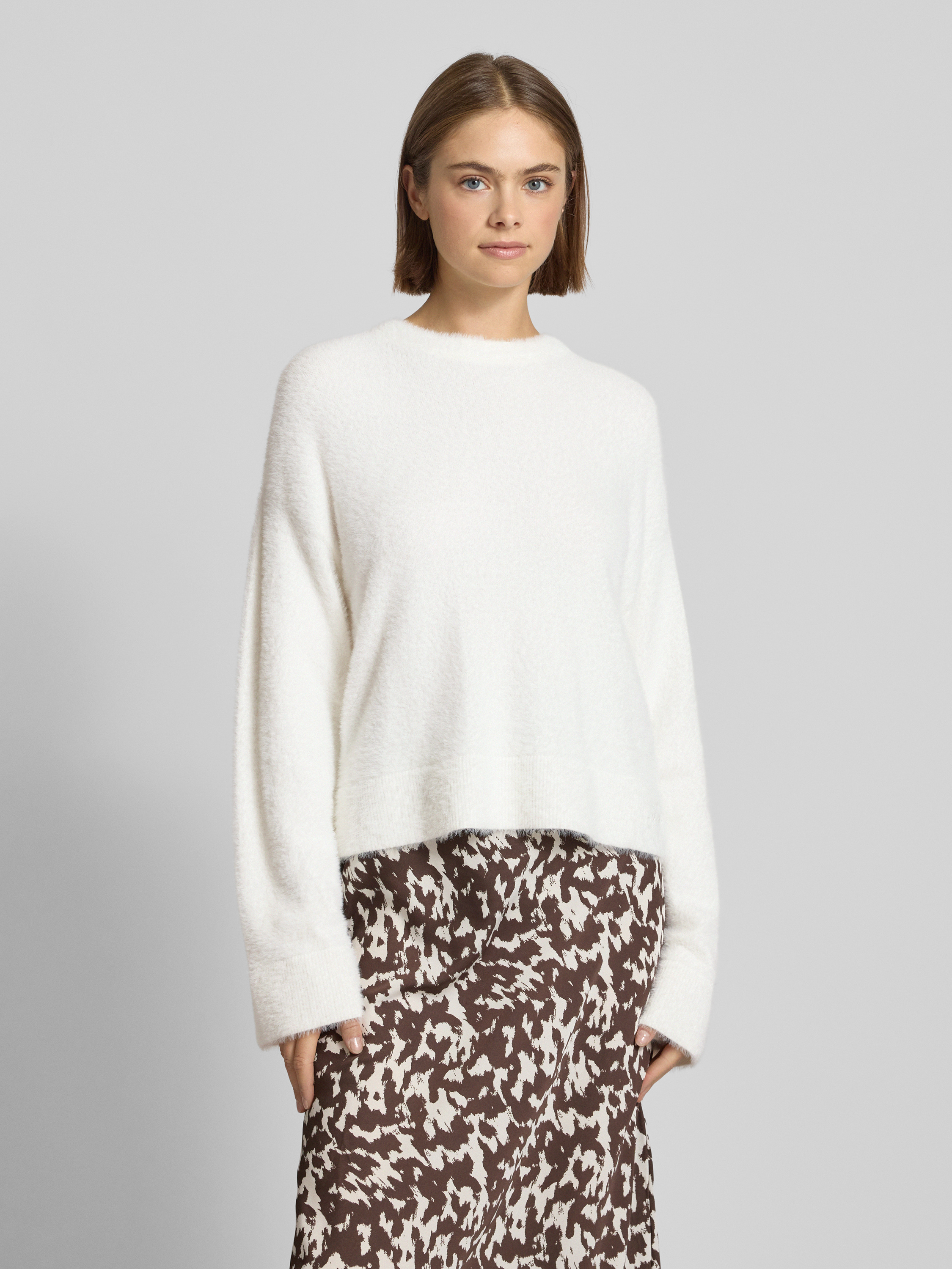 Sweter z dzianiny o kroju regular fit z wyhaftowanym logo model ‘SFURRYNA’ - biały