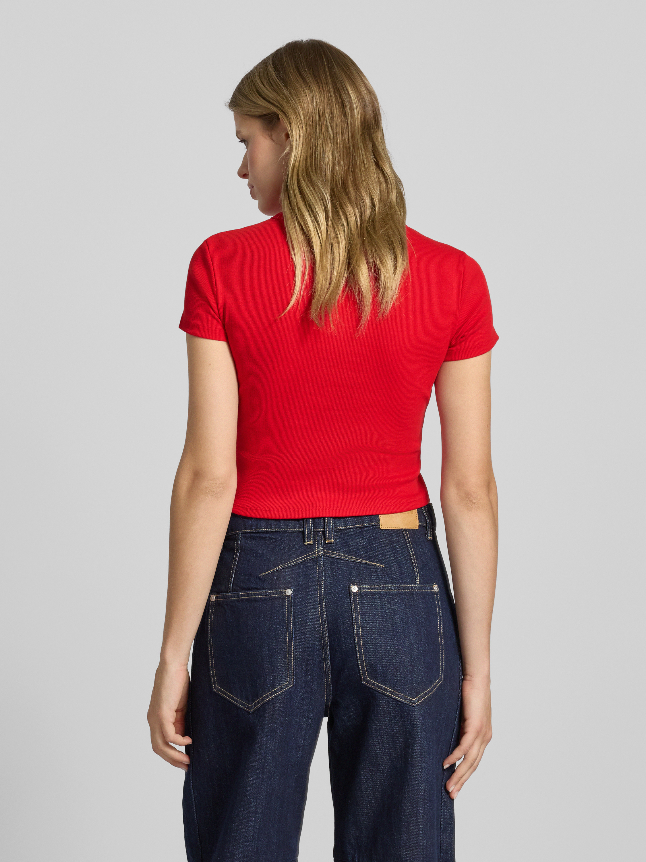 T-shirt o kroju slim fit z mieszanki bawełny model ‘BABY TEE_B’ - wiśniowy