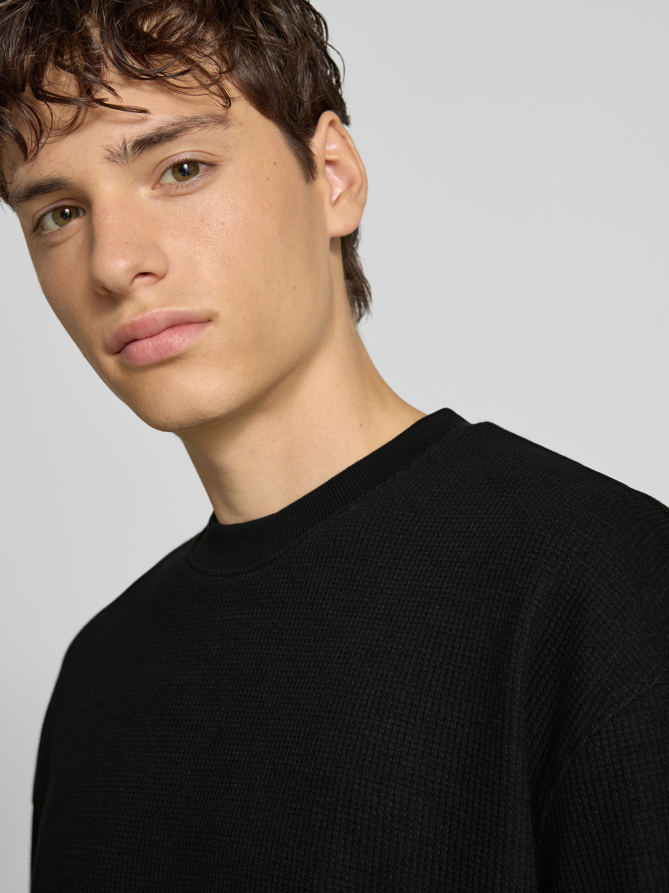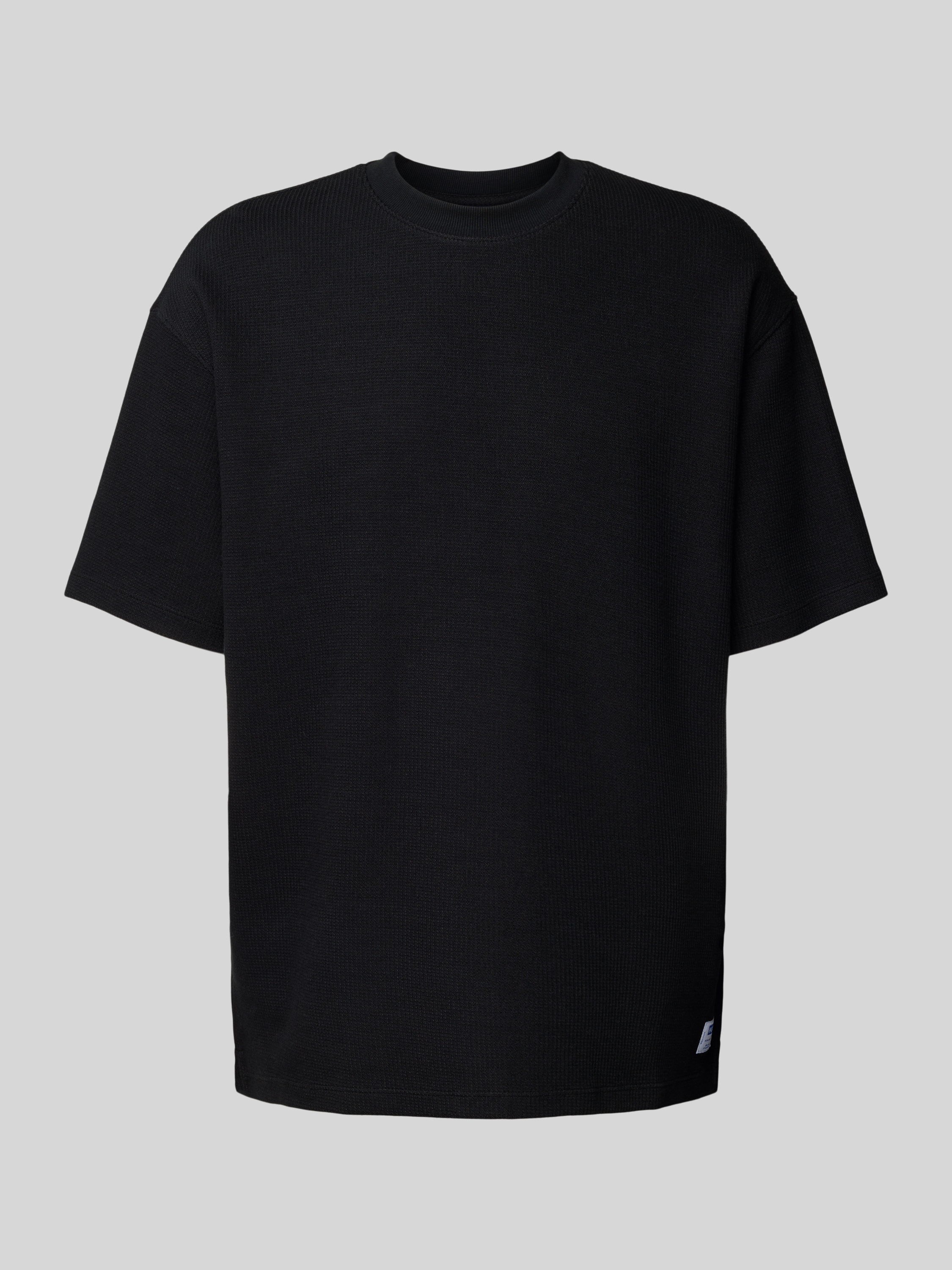 T-shirt z okrągłym dekoltem i fakturowanym wzorem - czarny