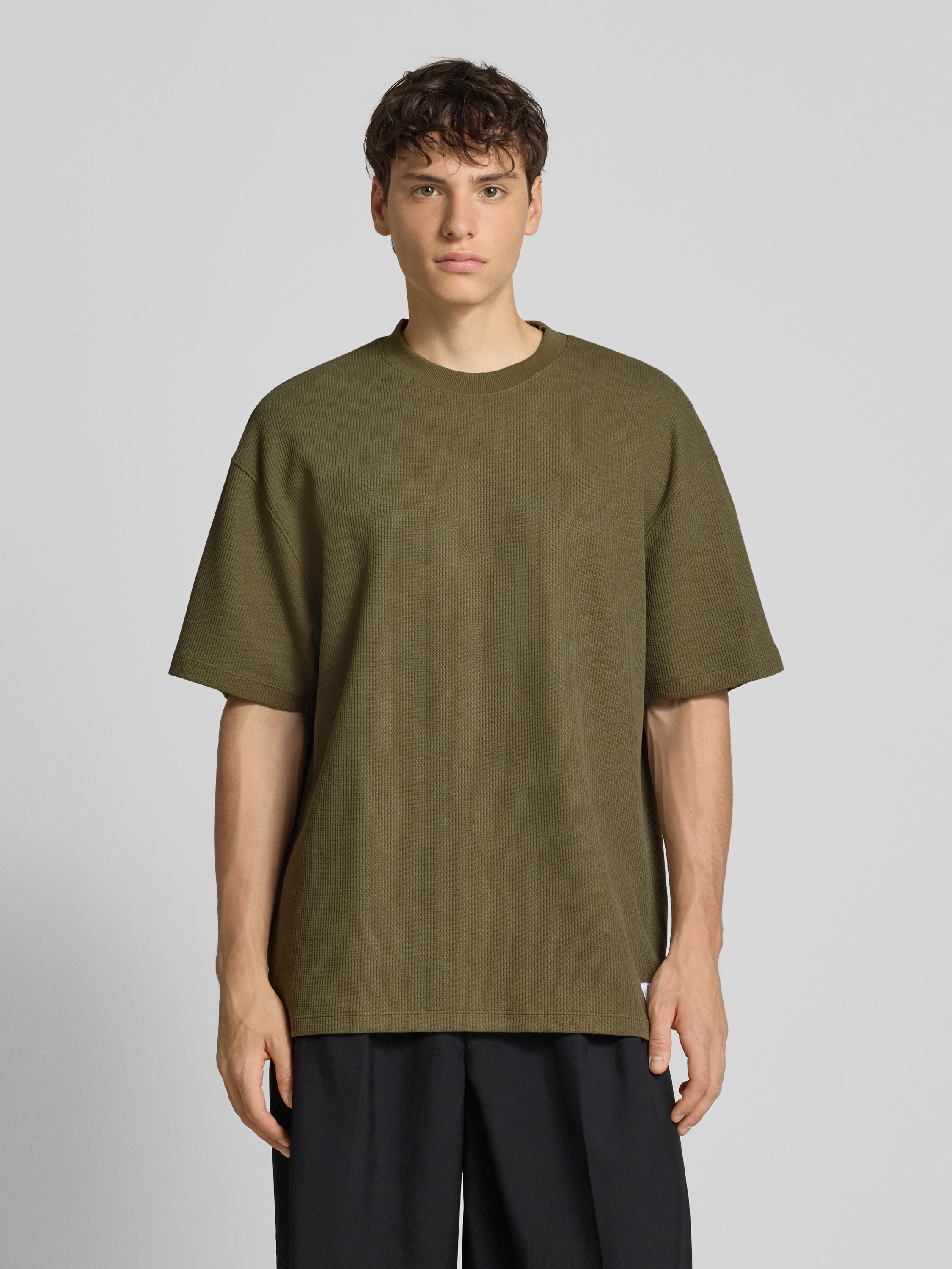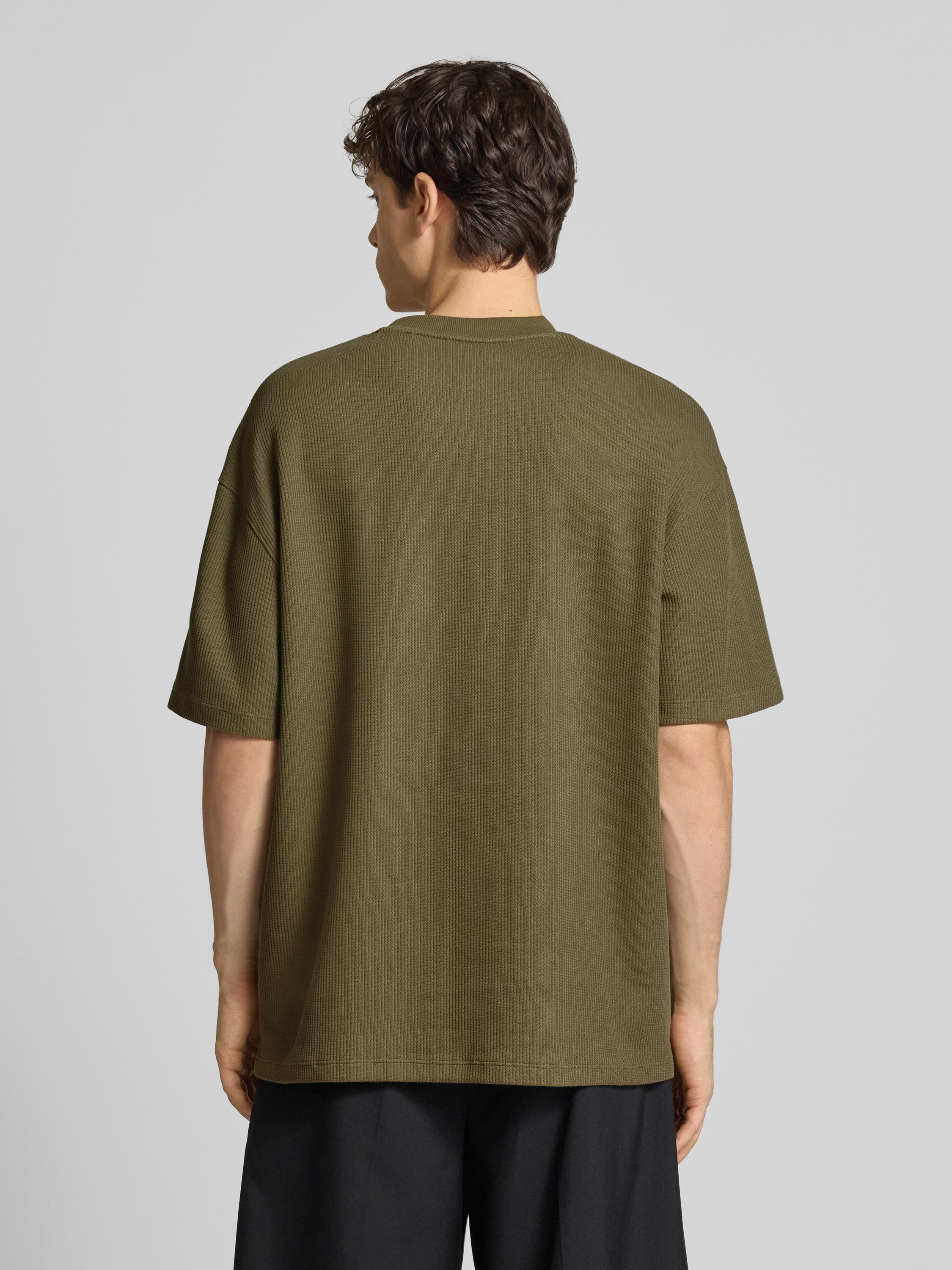 T-shirt z okrągłym dekoltem i fakturowanym wzorem - oliwkowy