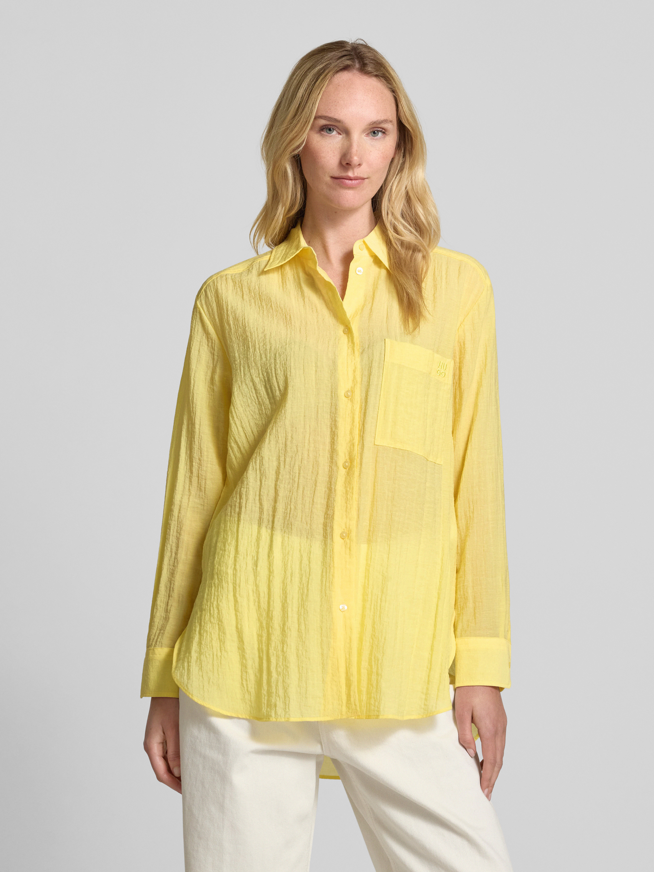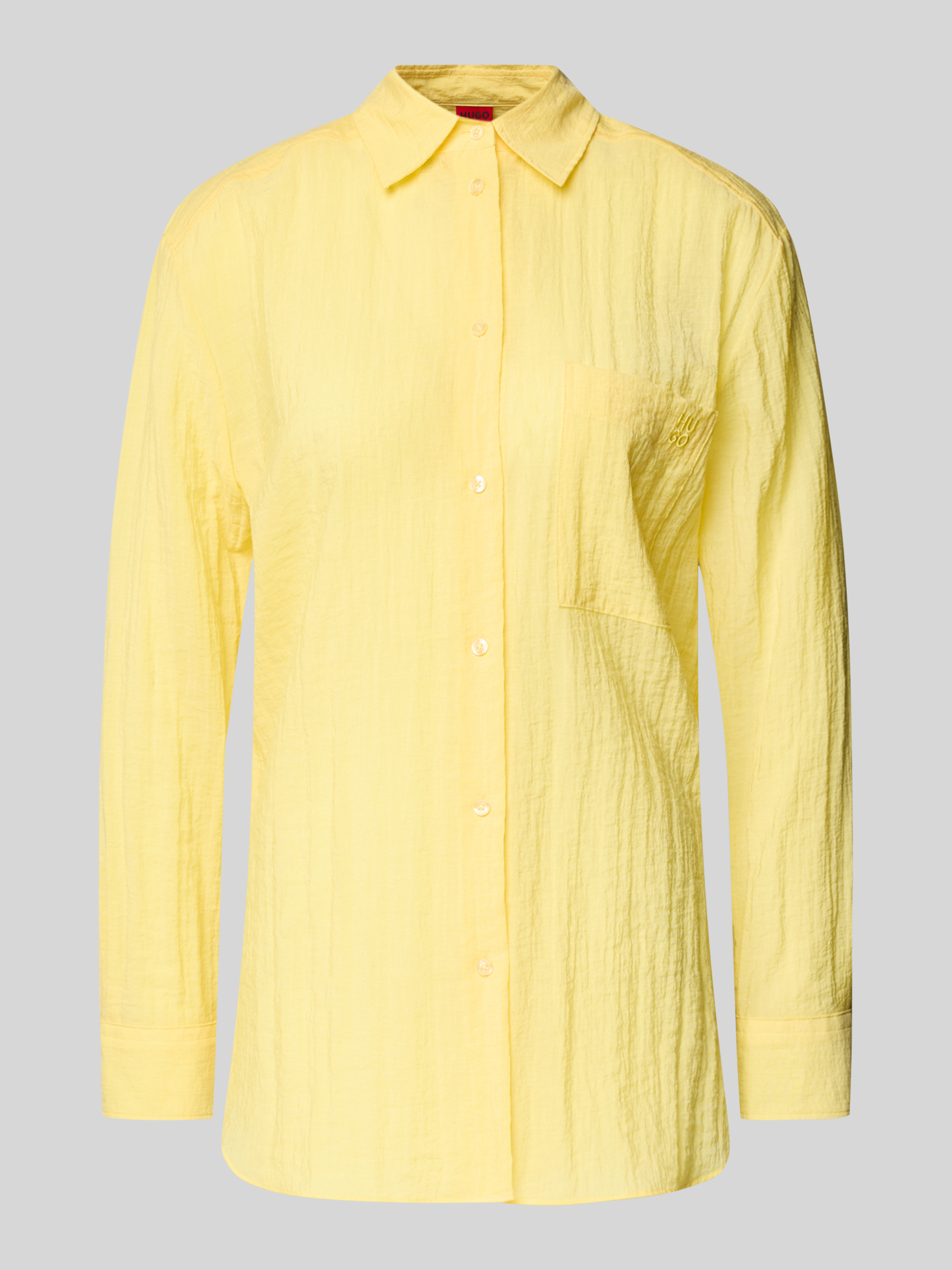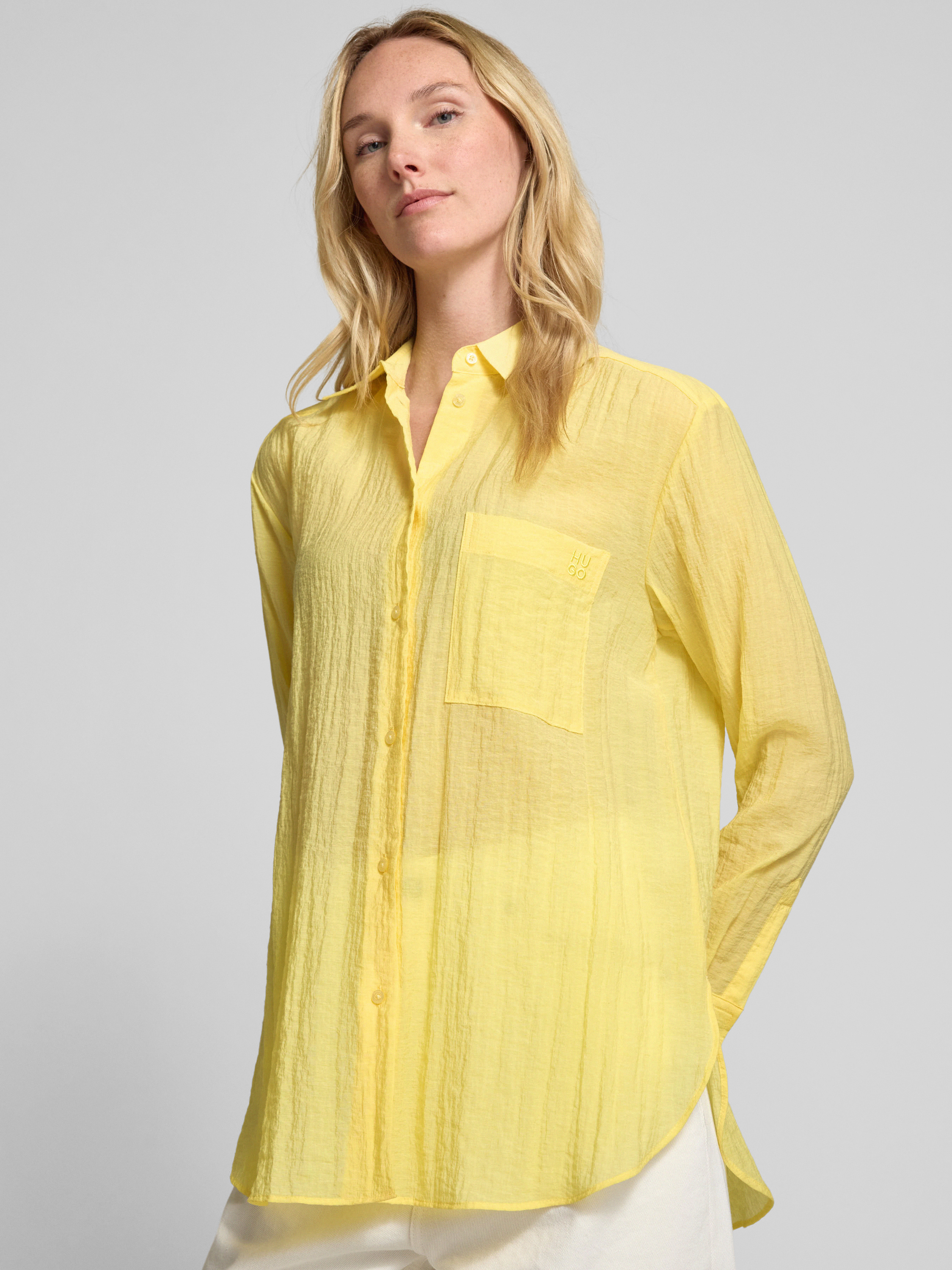 Bluzka koszulowa o kroju relaxed fit z efektem marszczenia model ‘Elodina’ - jasnożółty
