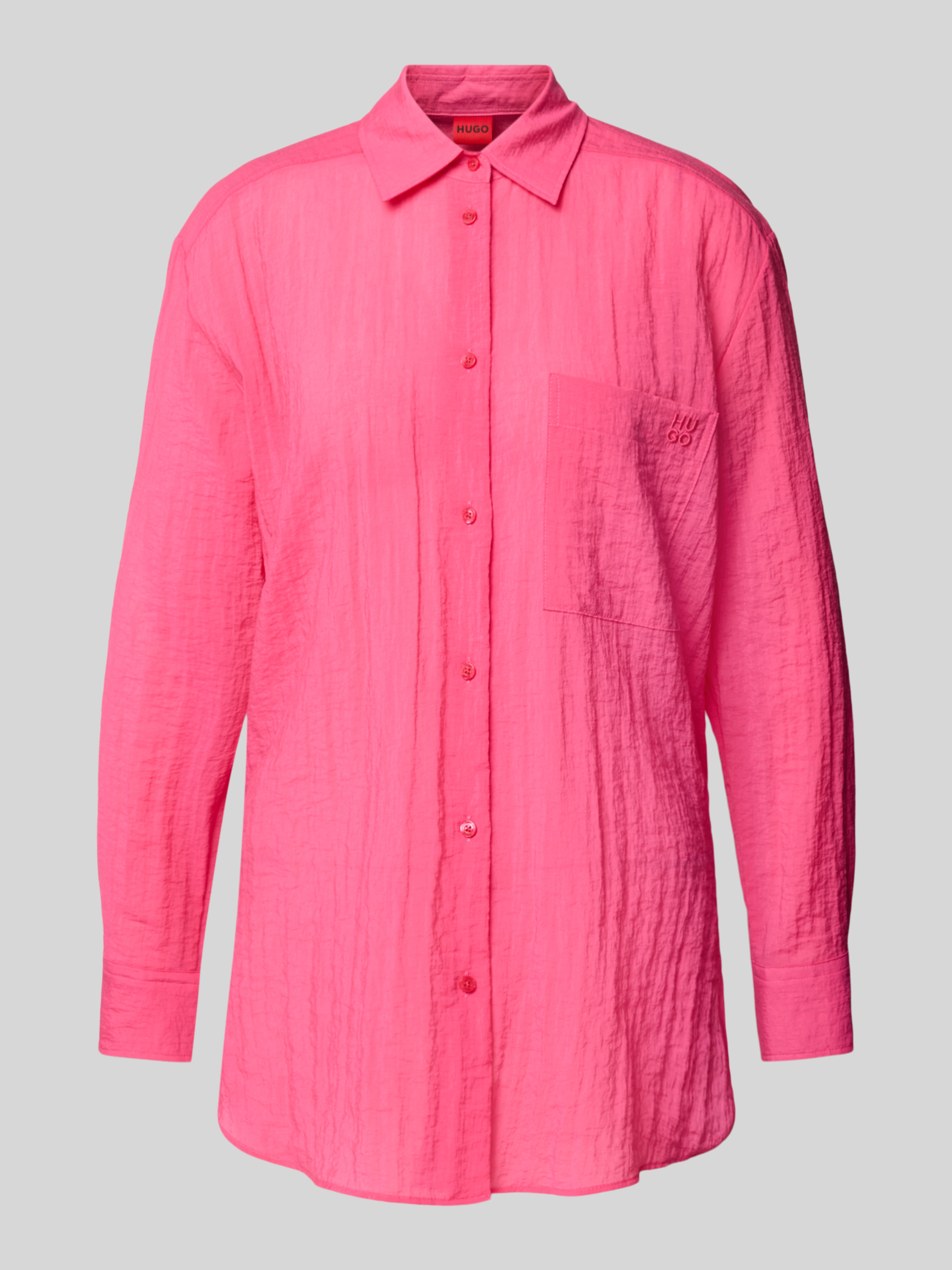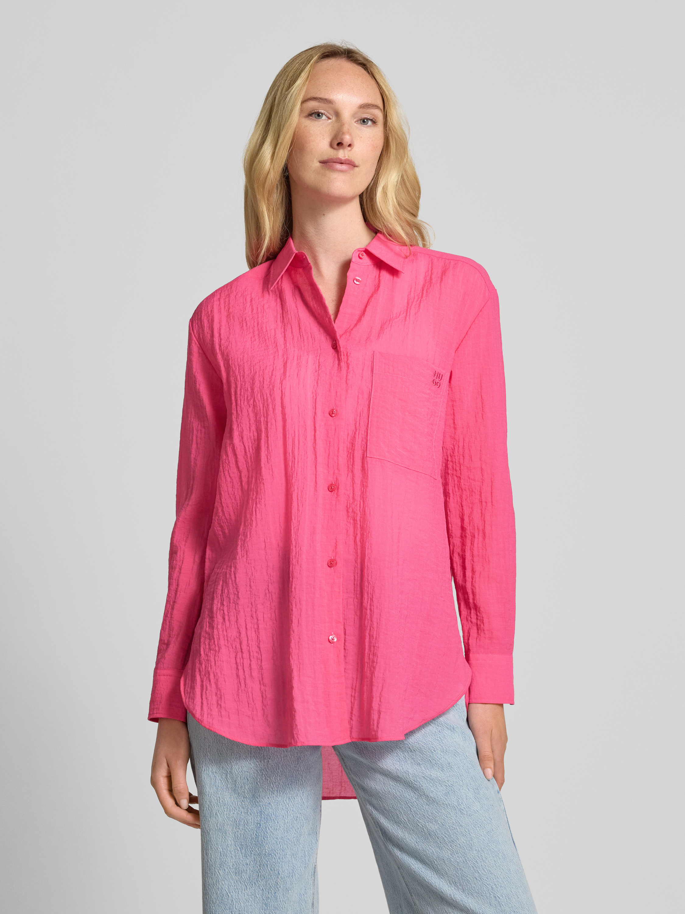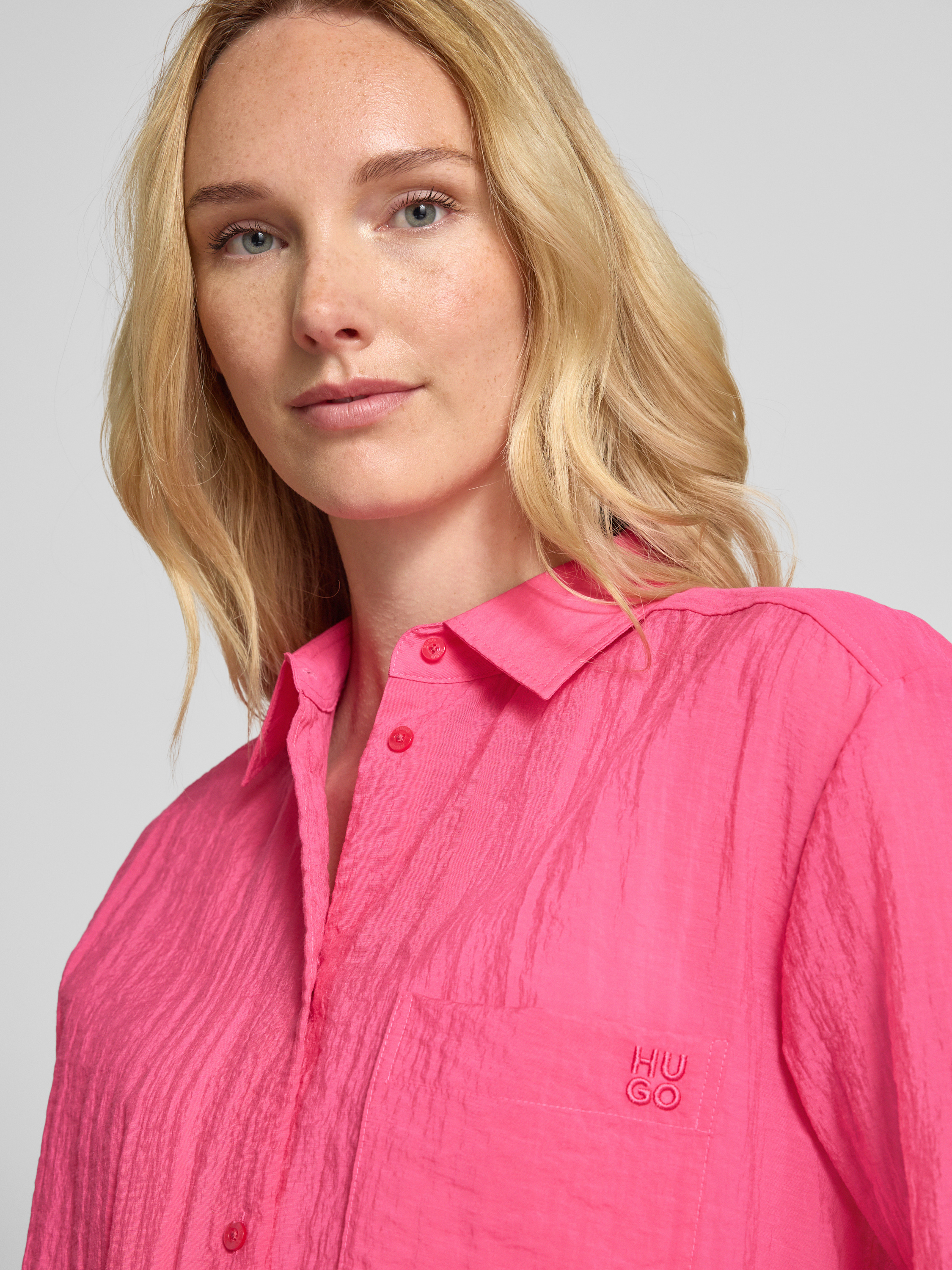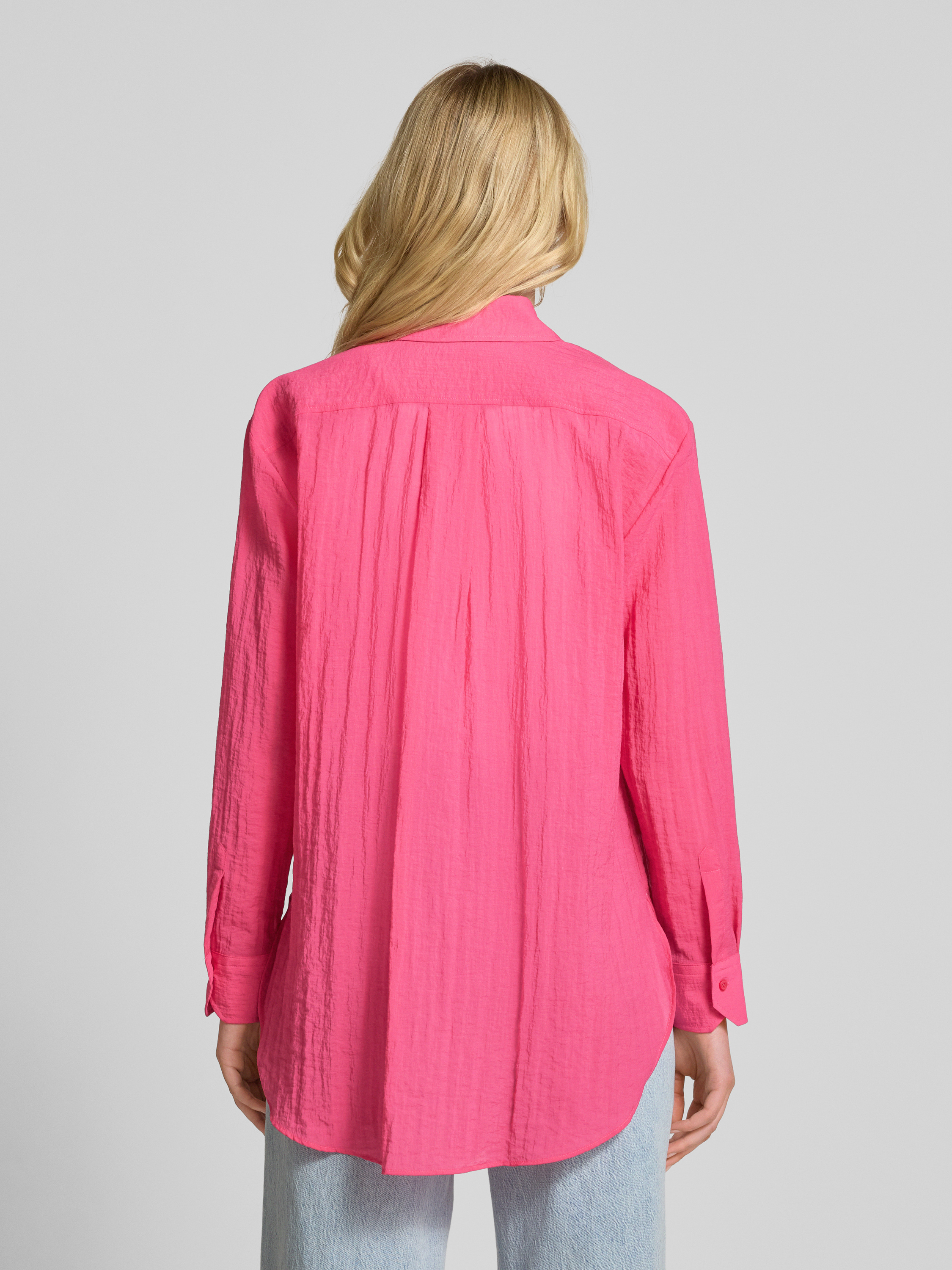 Bluzka koszulowa o kroju relaxed fit z efektem marszczenia model ‘Elodina’ - mocnoróżowy