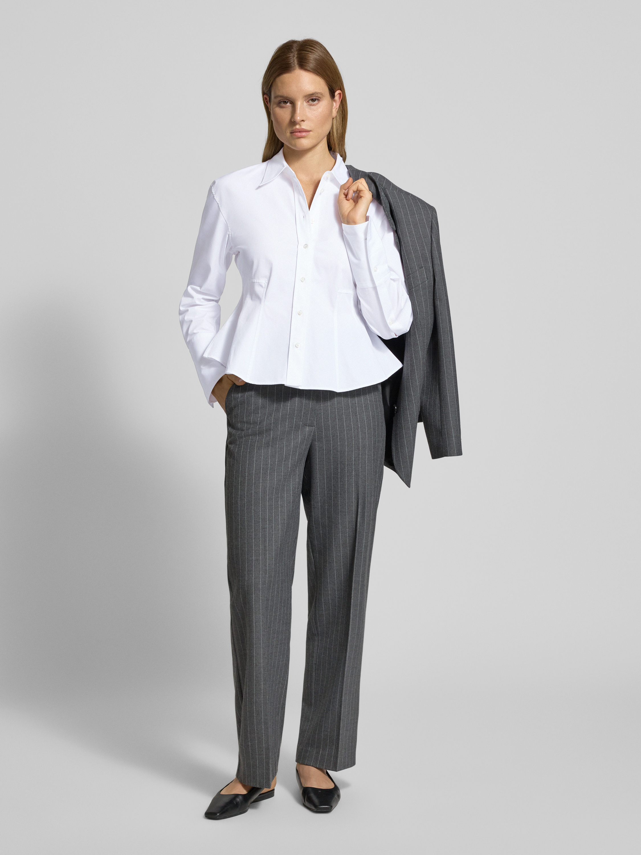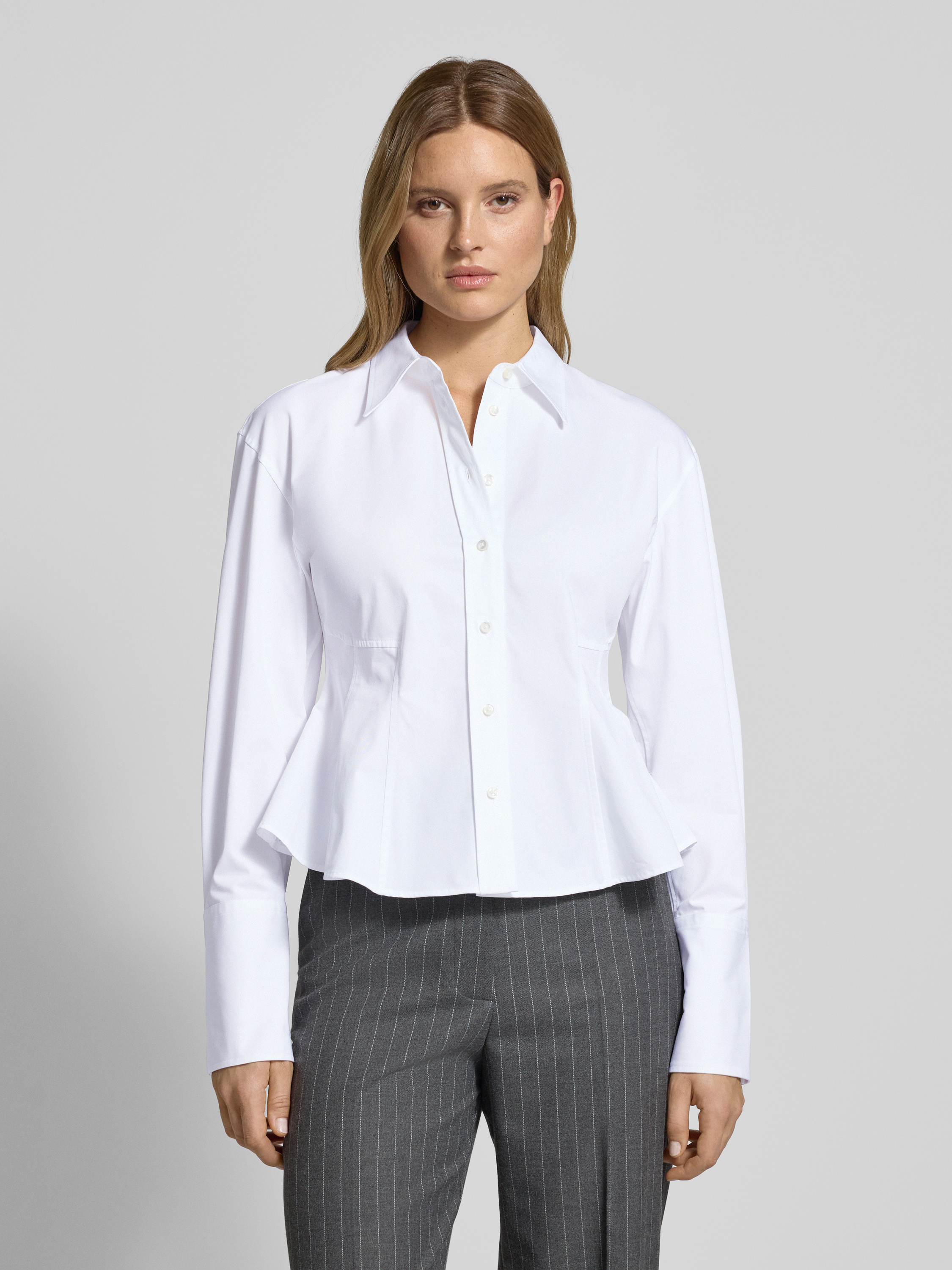 Bluzka koszulowa taliowana z czystej bawełny model ‘EMPEROR’ - biały