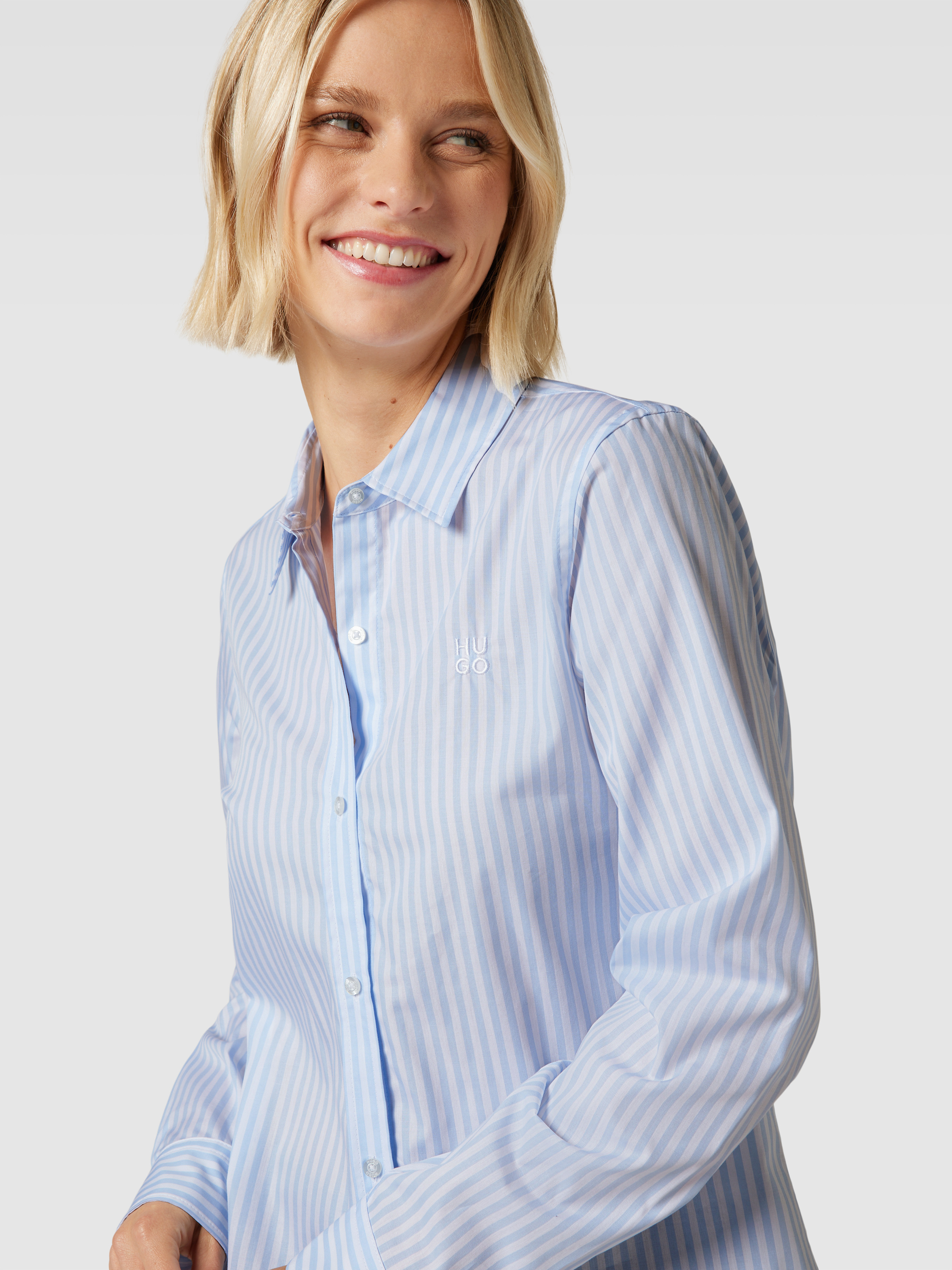 Bluzka koszulowa ze wzorem w paski - jasnoniebieski