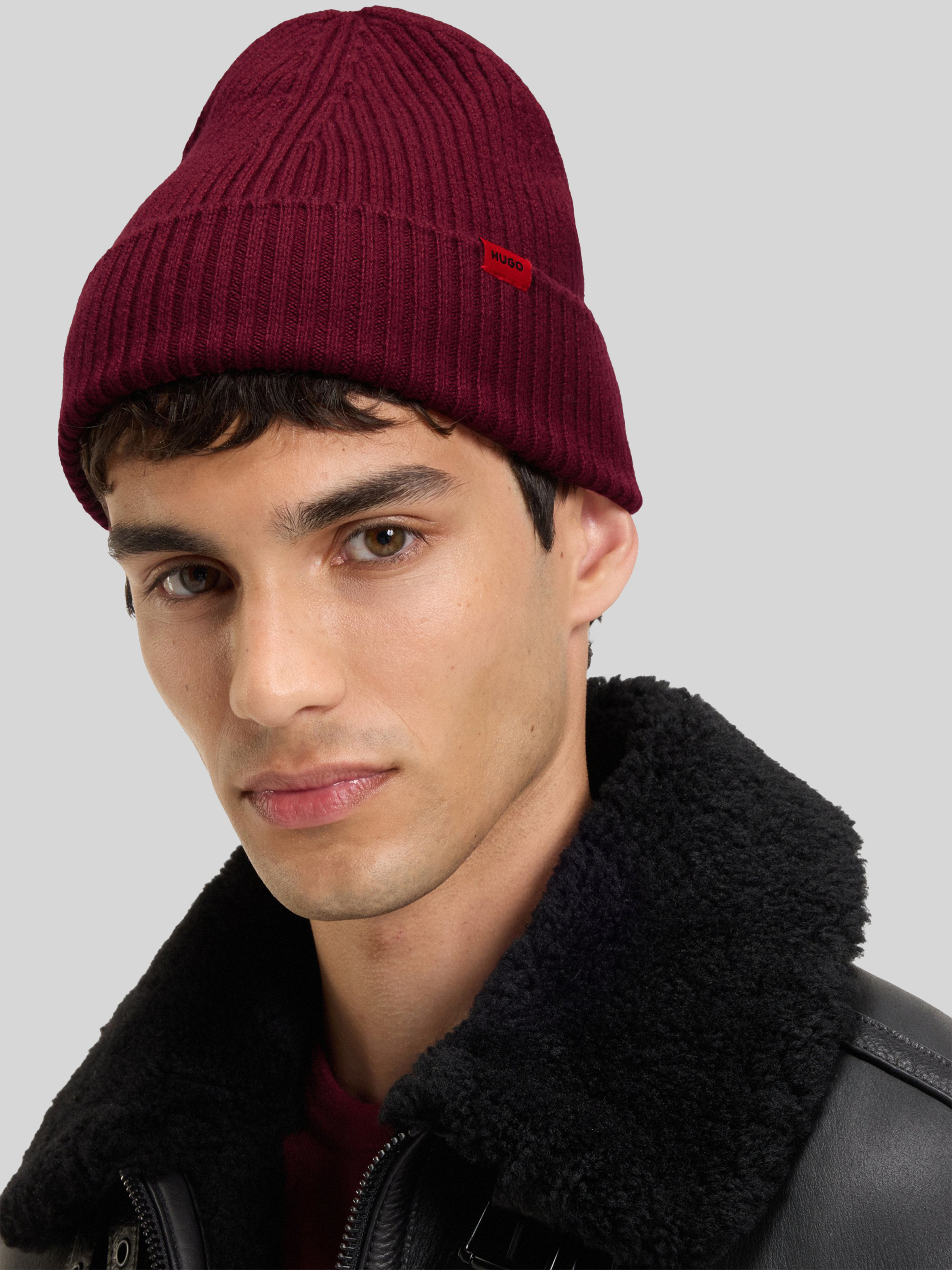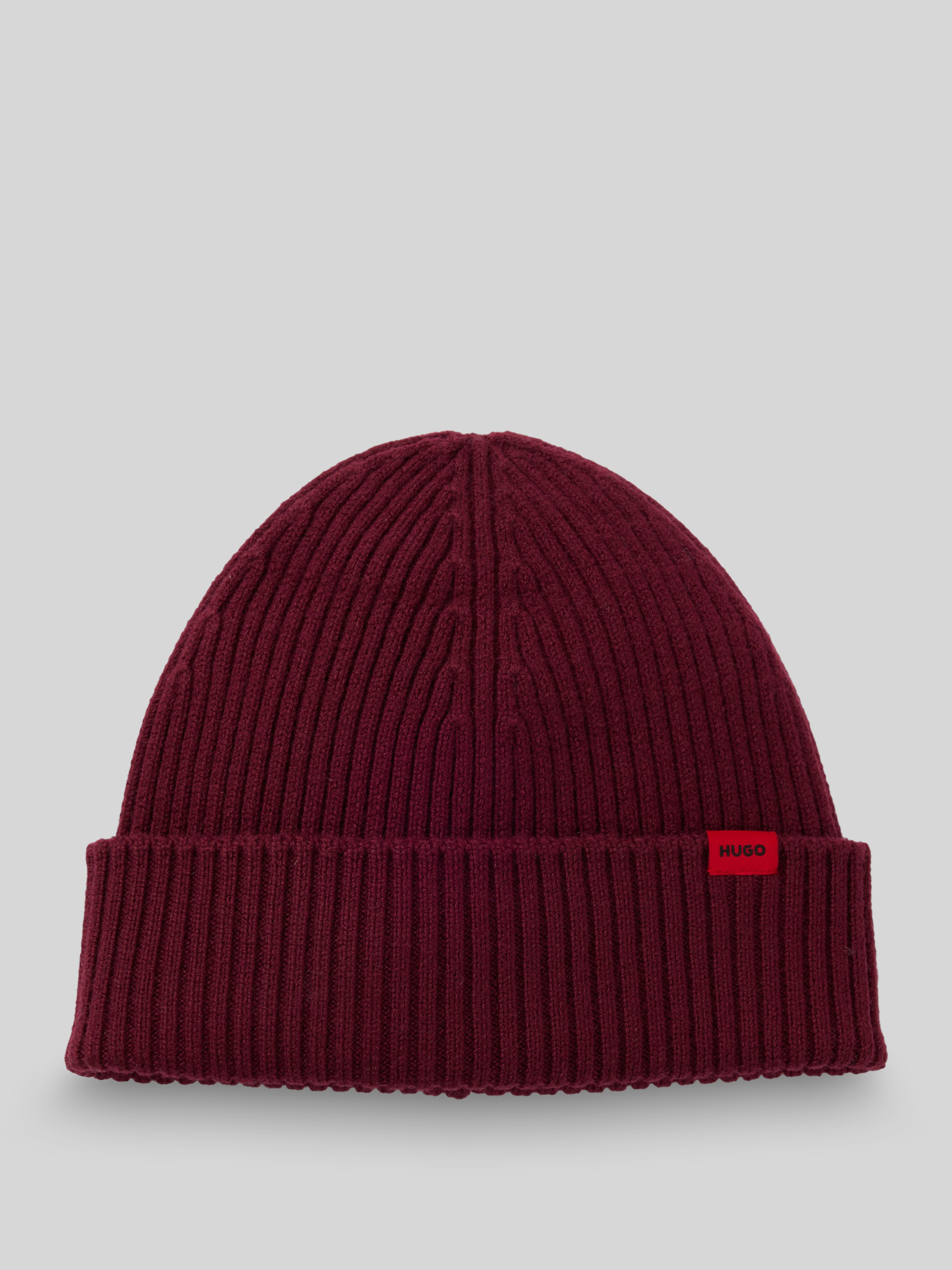 Czapka beanie z prążkowanej czystej żywej wełny model ‘XOLA’ - ciemnoczerwony