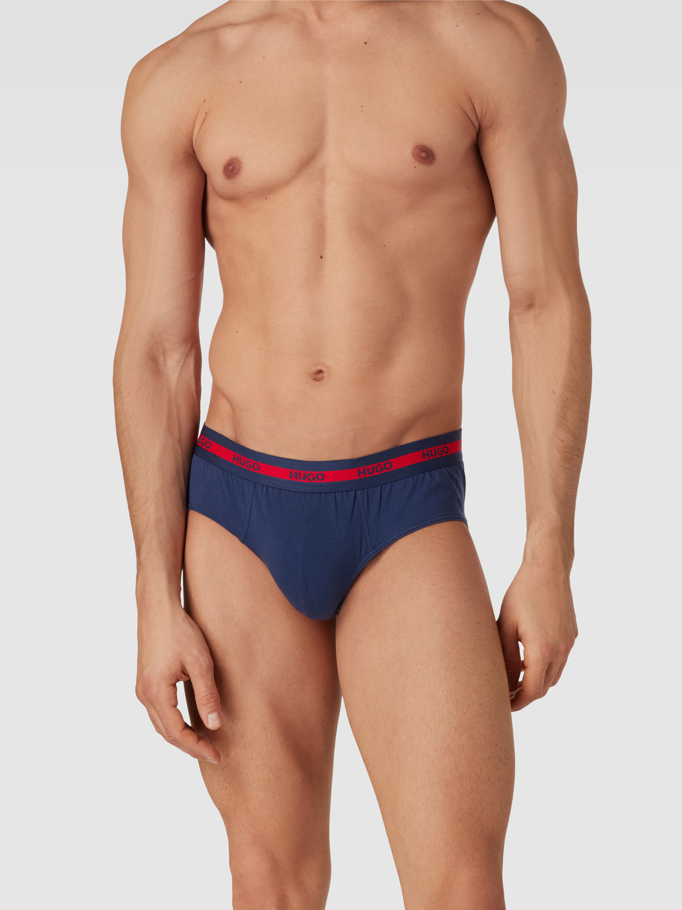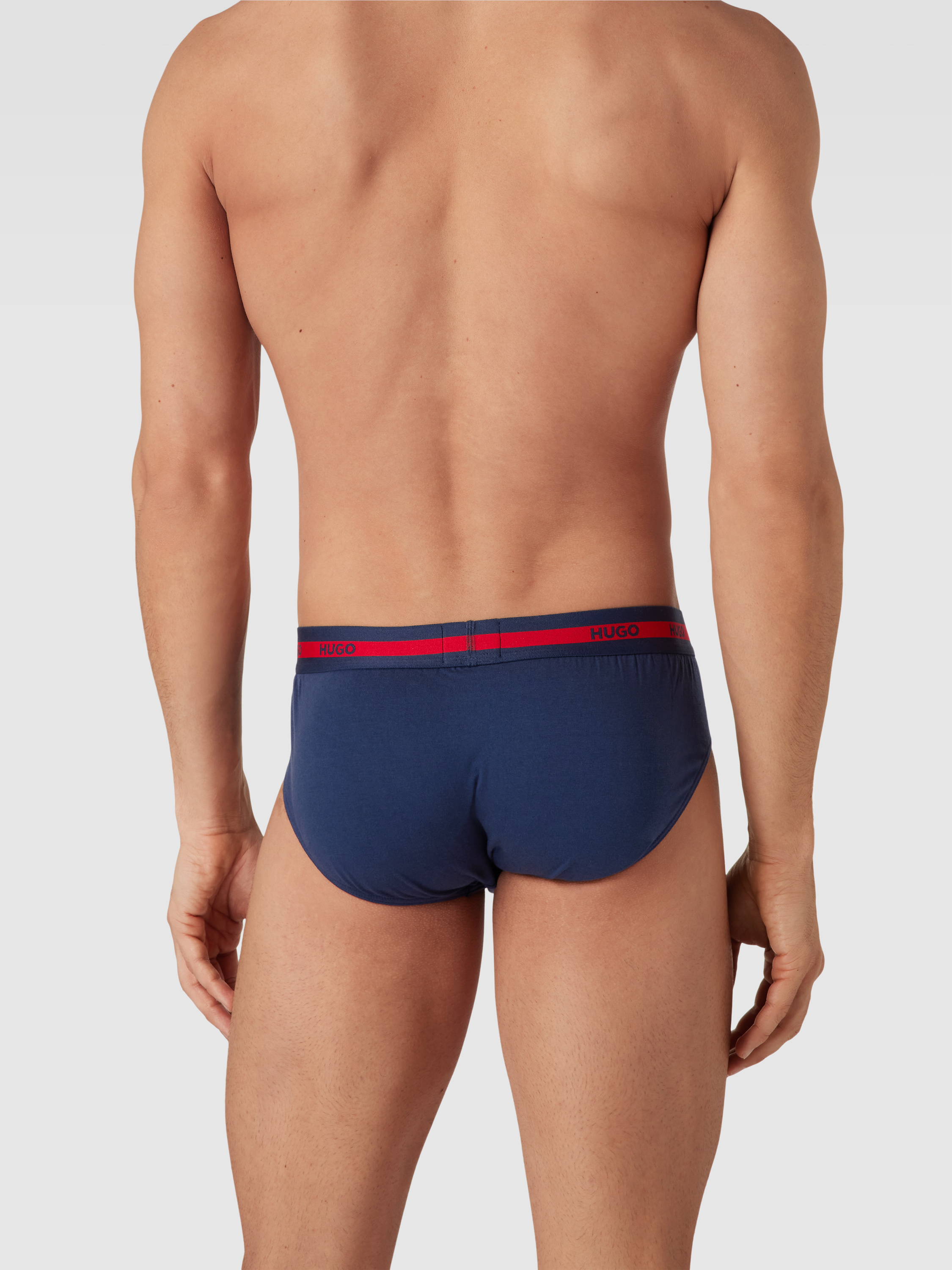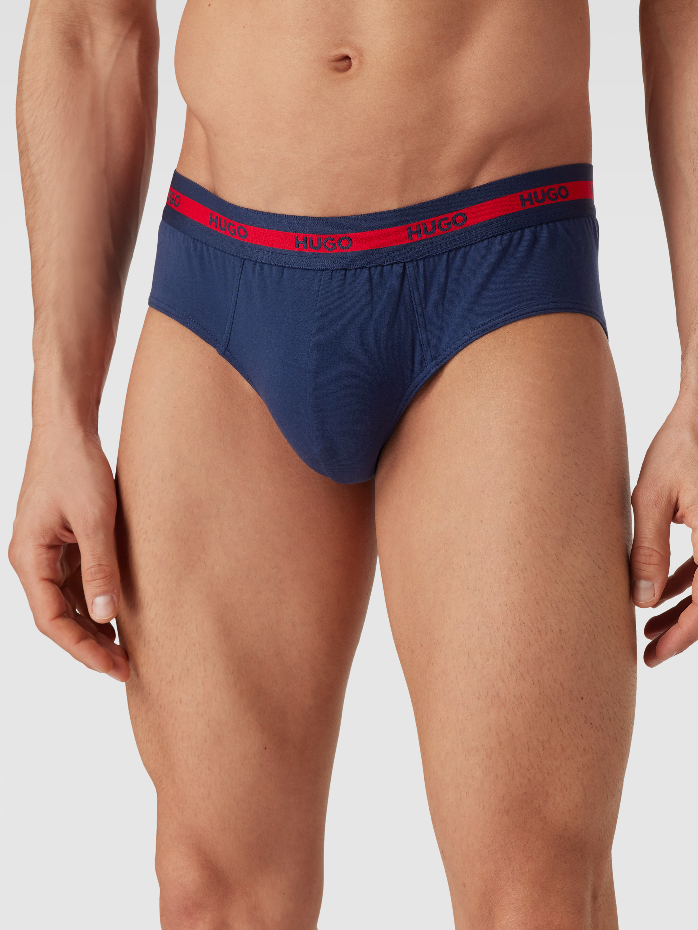Slipy z elastycznym paskiem z logo w zestawie 3 szt. - ciemnoniebieski