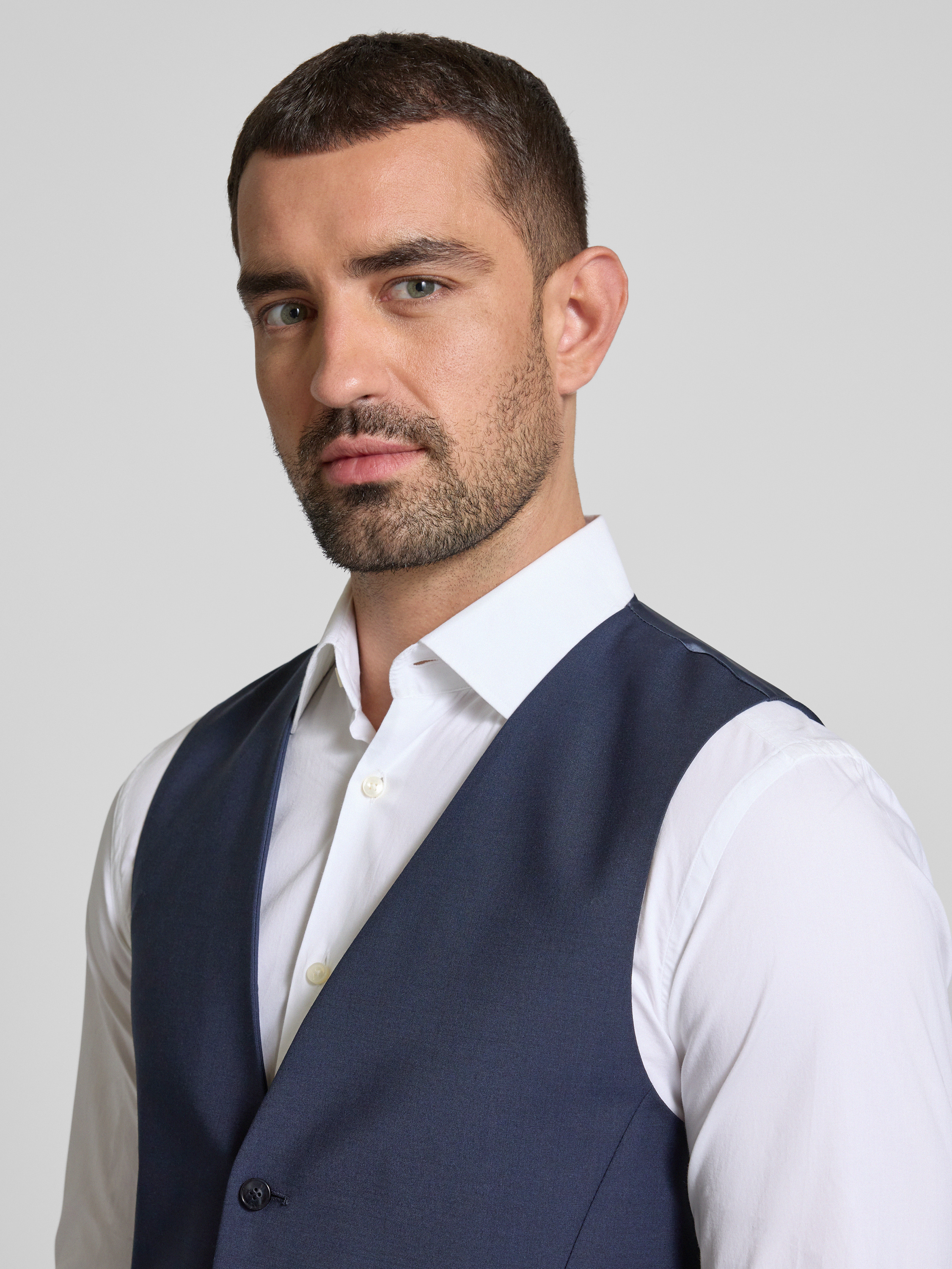 Kamizelka garniturowa z lamowanymi kieszeniami - niebieski