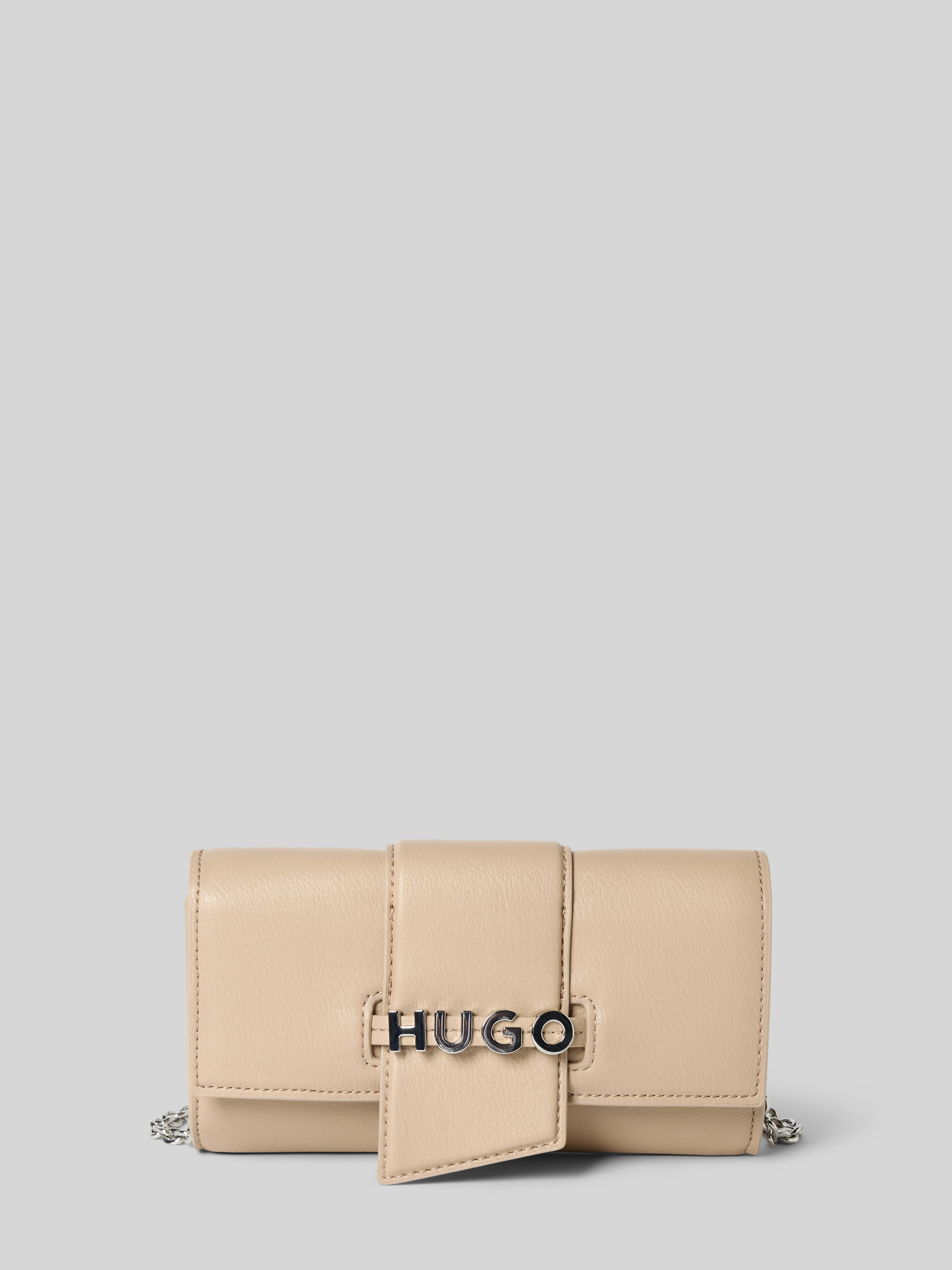 Kopertówka z aplikacją z logo z metalu model ‘MEL 2.0’ - szarobrązowy