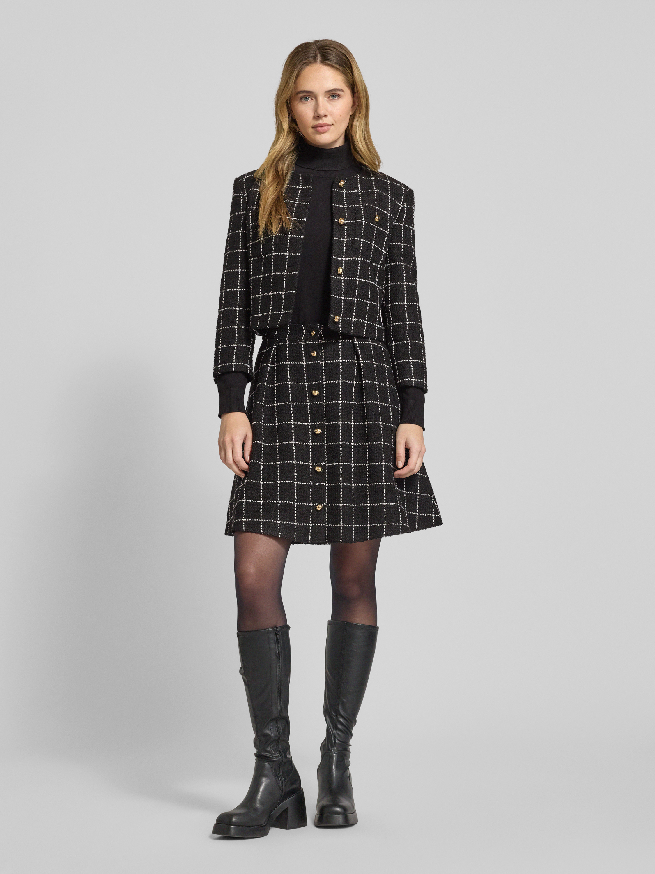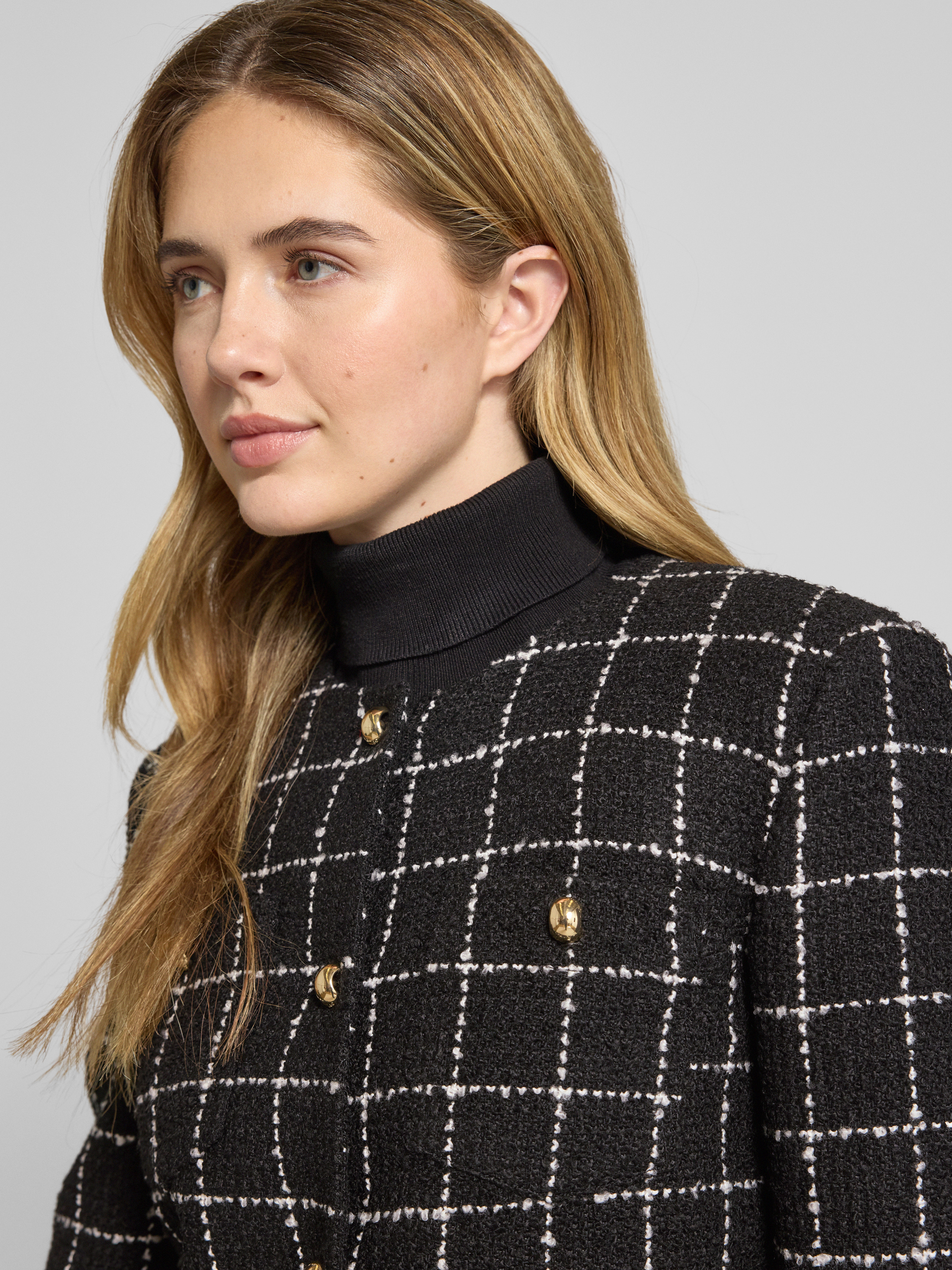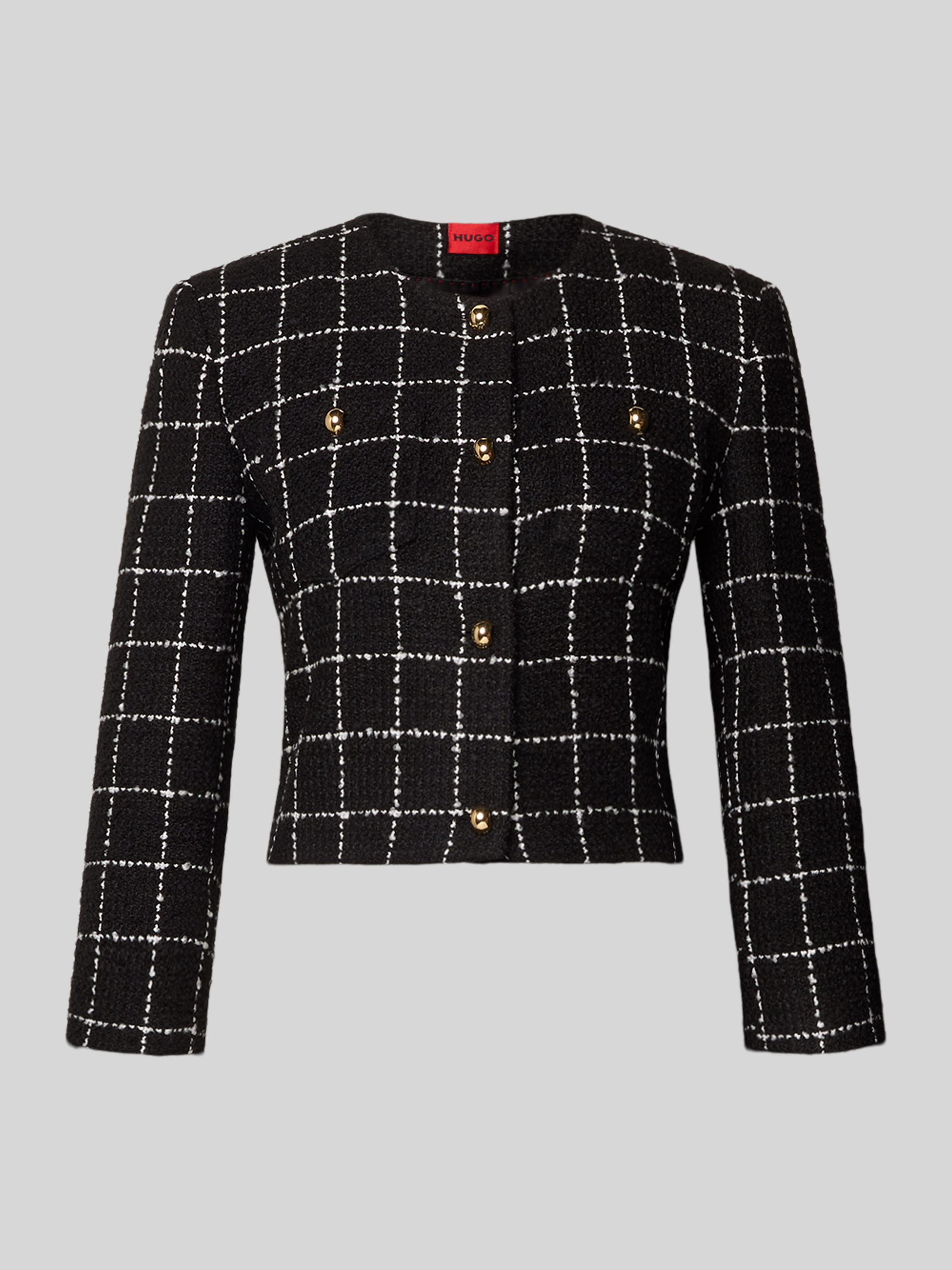 Krótki żakiet o kroju shaped fit ze wzorem w kratę model ‘ADINI-1’ - czarny