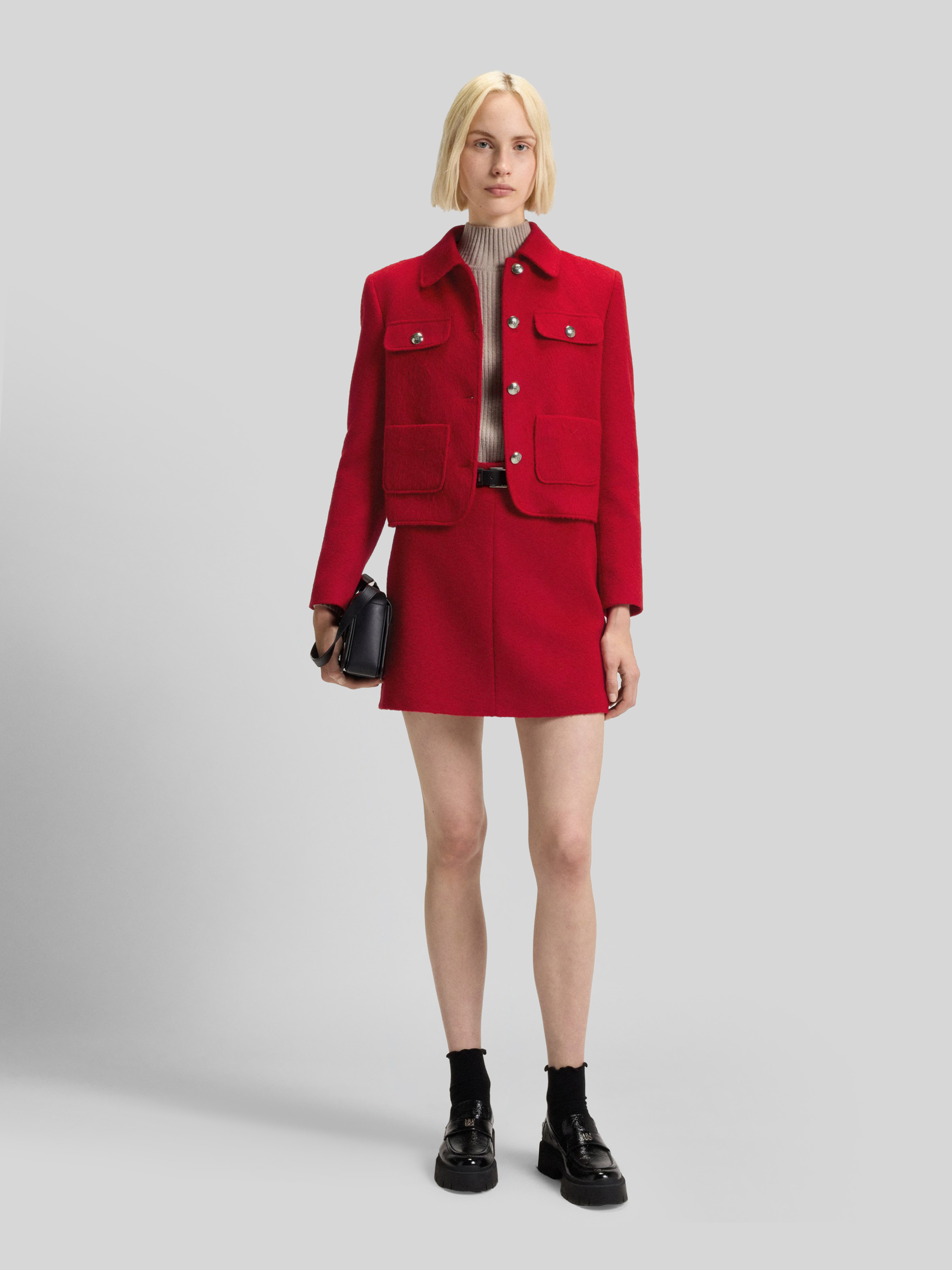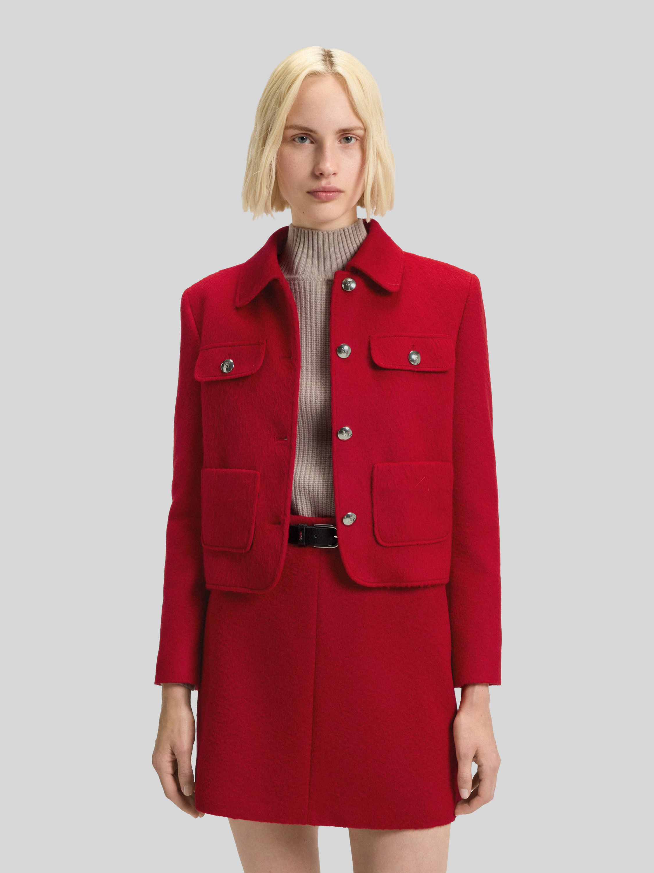 Krótki żakiet o pudełkowym kroju z dodatkiem wełny model ‘AGESIA’ - czerwony