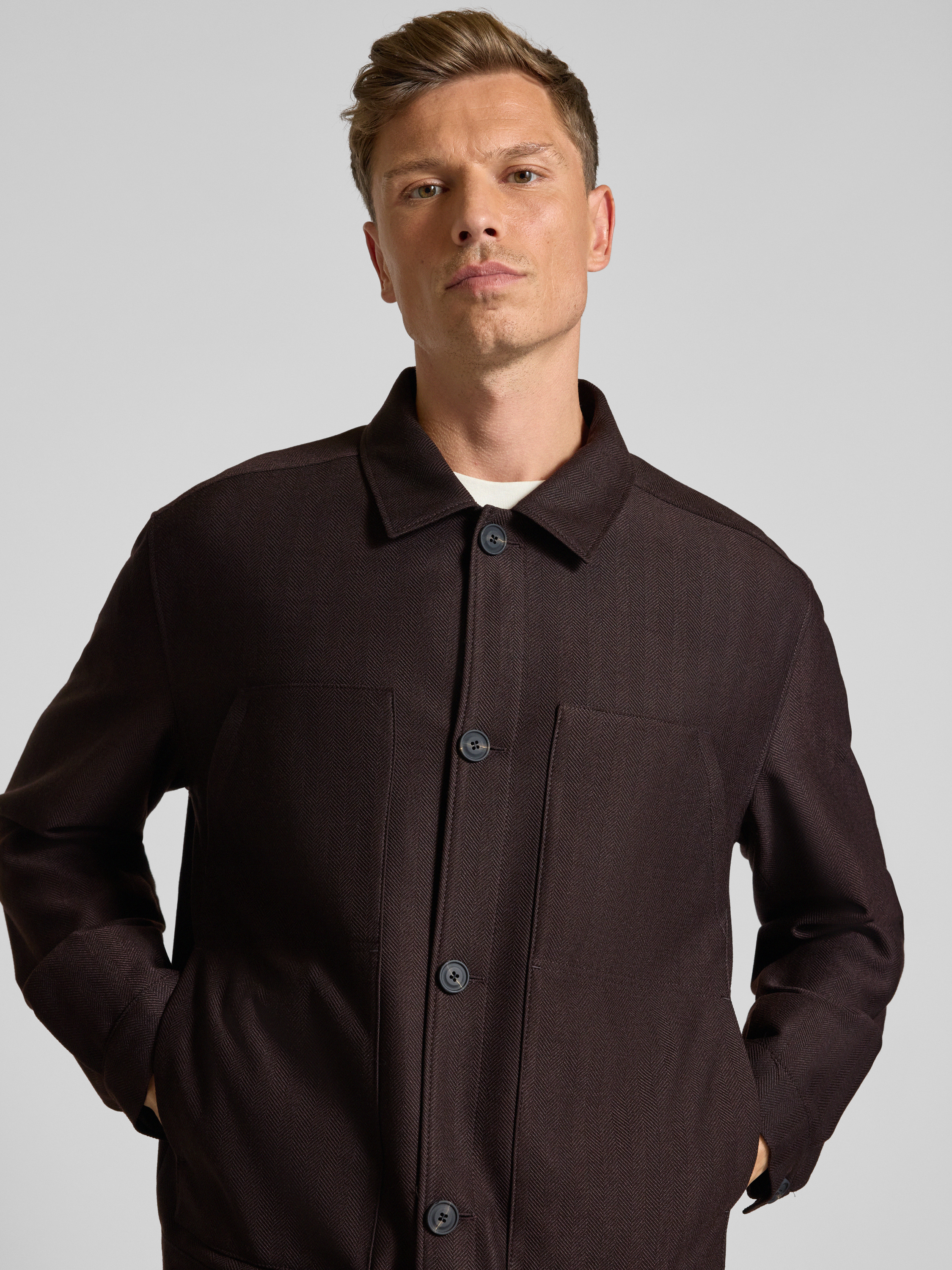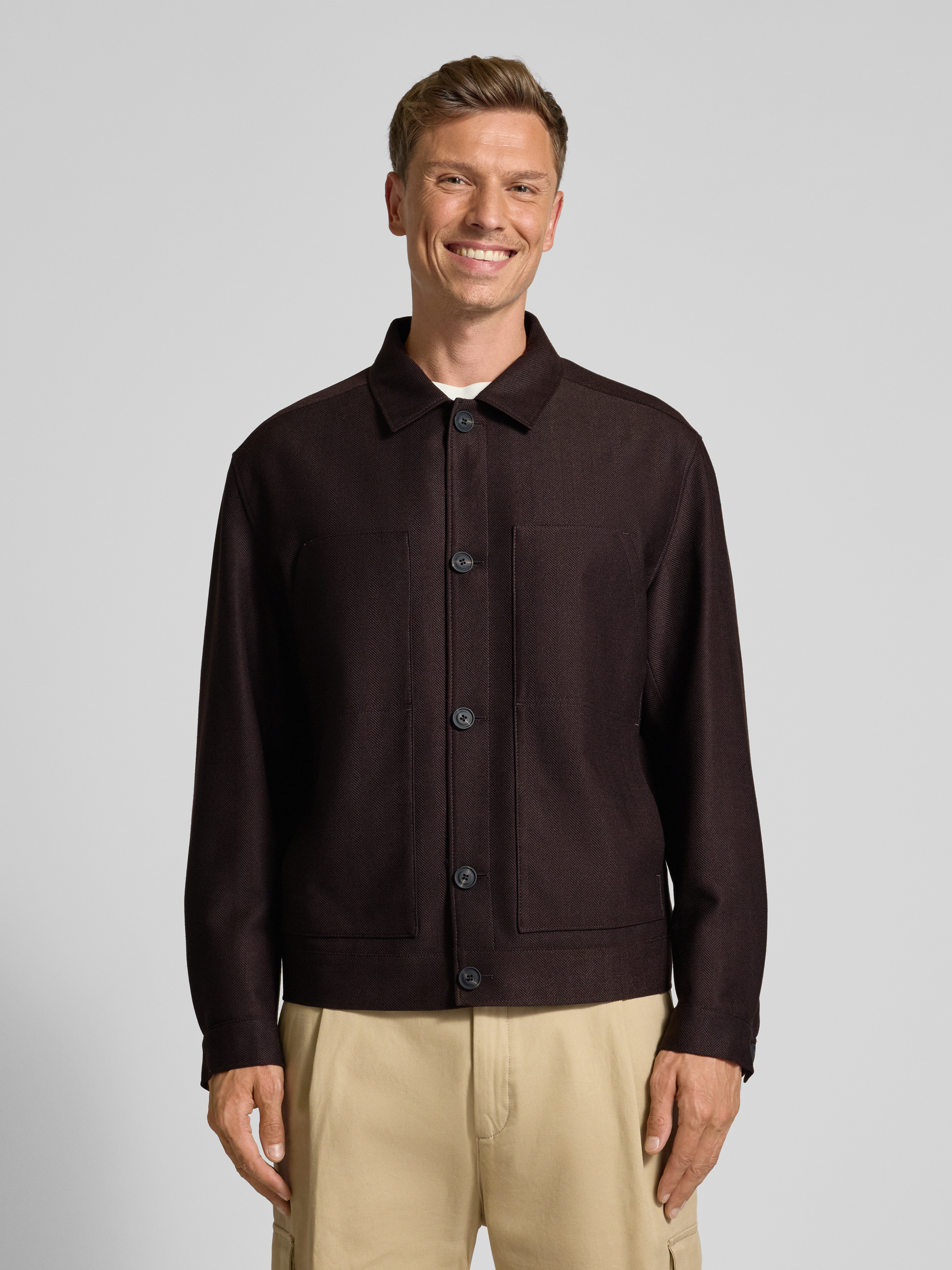 Kurtka koszulowa o kroju slim fit z dodatkiem żywej wełny - średniobrązowy