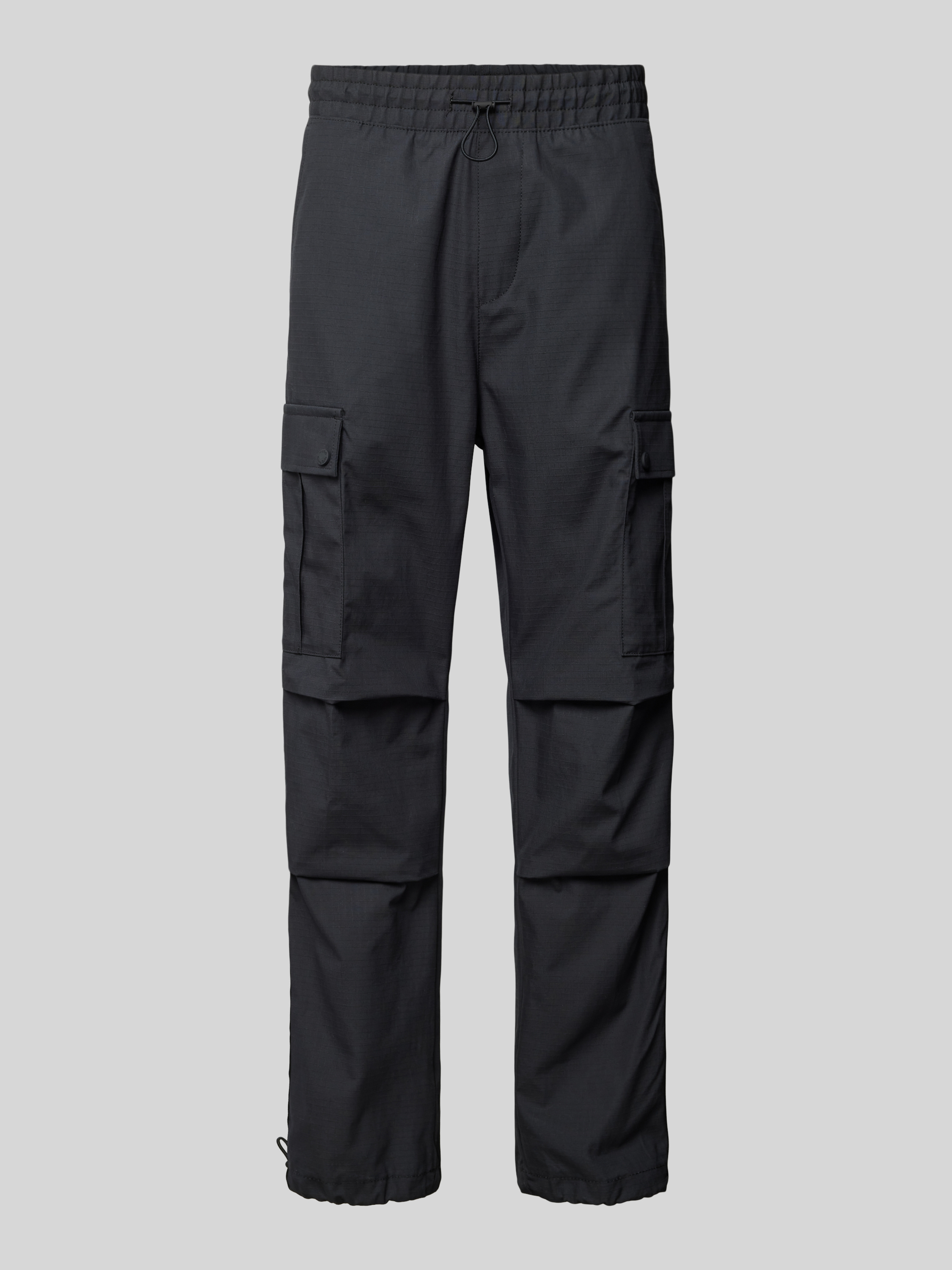 Spodnie cargo o kroju regular fit z marszczeniami model ‘Geo’ - czarny
