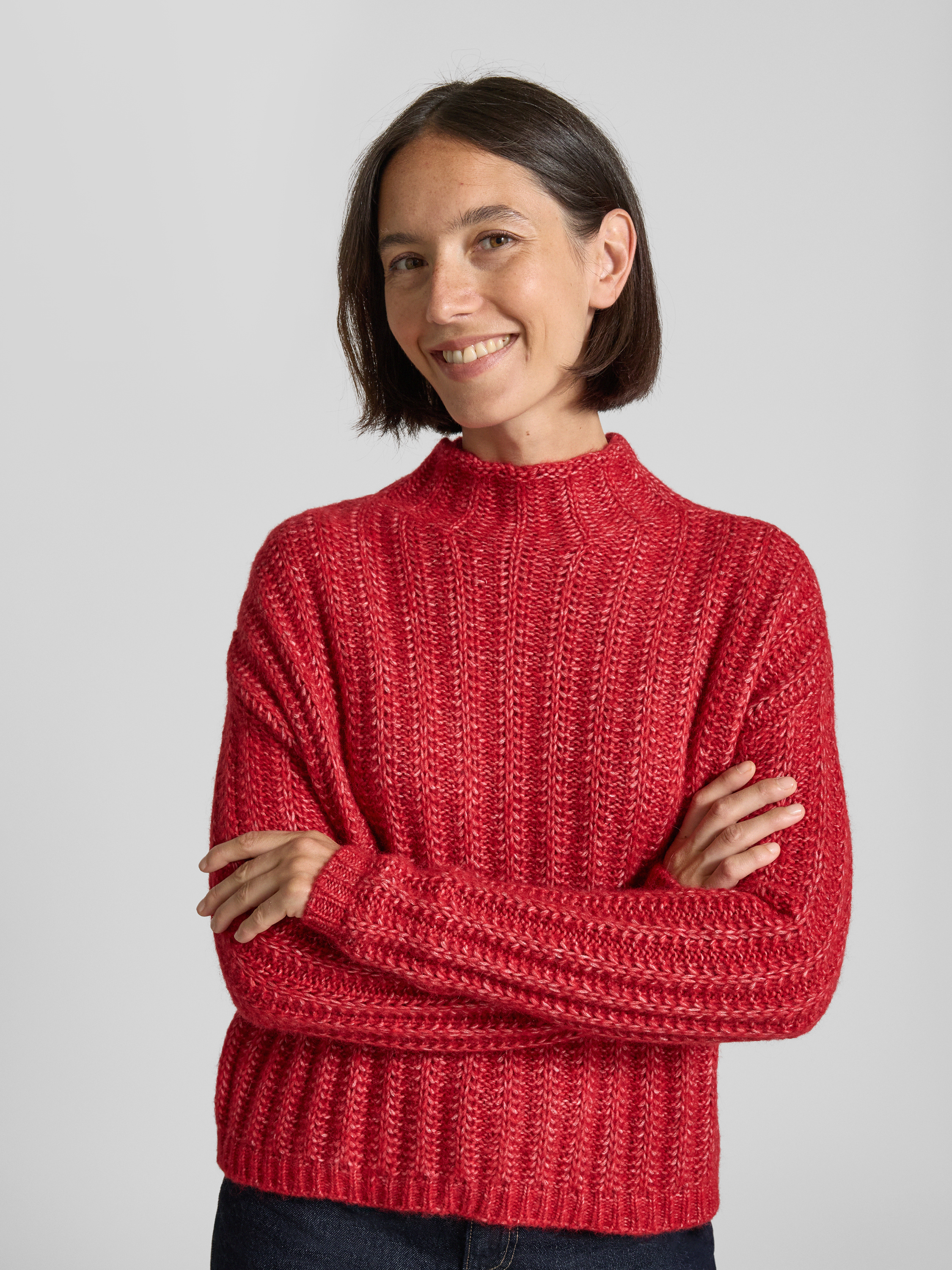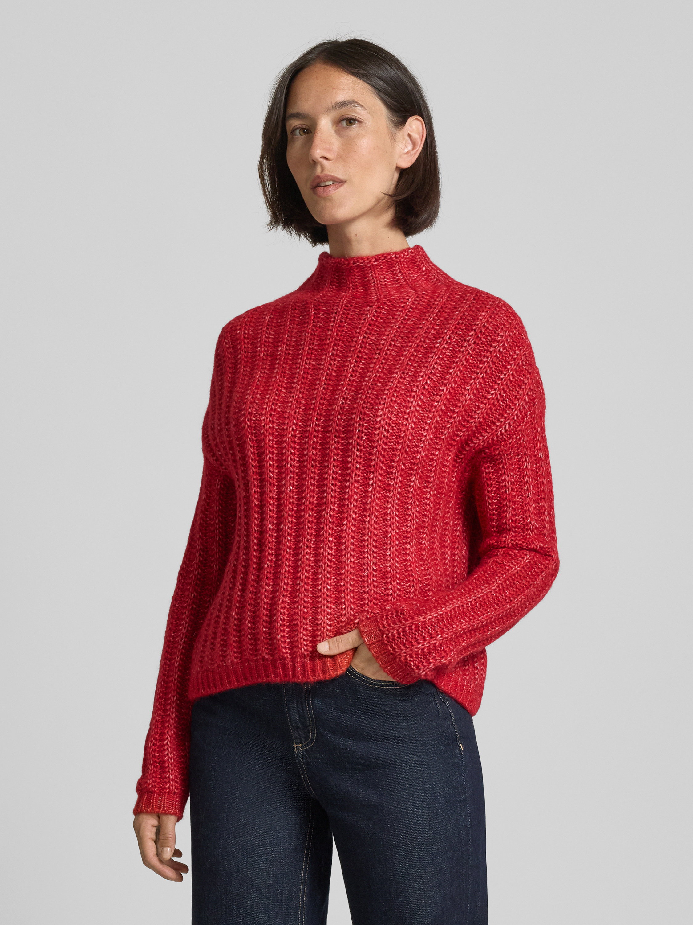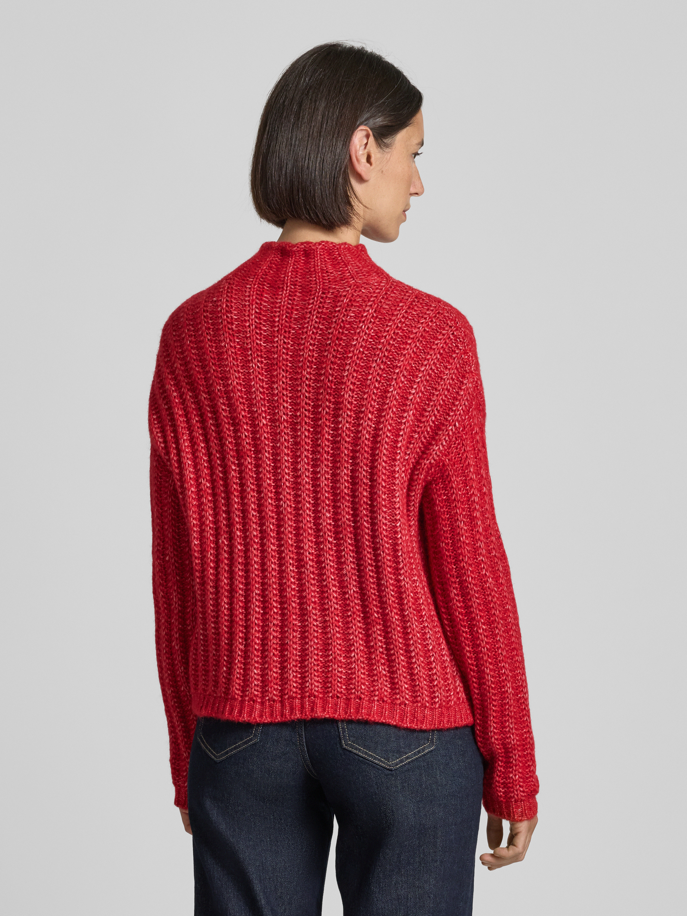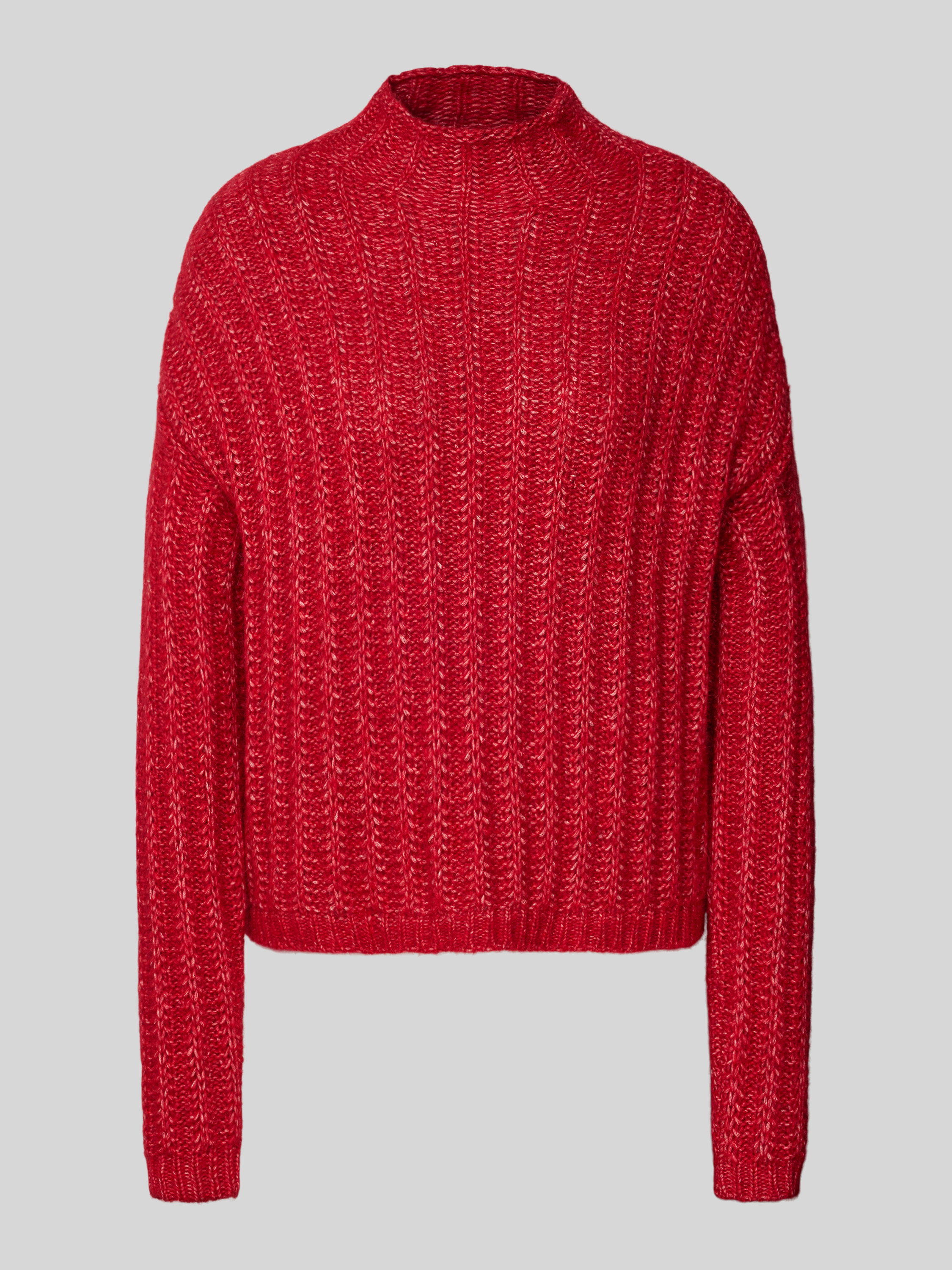 Sweter z dzianiny o kroju relaxed fit z mieszanki bawełny z dodatkiem wełny model ‘SAFINEYNY’ - czerwony