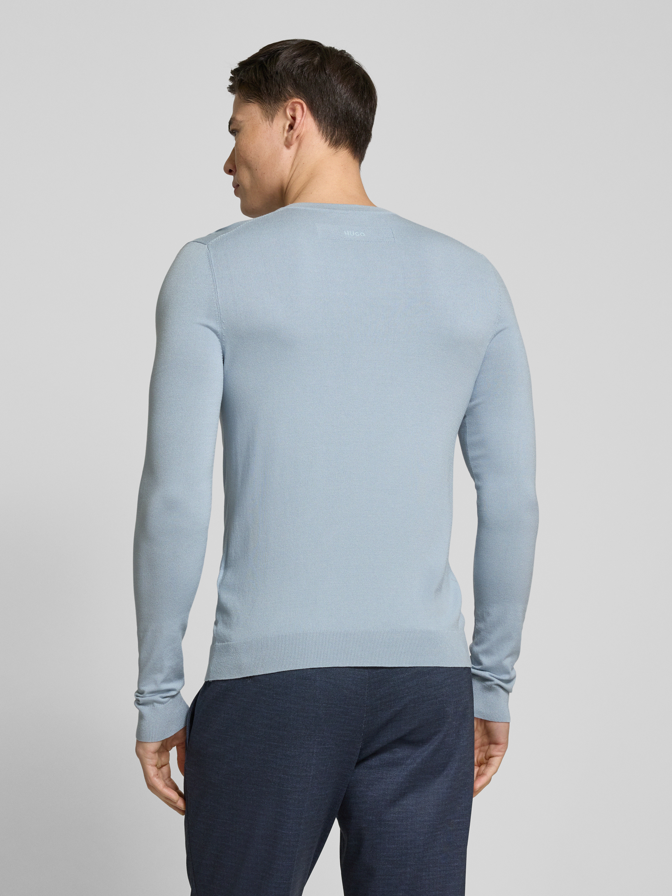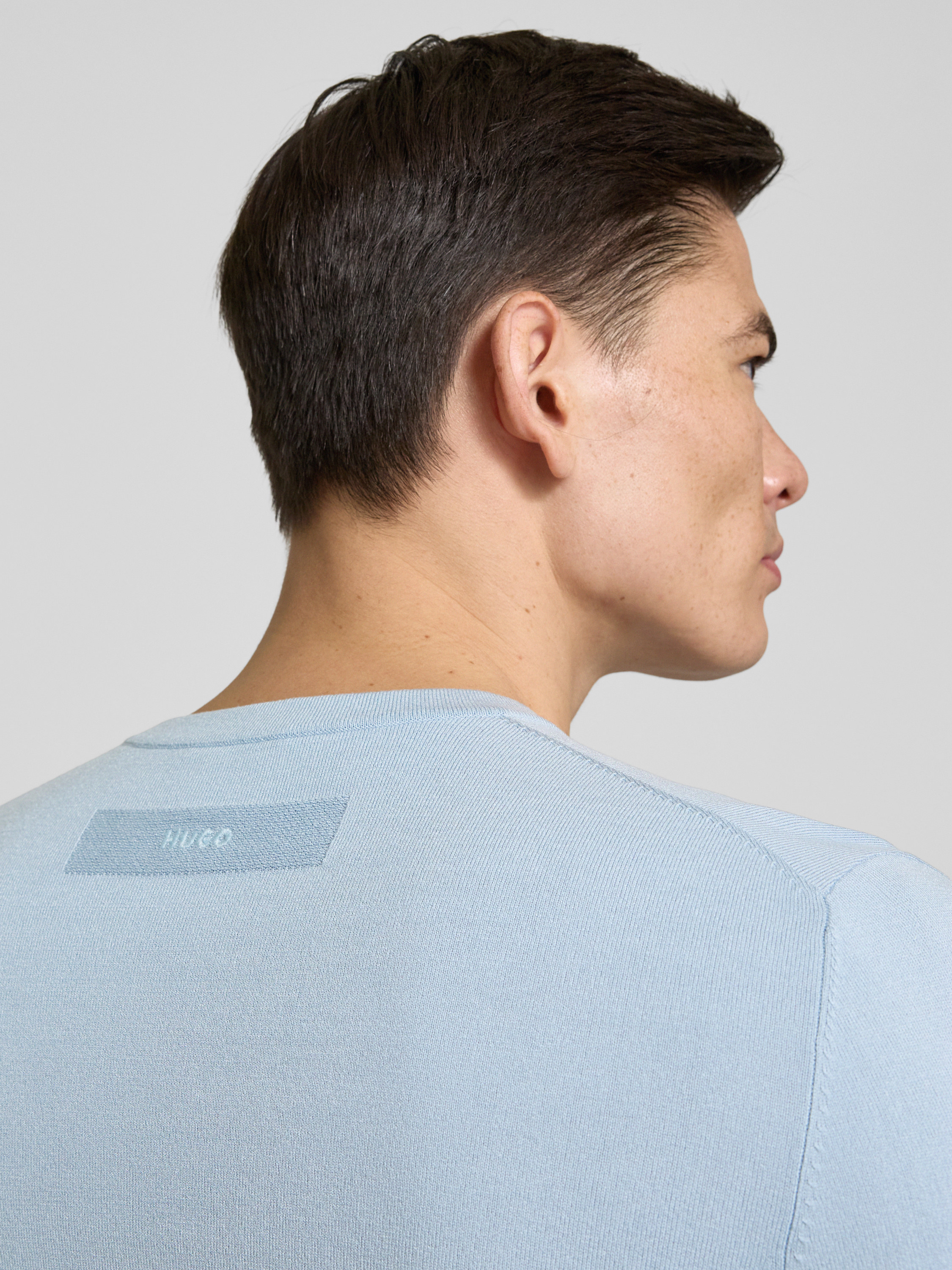 Sweter z dzianiny z okrągłym dekoltem model ‘Cody’ - jasnoniebieski