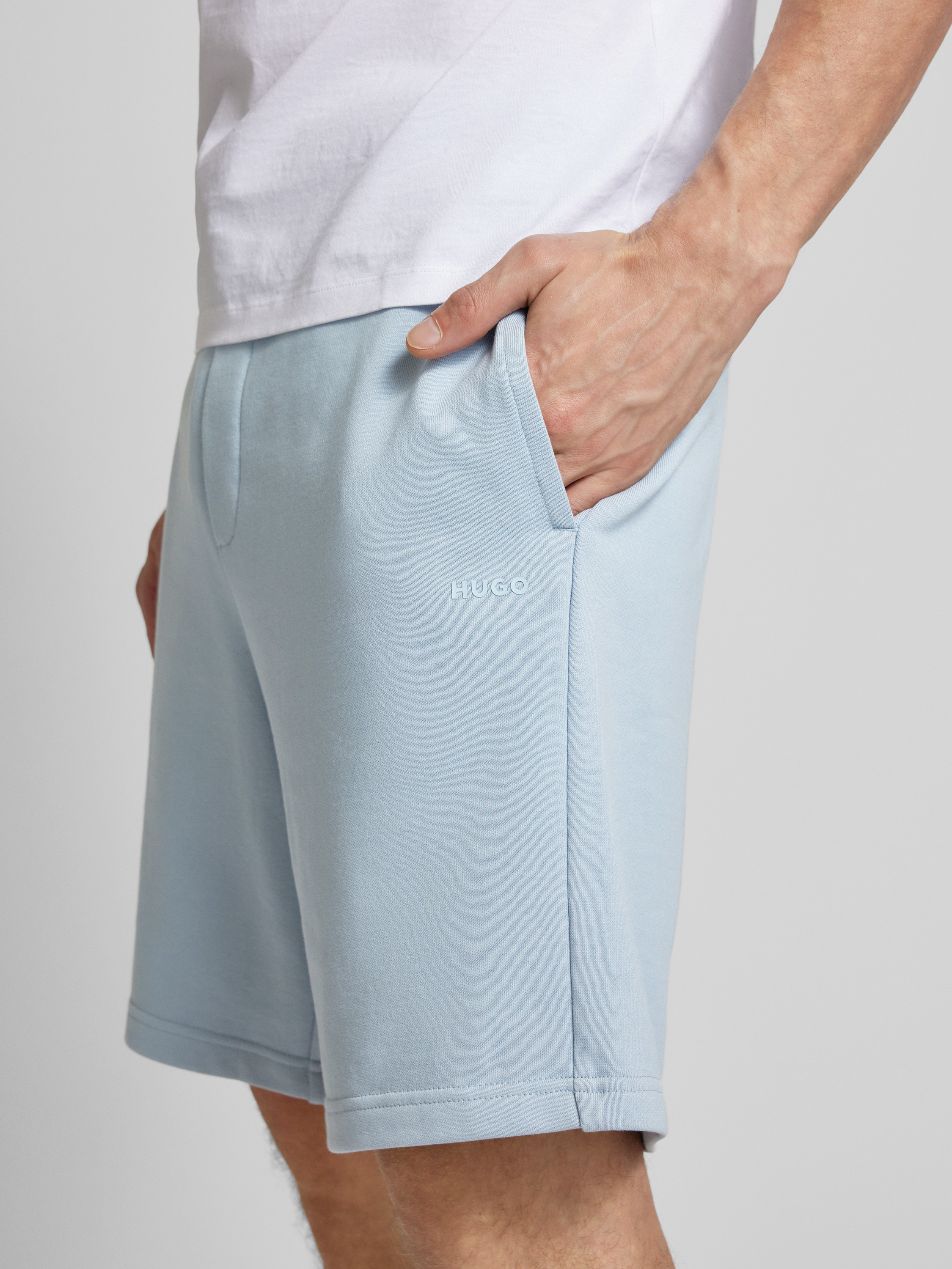 HUGOSzorty z dzianiny dresowej z nadrukiem z logo model ‘Nomario’ - błękitno-niebieski