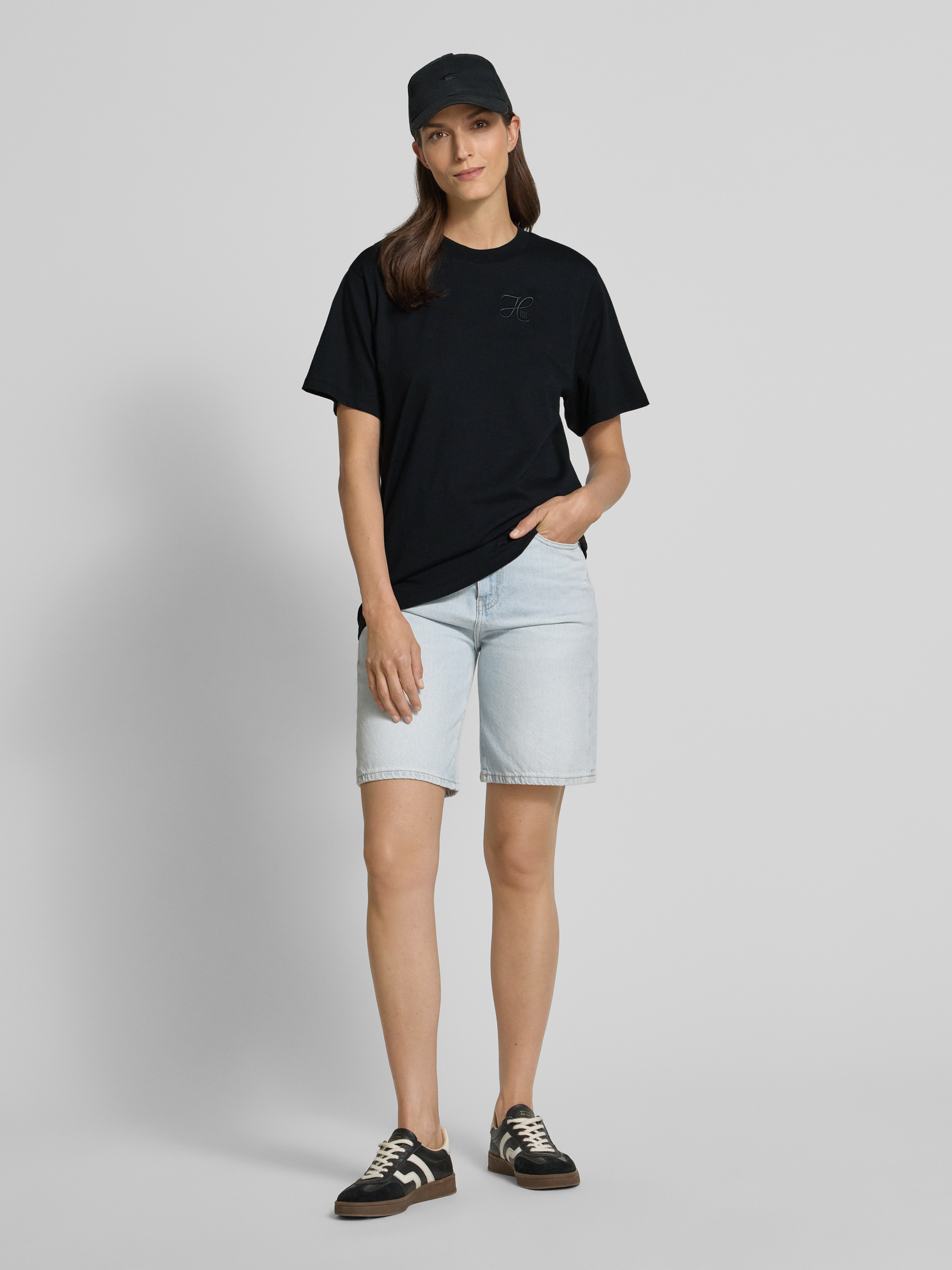 T-shirt o kroju relaxed fit z wyhaftowanym logo i okrągłym dekoltem - czarny