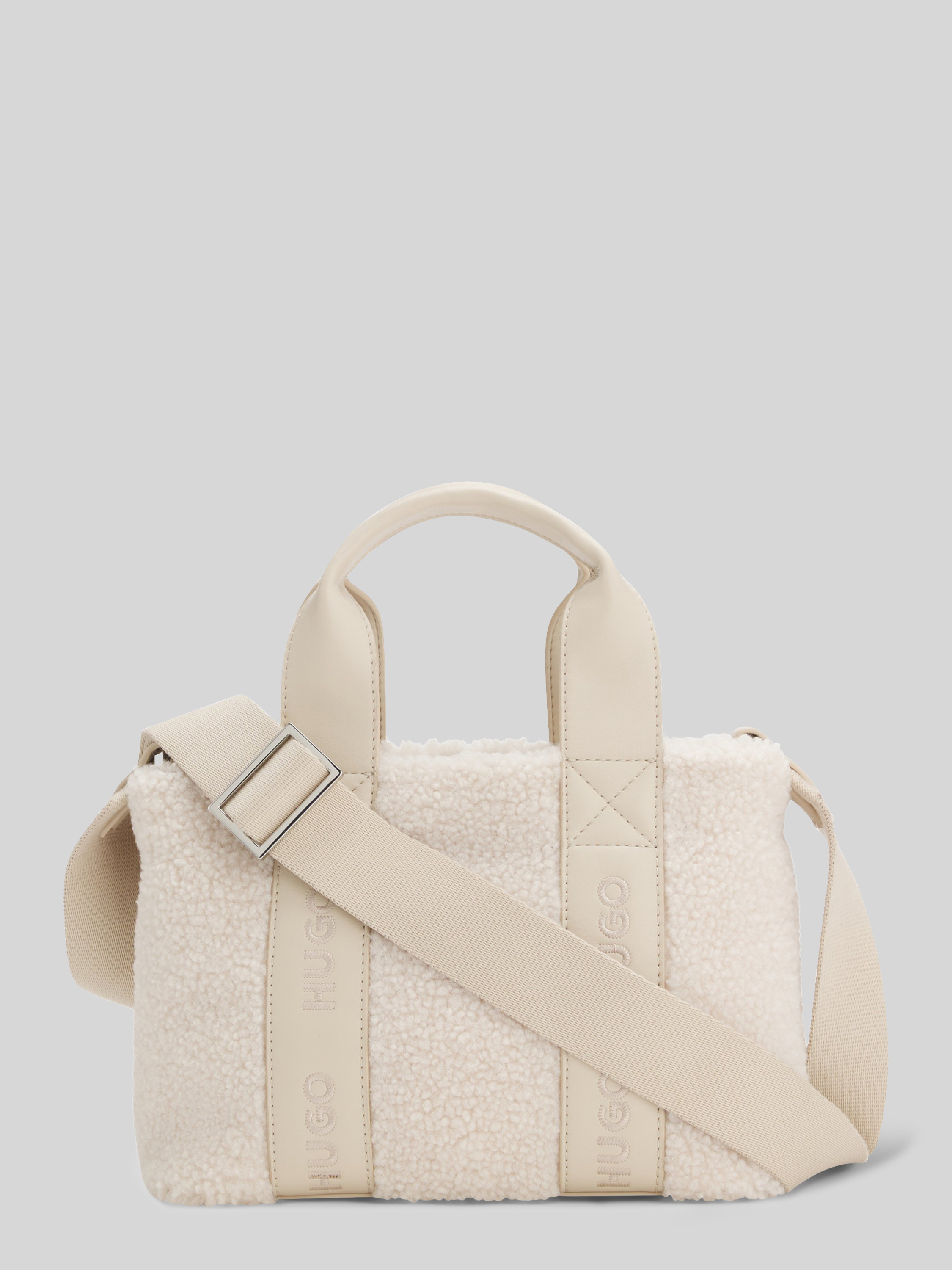 Torba na ramię z paskiem z logo model ‘BECKY’ - écru