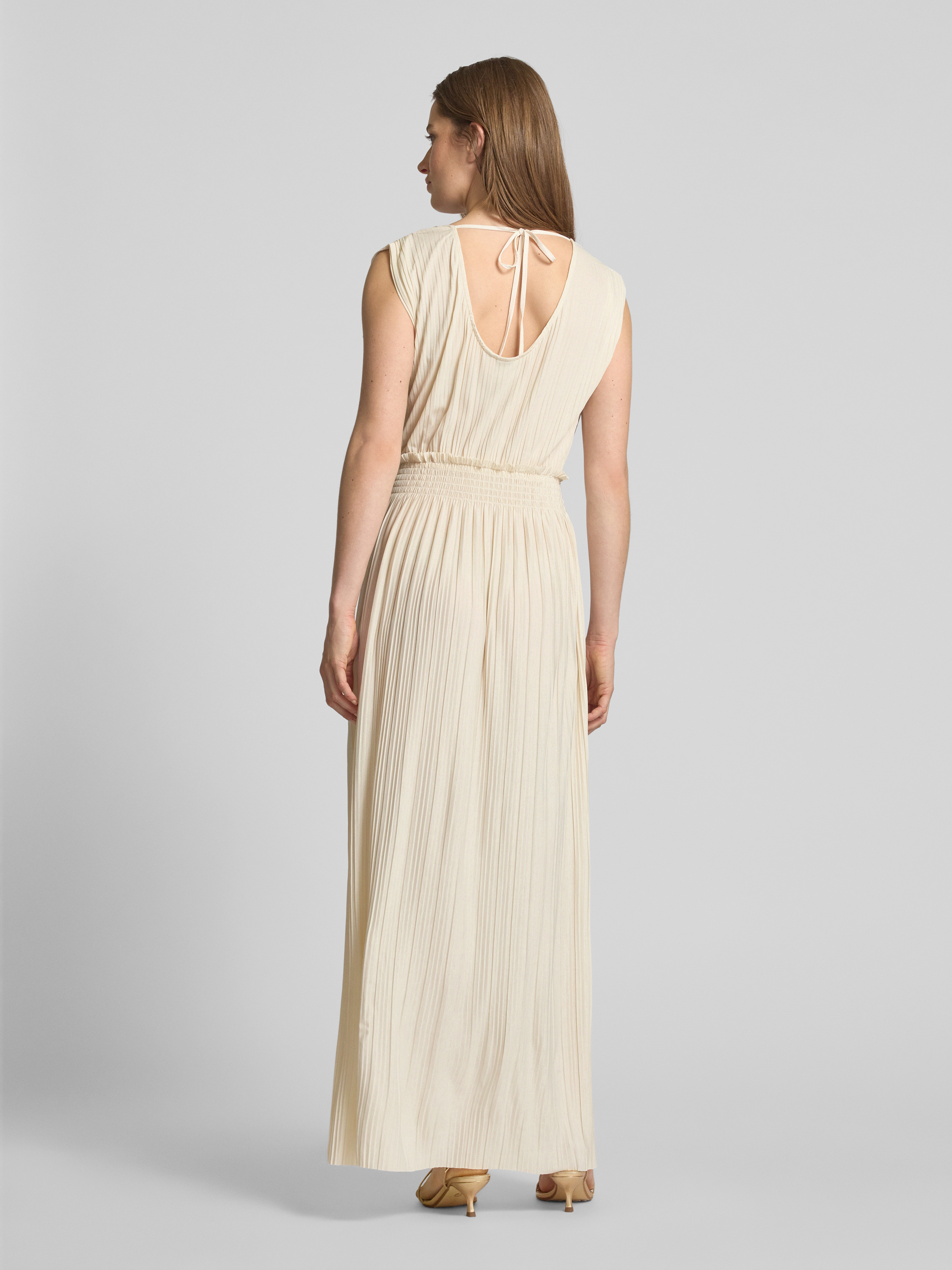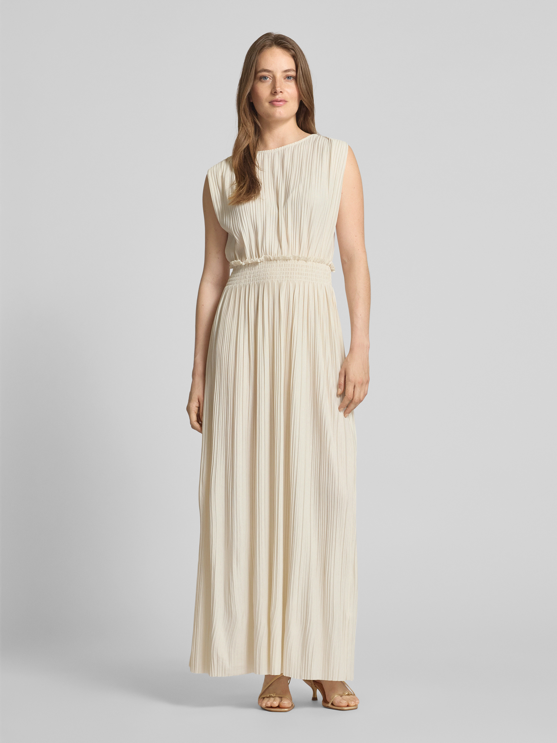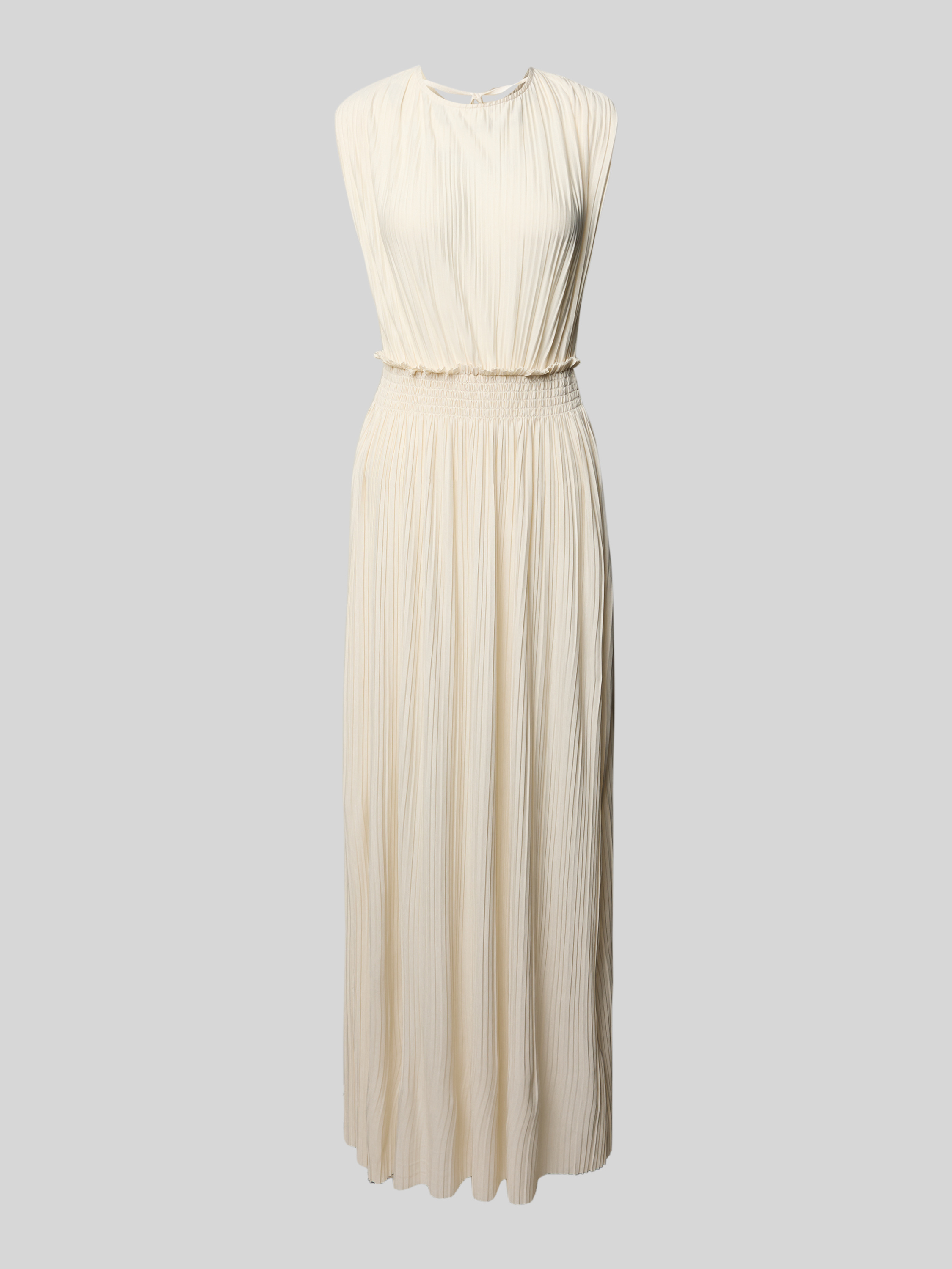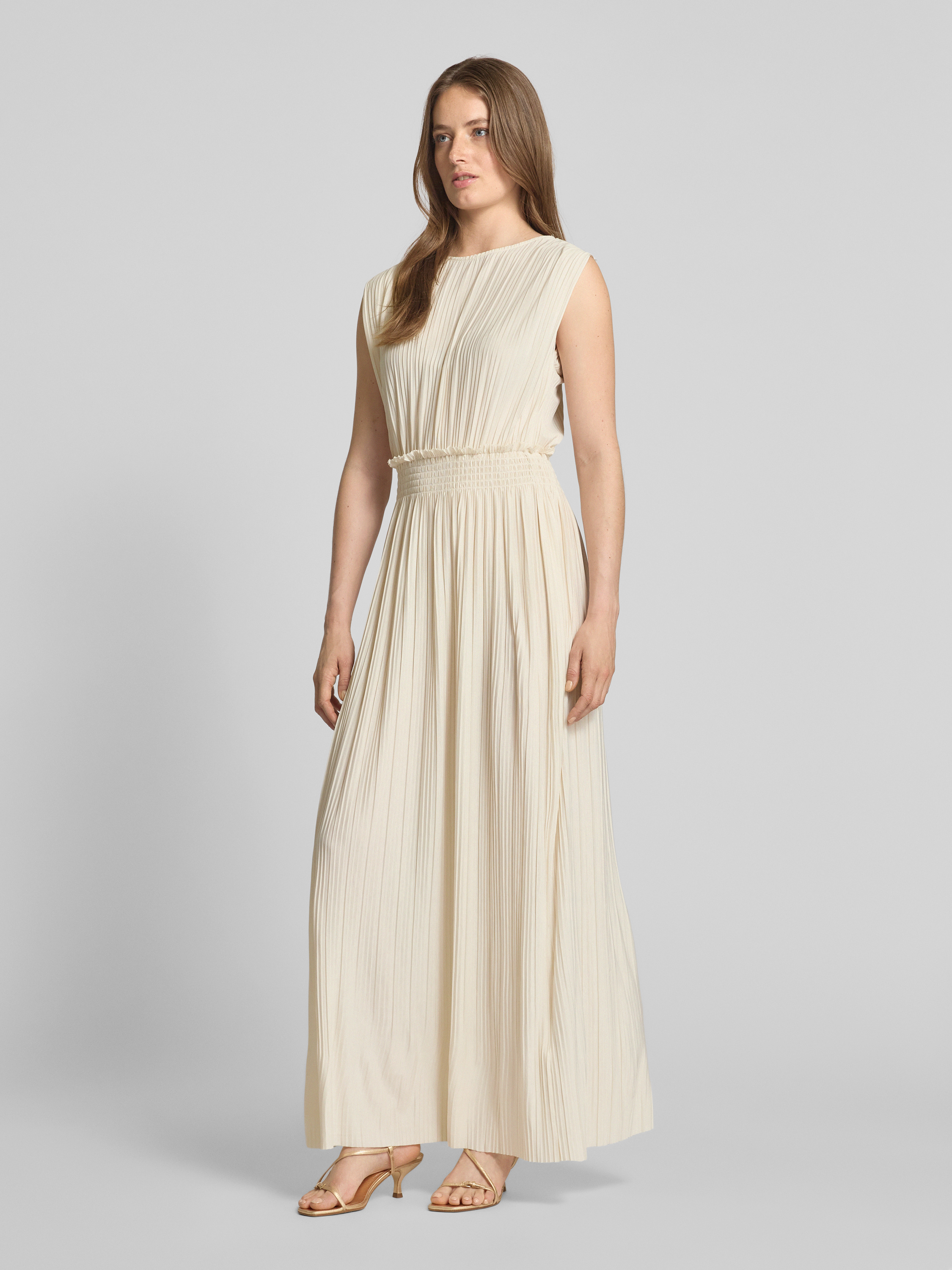 Długa sukienka z plisami i okrągłym dekoltem - złamany biały