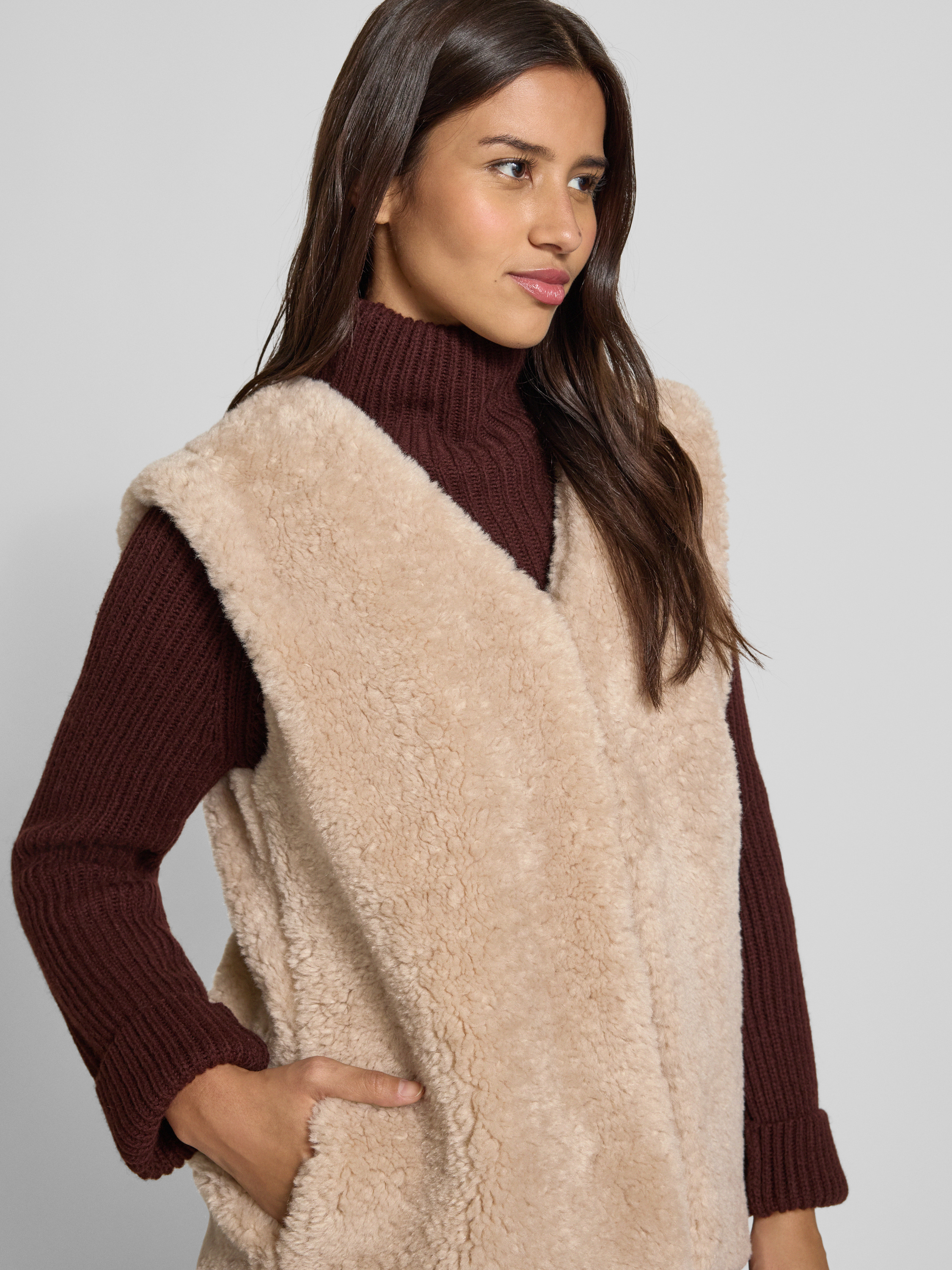 Kamizelka z obszyciem sztucznym futrem model ‘HIZALA’ - złamany biały