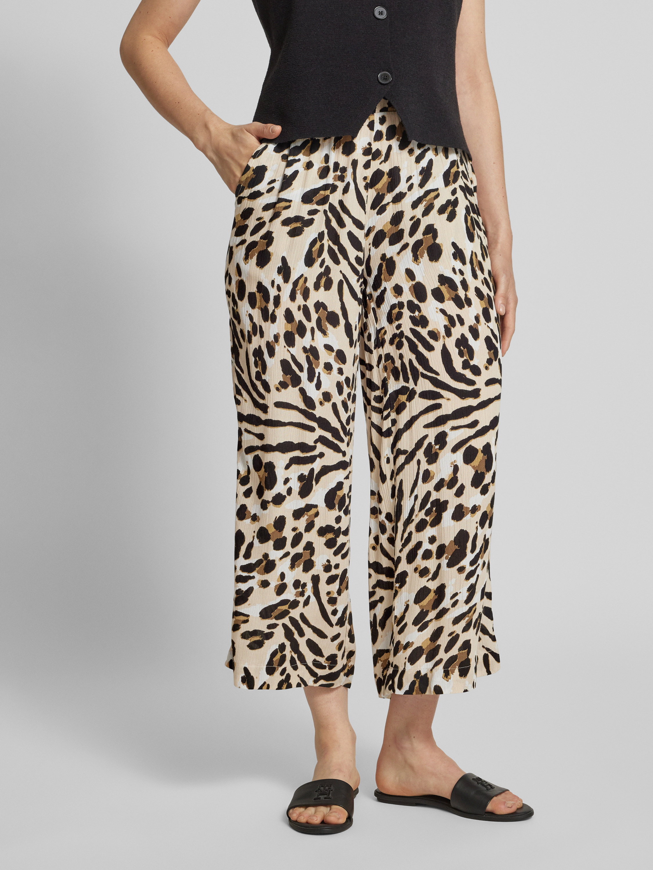 Kuloty z szeroką nogawką i efektem marszczenia model ‘MARRAKECH’ - beżowy
