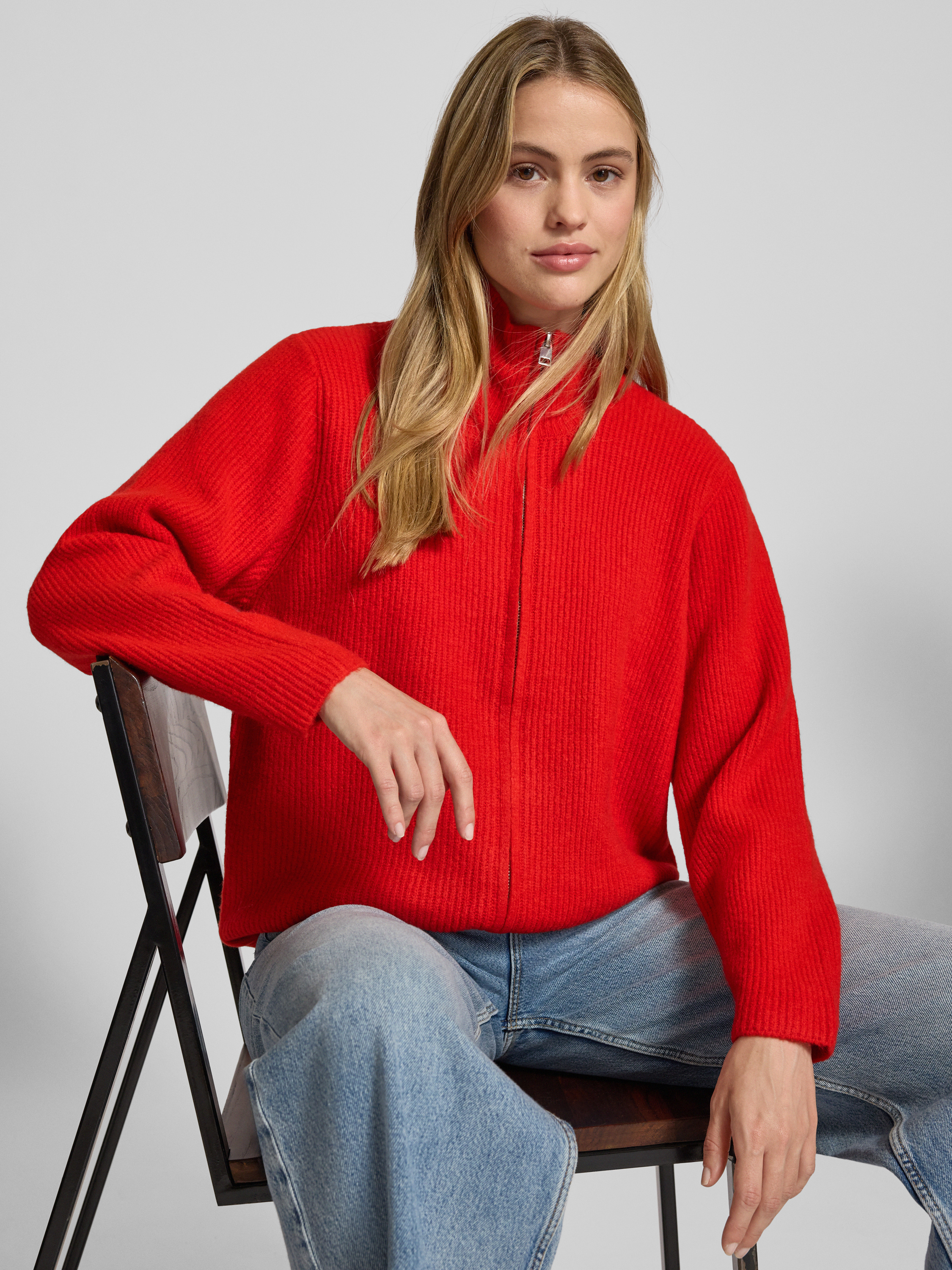 Kurtka z dzianiny o kroju regular fit ze stójką model 'IHDUCIE’ - czerwony