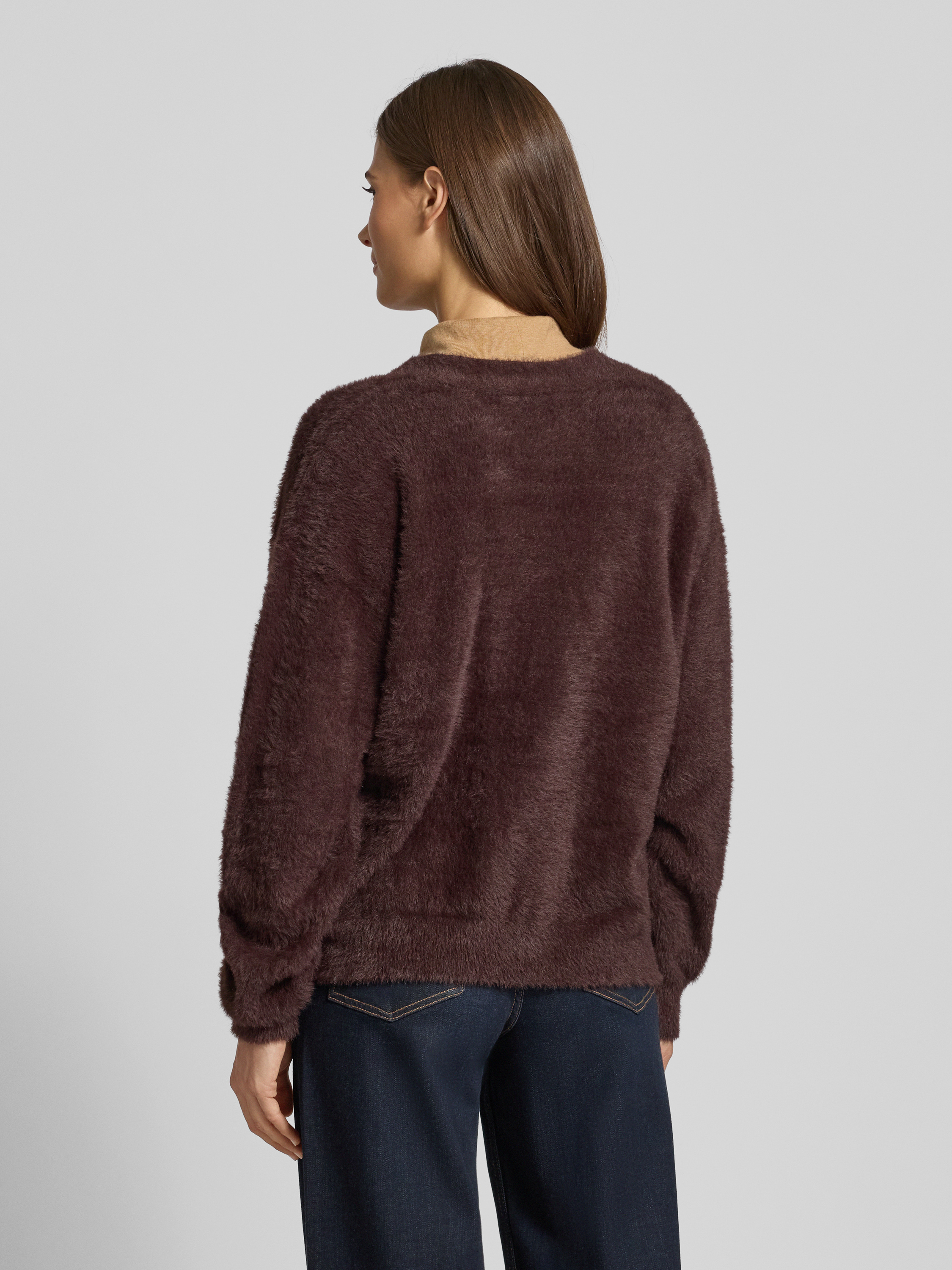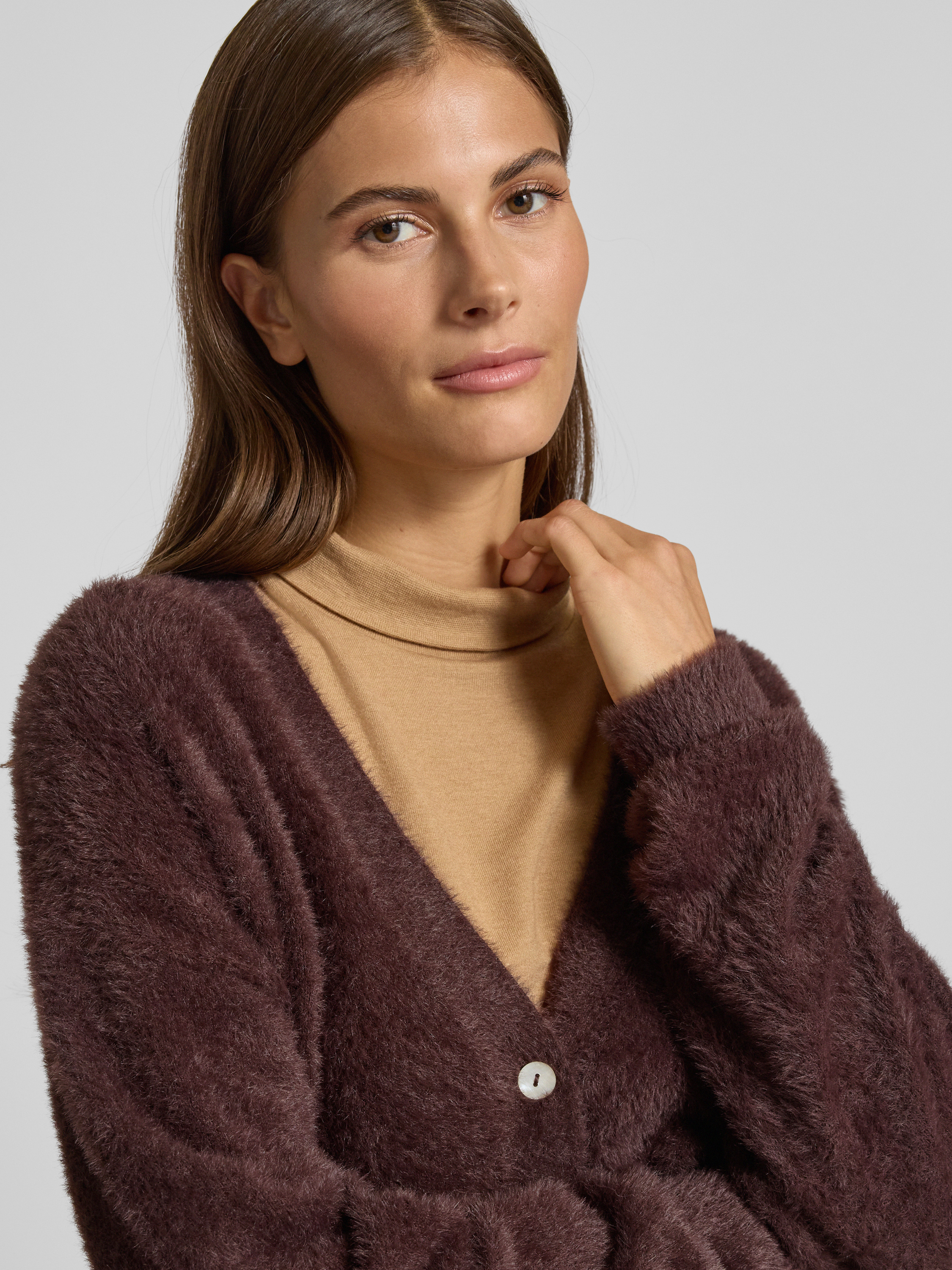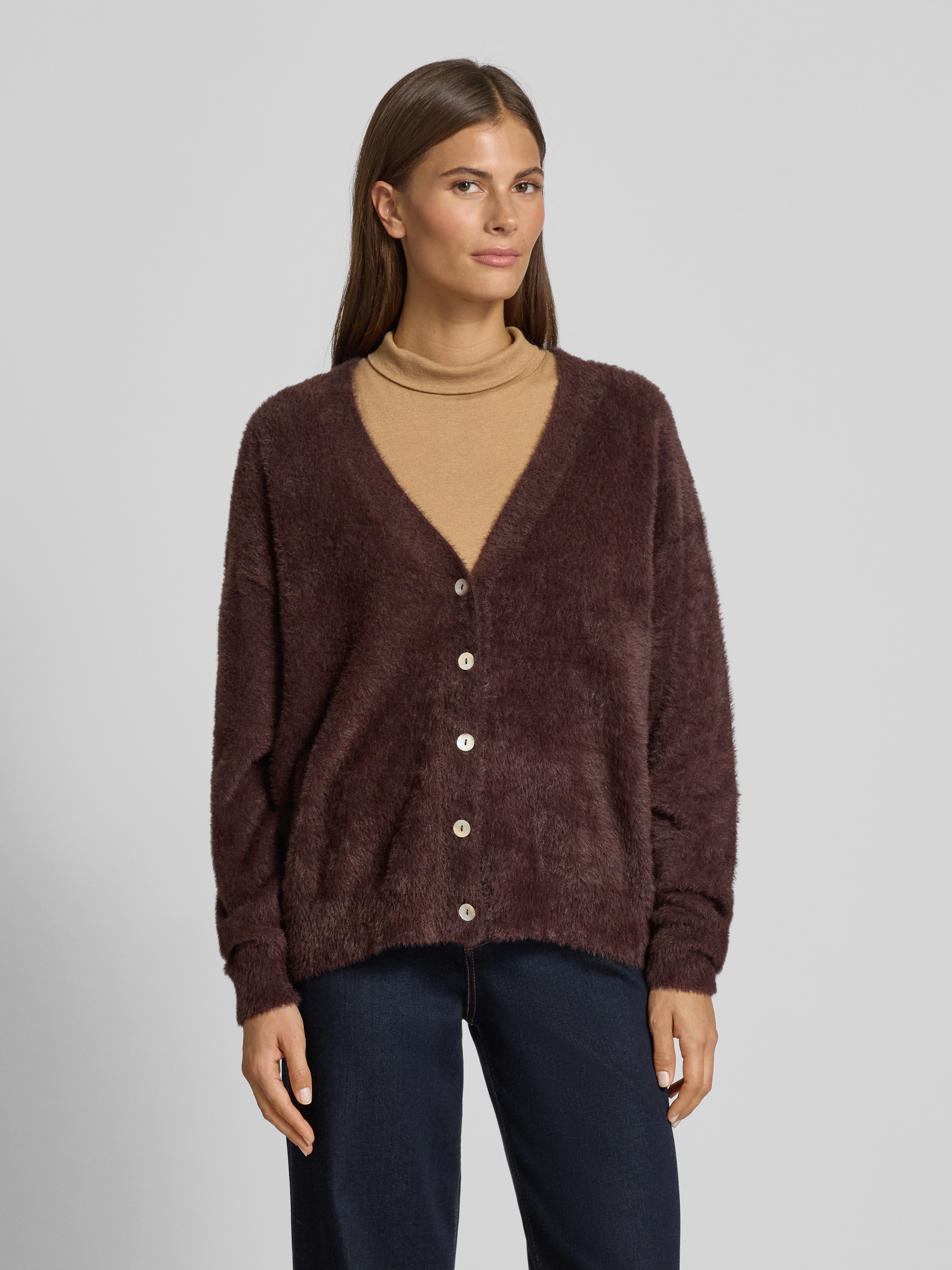 Kurtka z dzianiny z dekoltem w serek model ‘BRULA’ - ciemnobrązowy