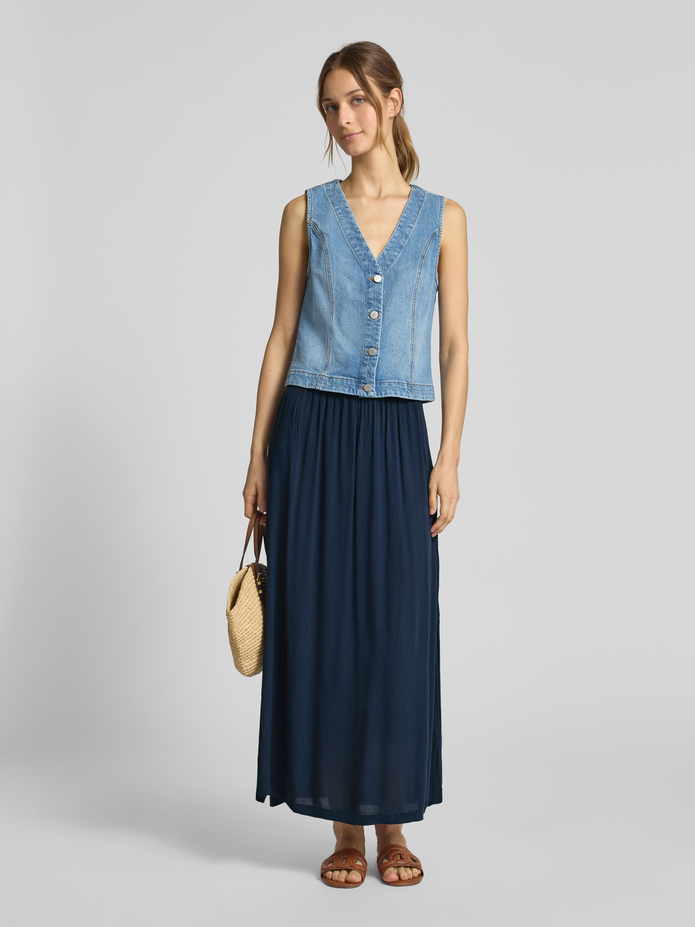 Spódnica midi z wiskozy z elastycznym pasem - granatowy