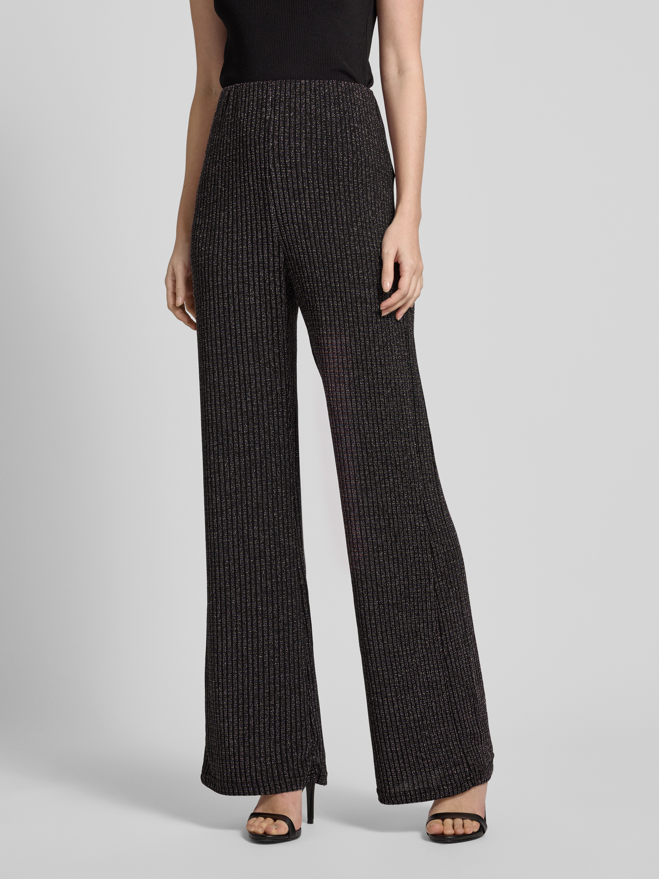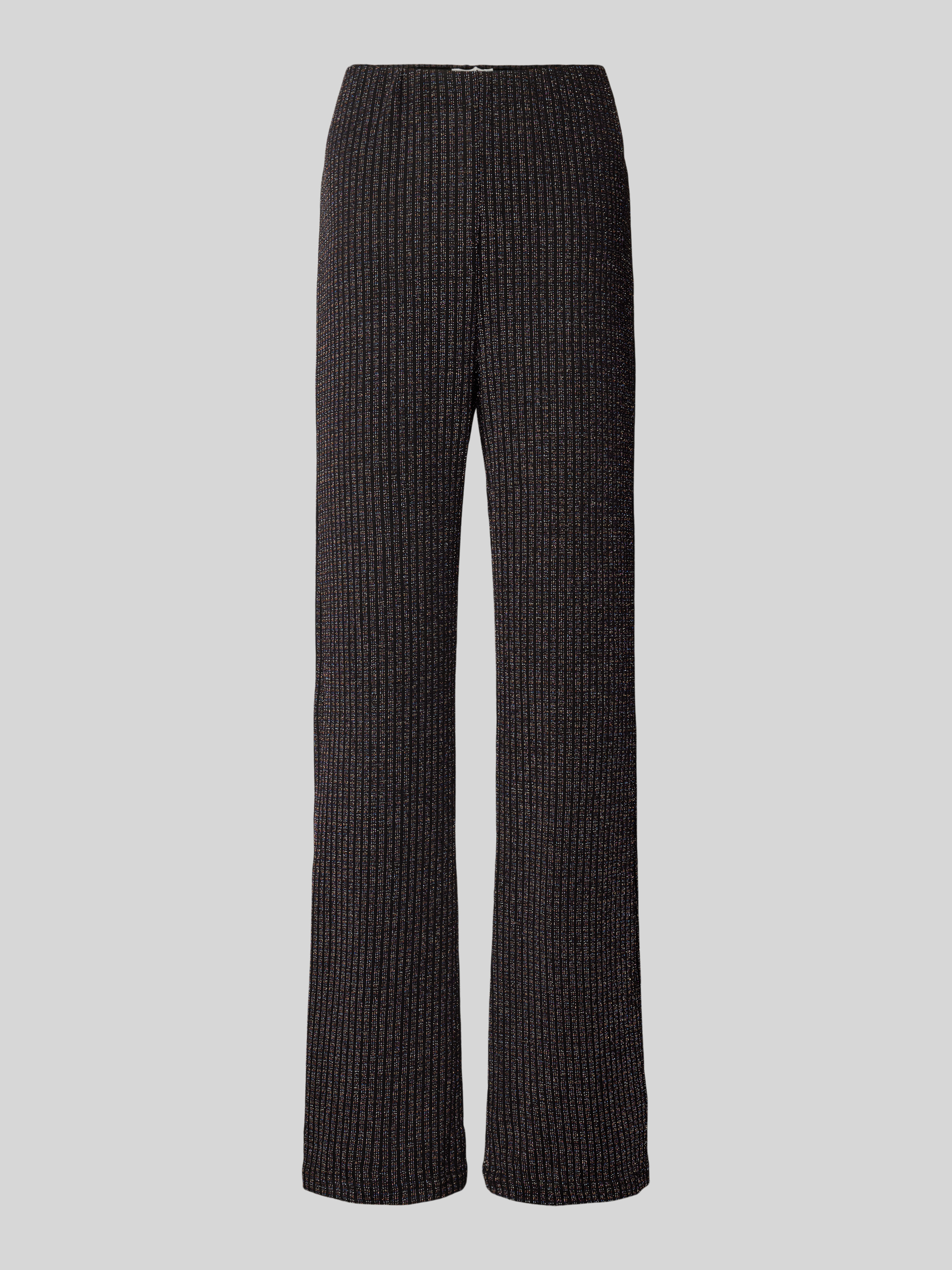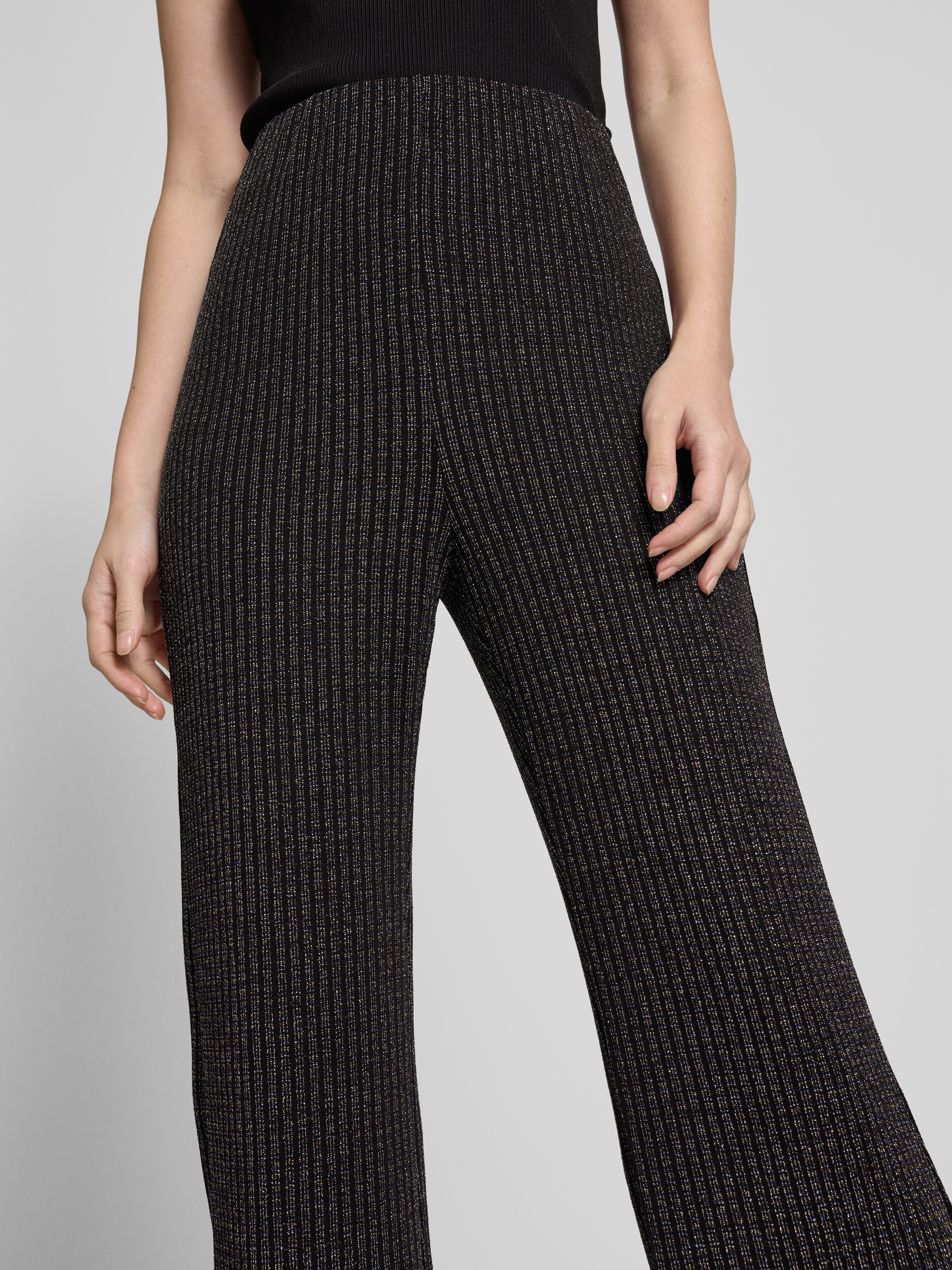 Spodnie materiałowe o rozkloszowanym kroju z efektowną przędzą model ‘MAJANA’ - czarny