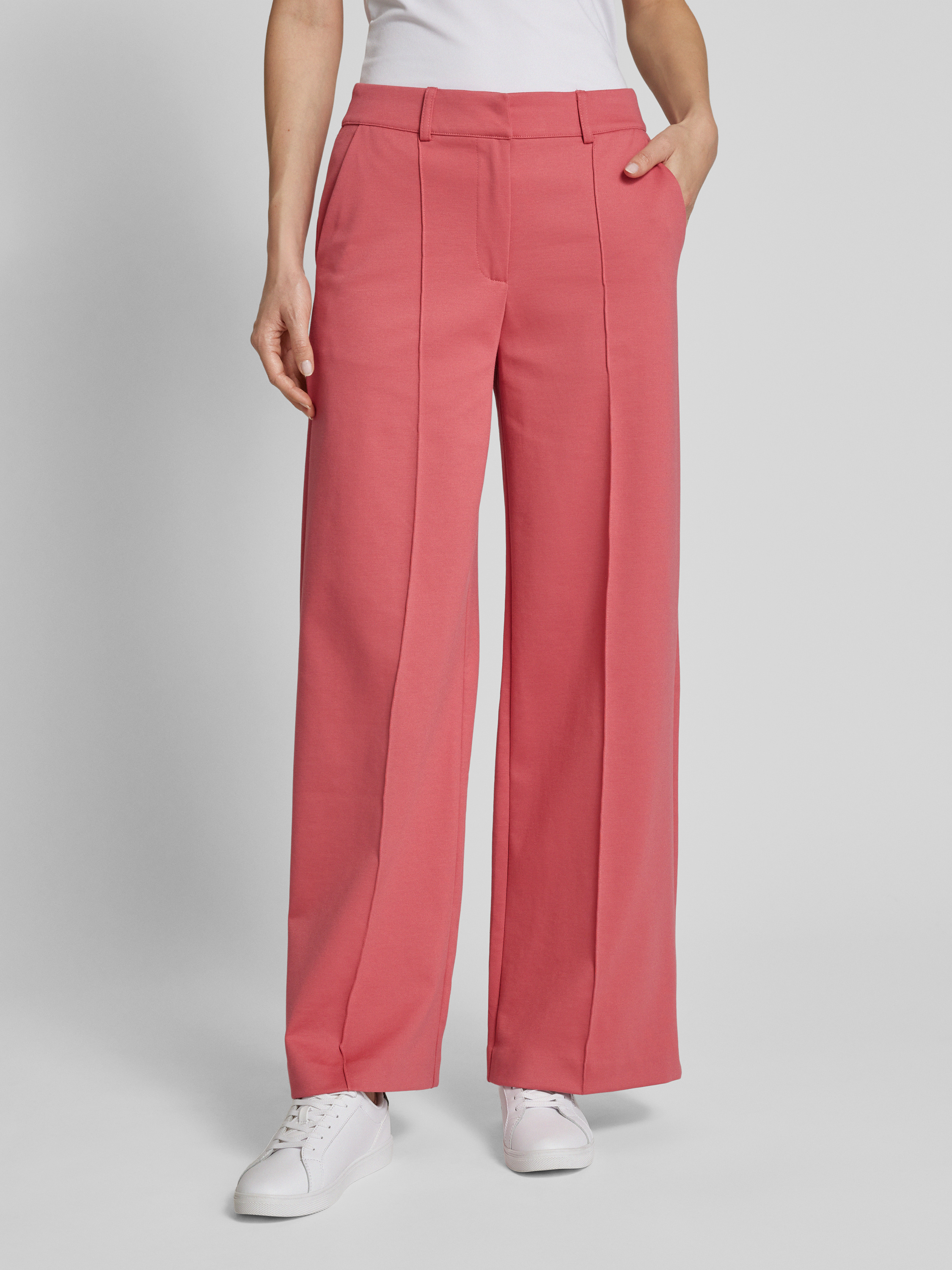 Spodnie materiałowe z szeroką nogawką z przeszytym kantem model ‘KATE’ - rdzawoczerwony