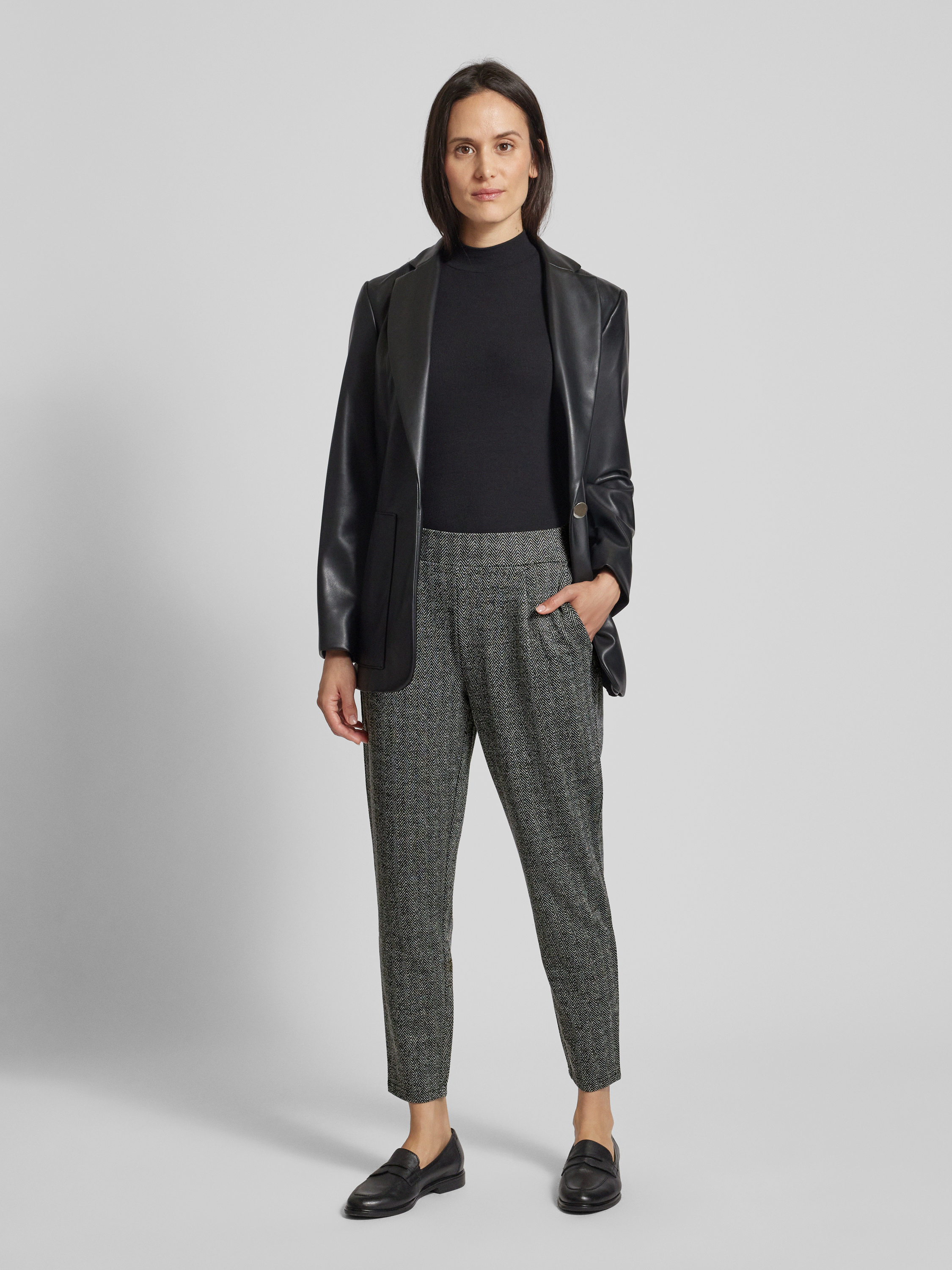 Spodnie materiałowe ze szwami działowymi model ‘KATE’ - średnioszary melanż