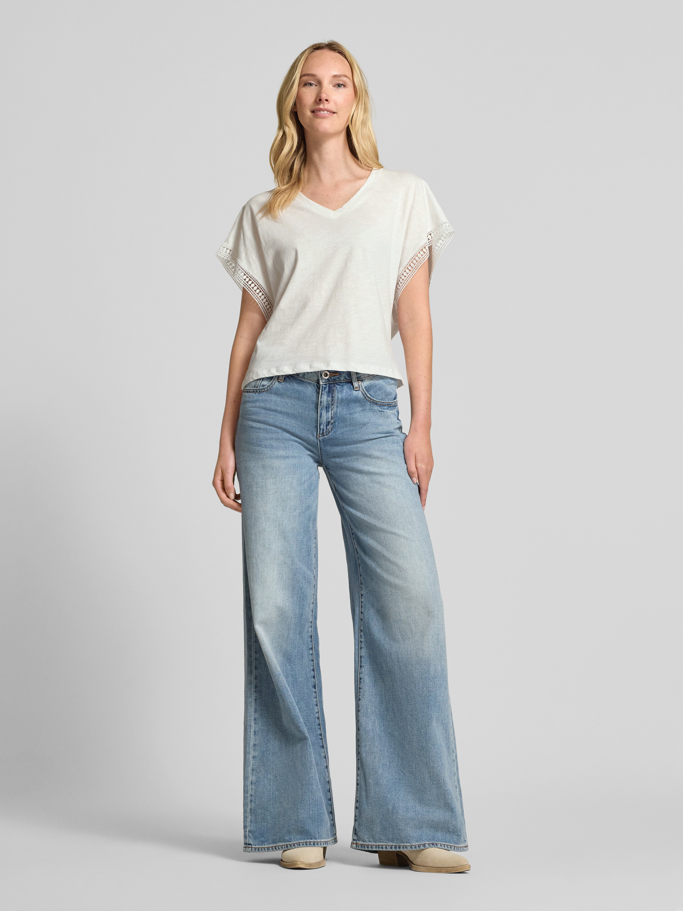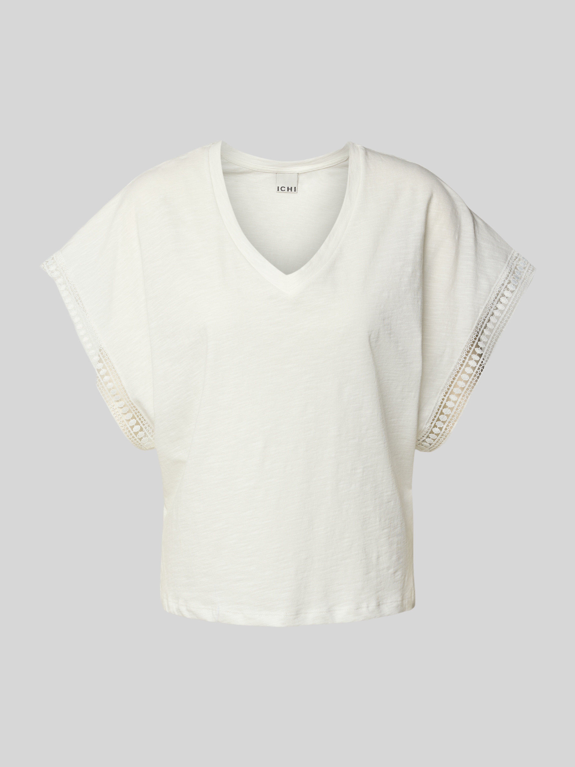 T-shirt z dekoltem w serek model ‘HOLYA’ - złamany biały