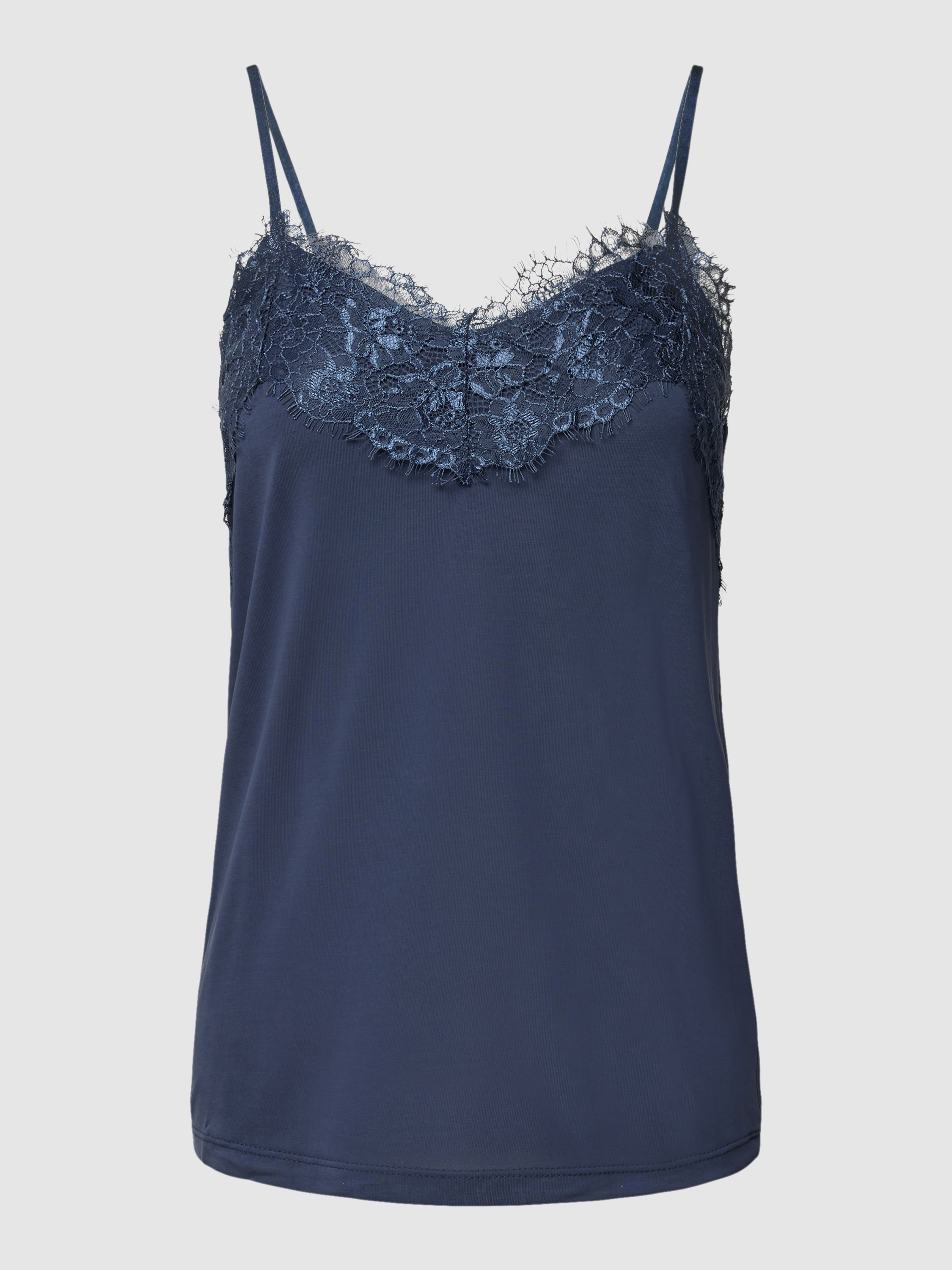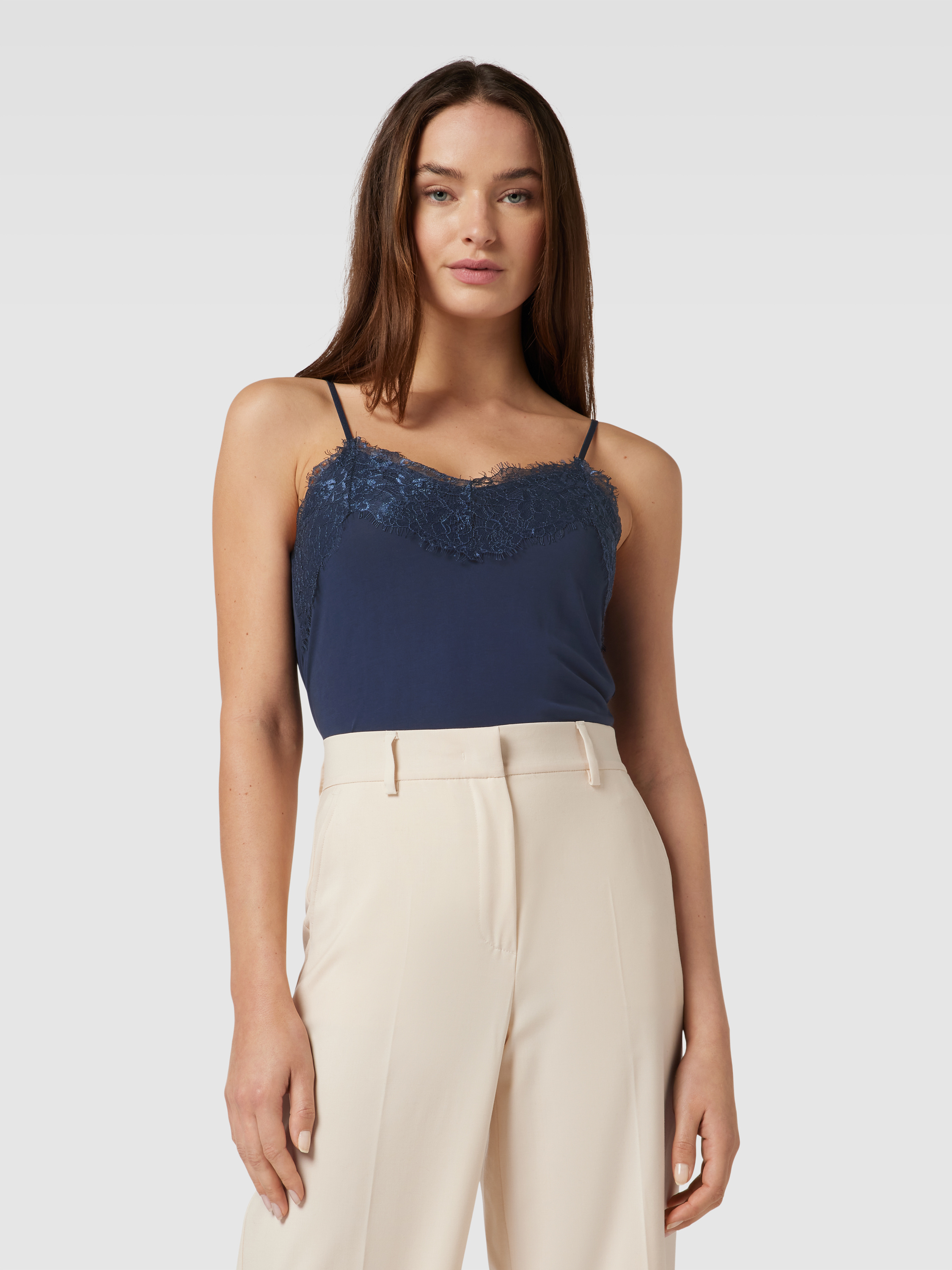 Top na ramiączkach z obszyciem z koronki - granatowy