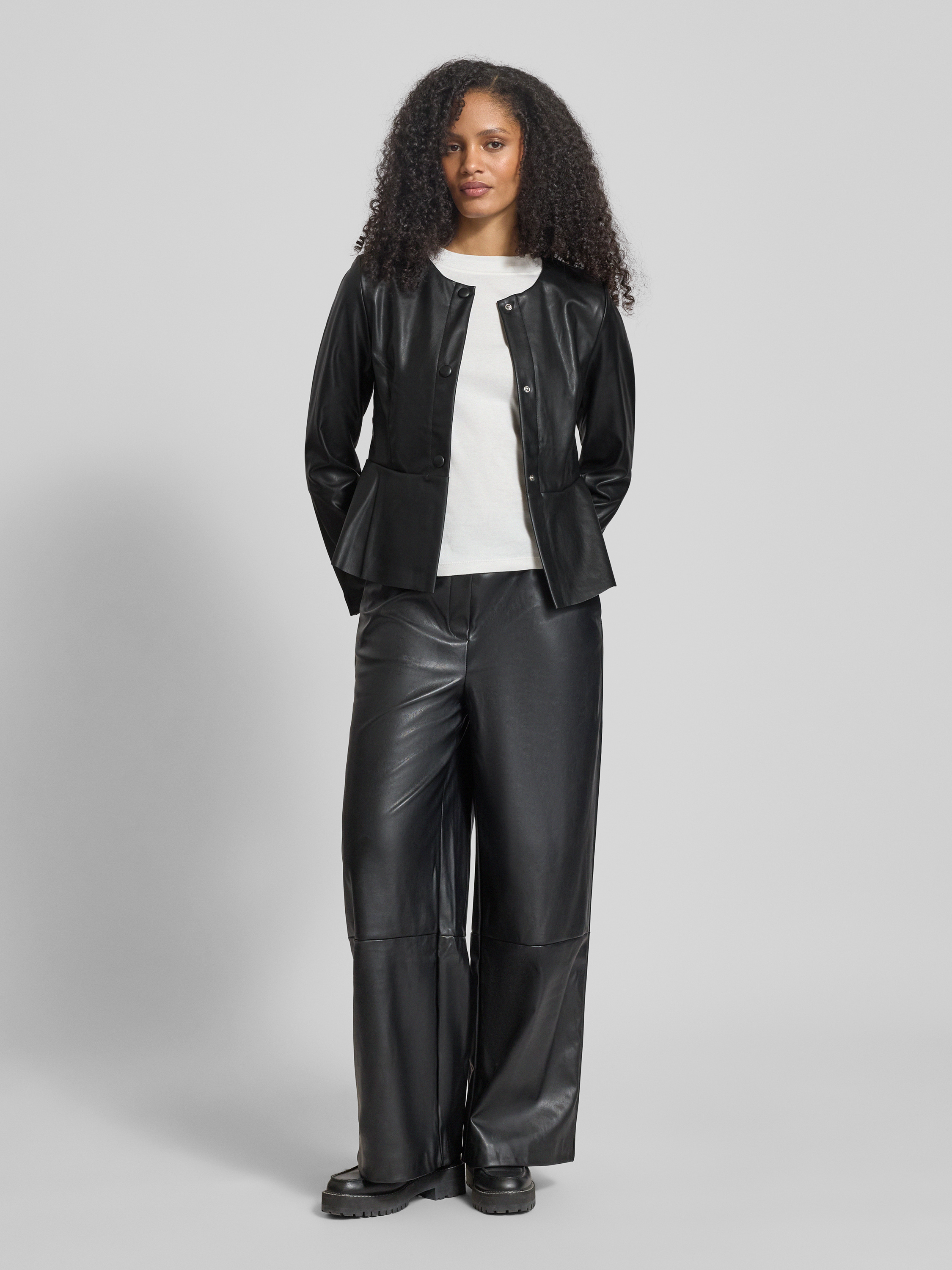 Spodnie materiałowe o szerokim kroju z imitacji skóry model ‘Zoma’