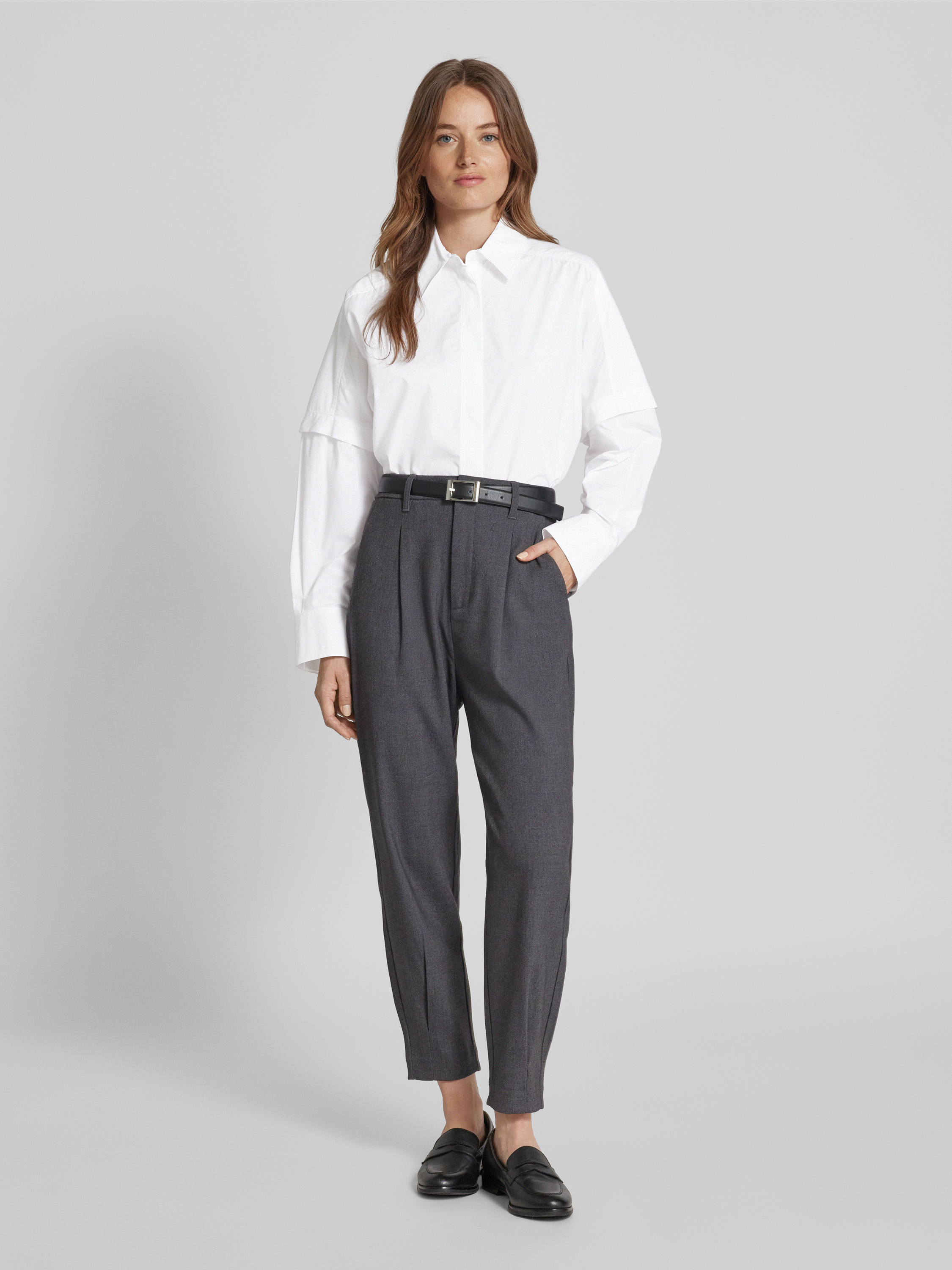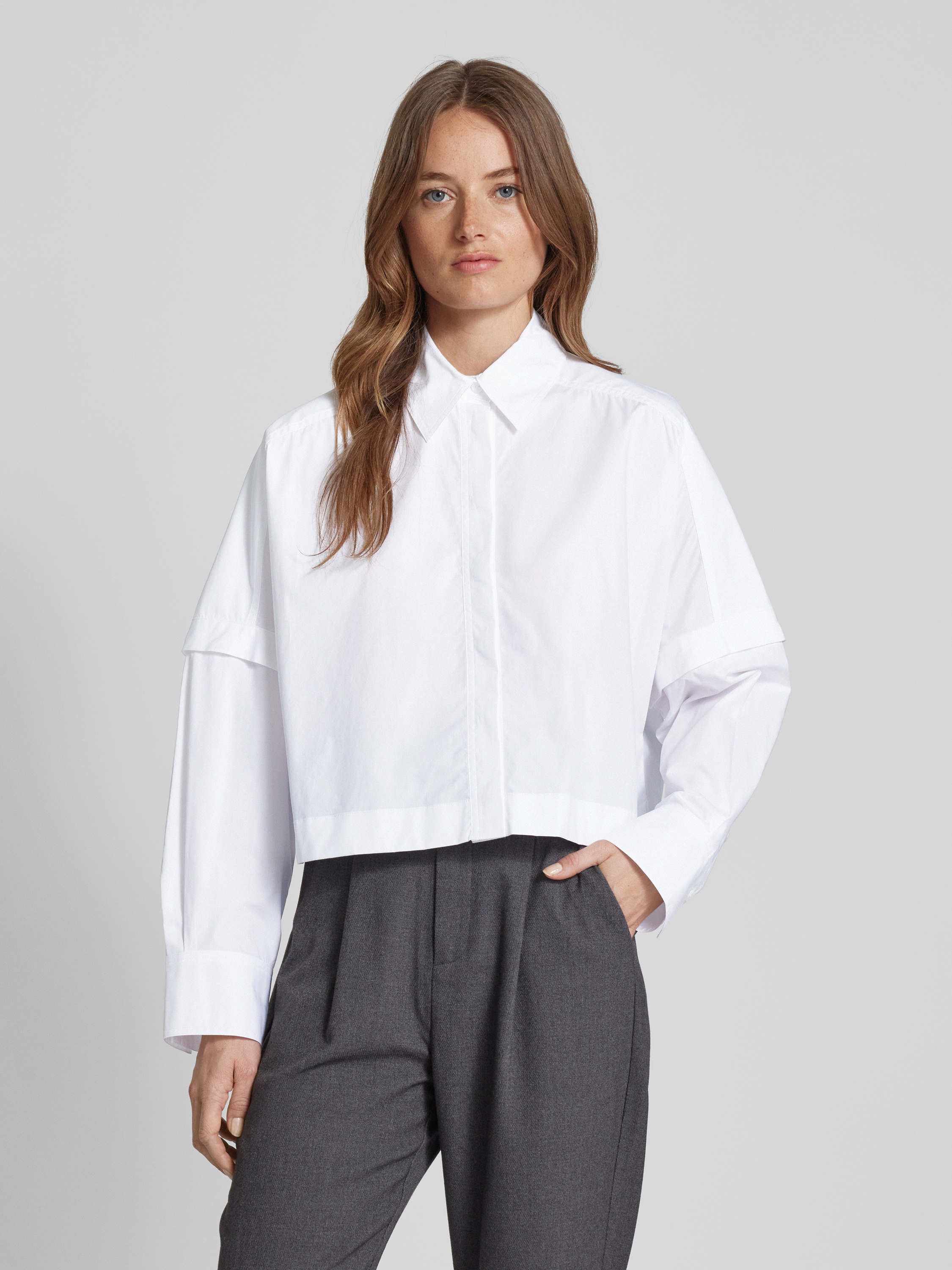 Bluzka koszulowa z krytą listwą guzikową model ‘ELVIRA’ - złamany biały