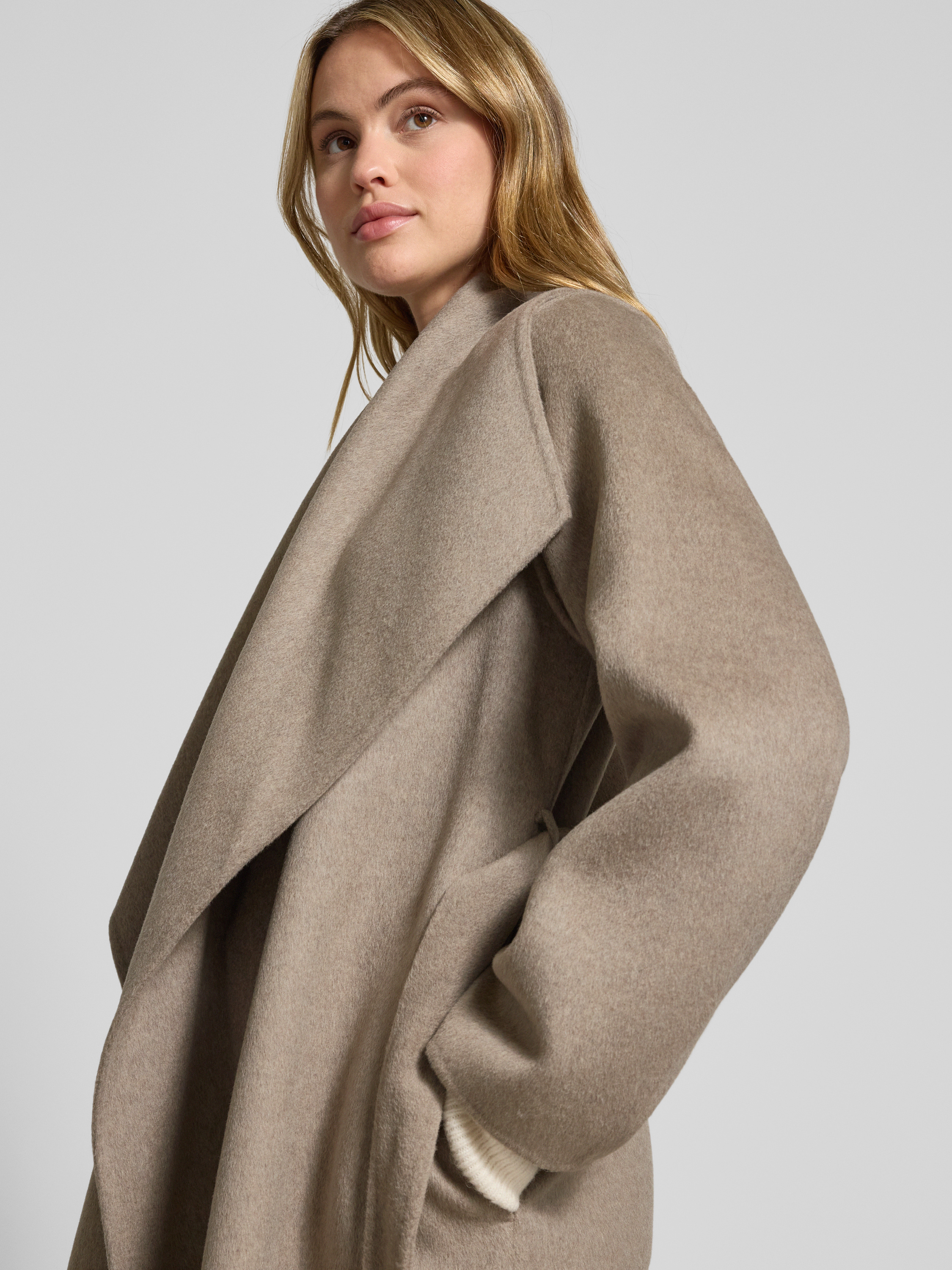 Płaszcz wełniany z wiązanym paskiem model ‘CARRIE ROSE’ - beżowy