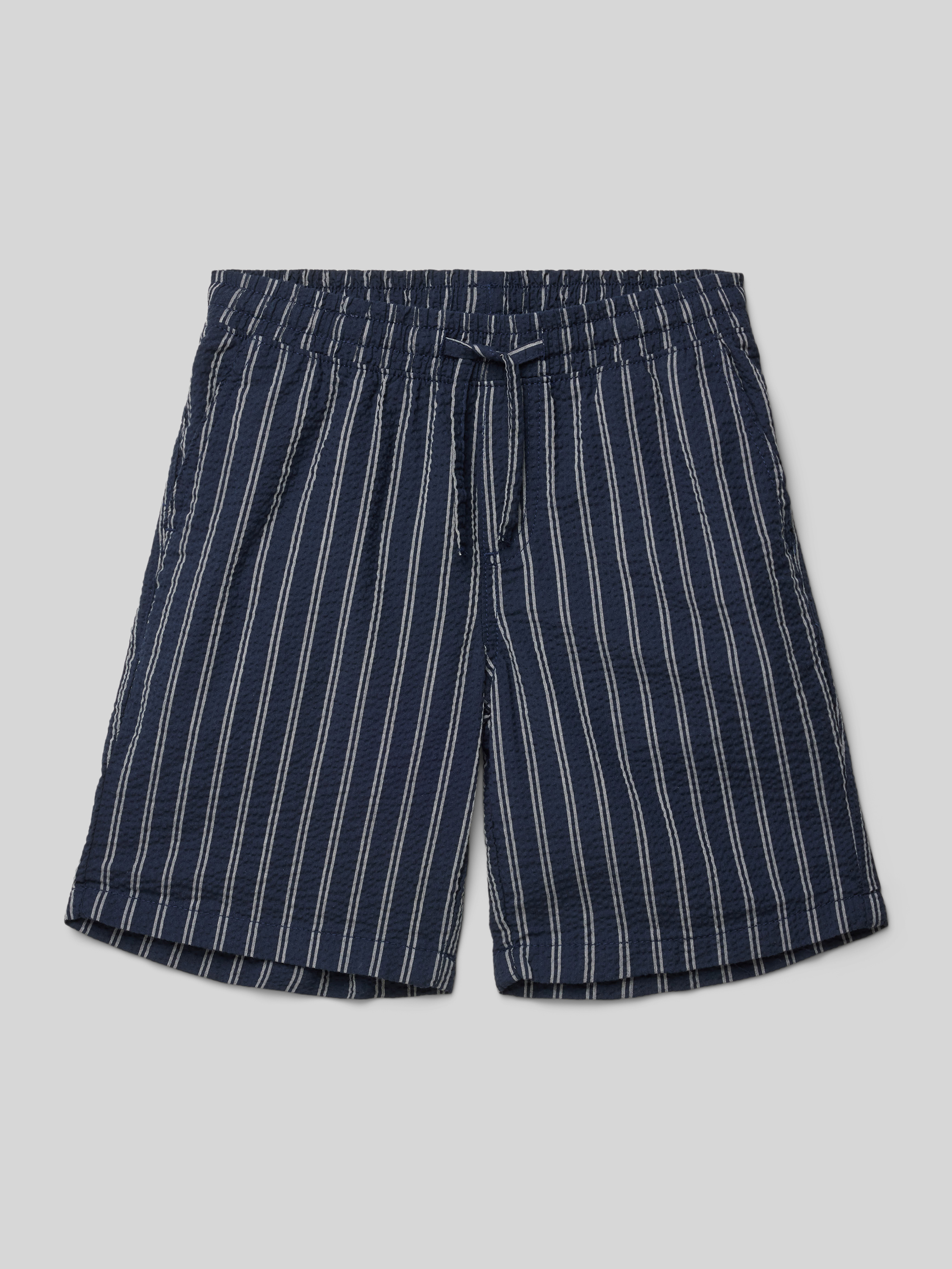 Bermudy o kroju regular fit ze wzorem w paski model ‘JAIDEN’ - granatowy