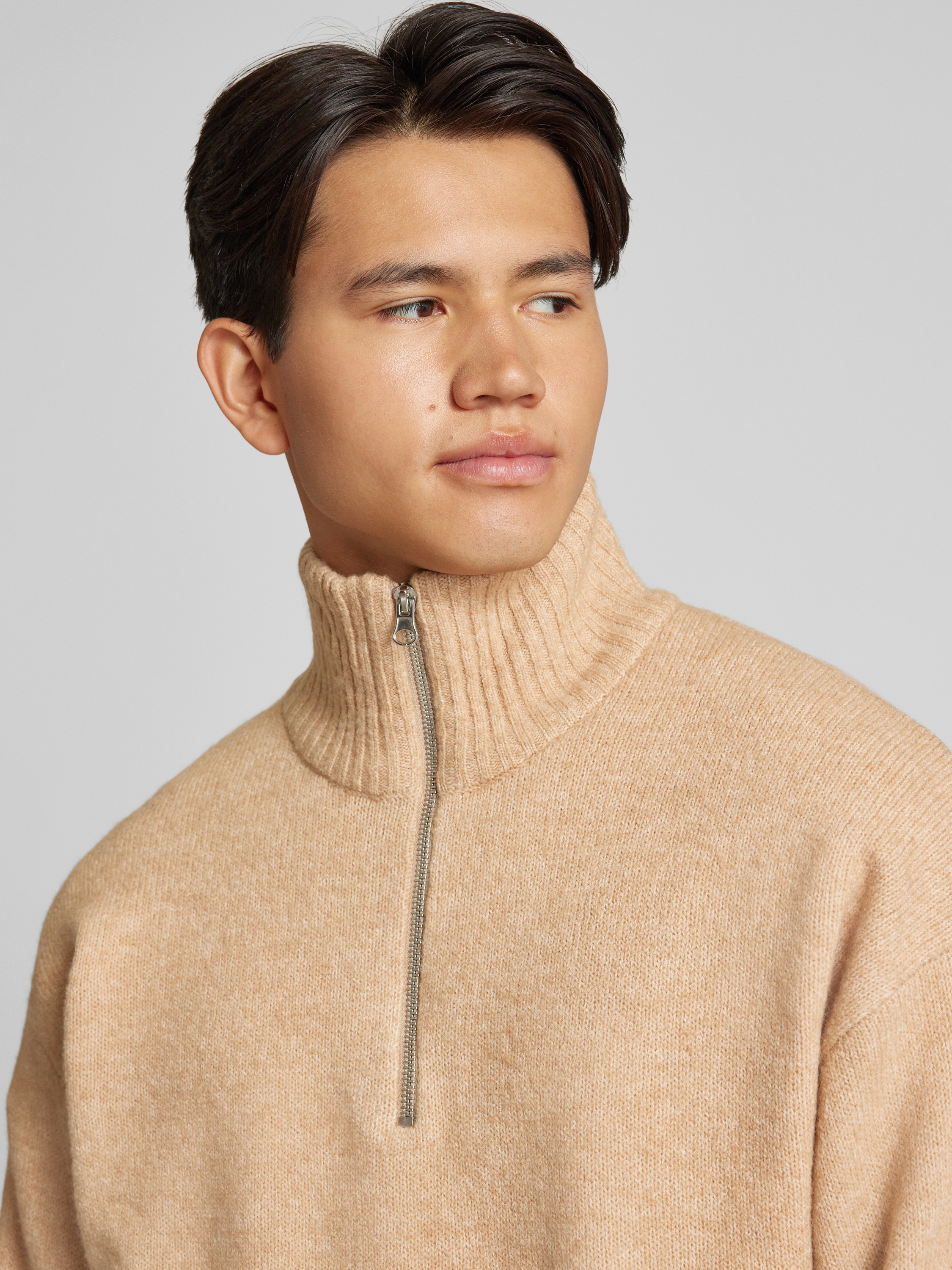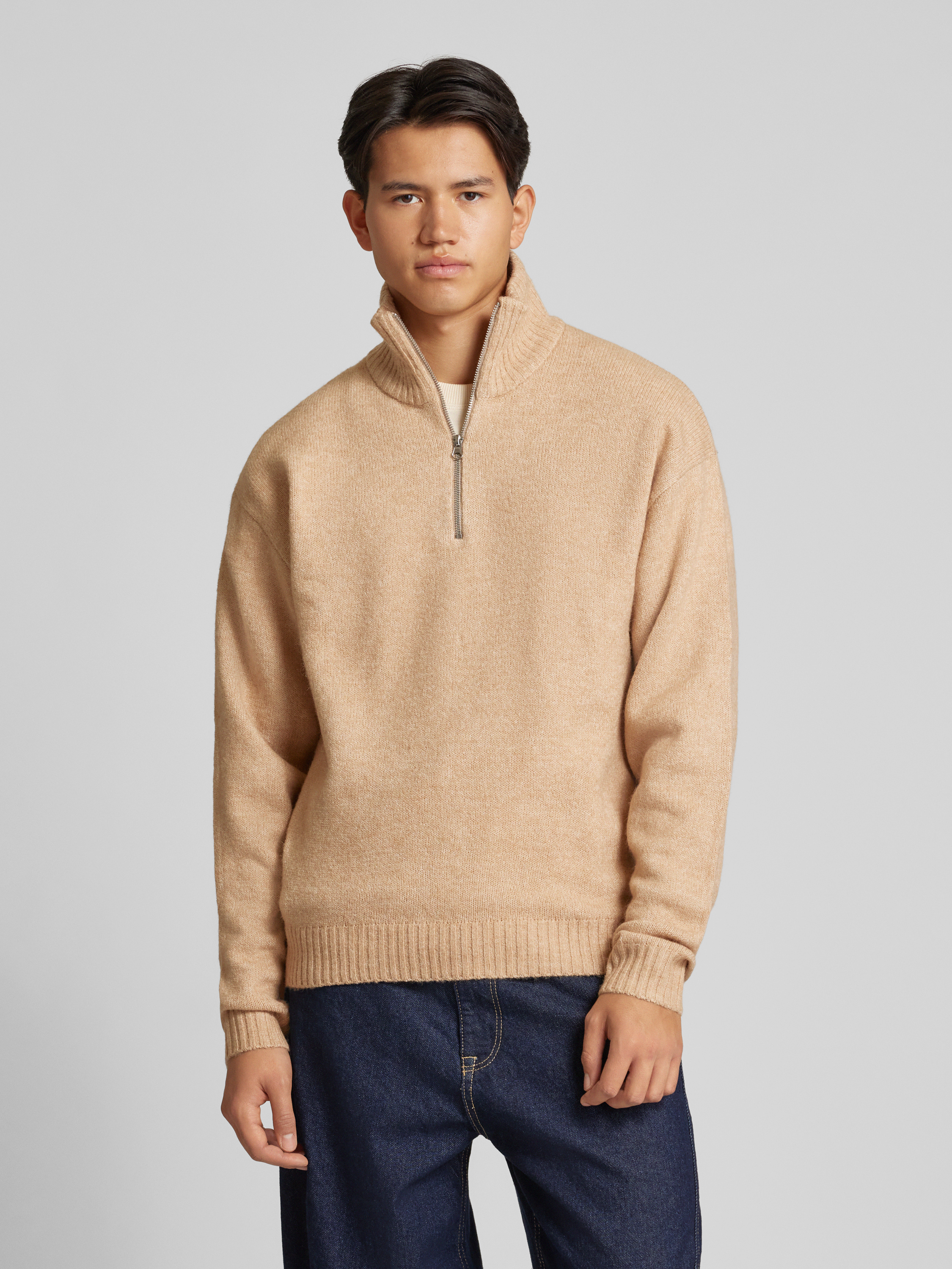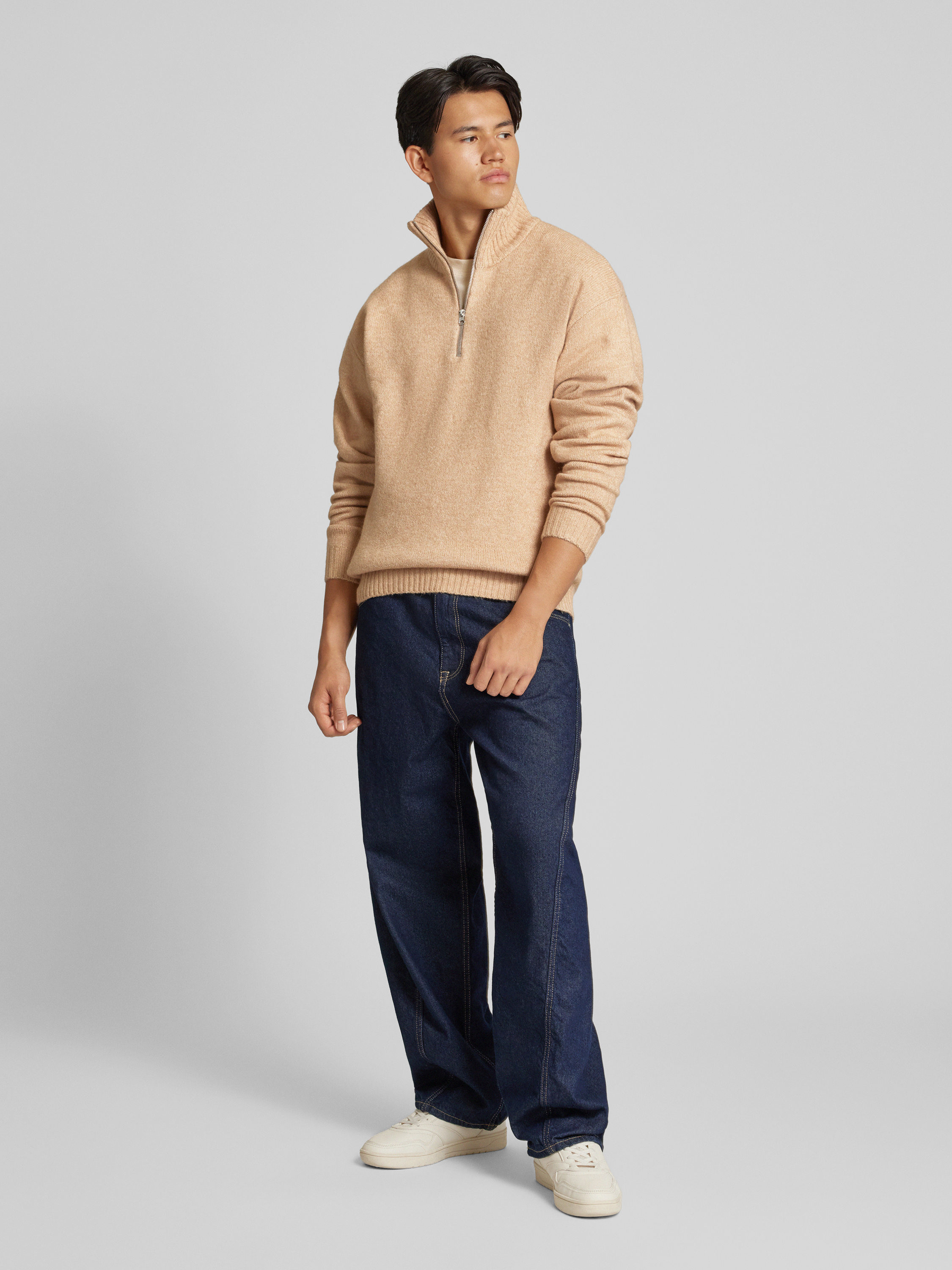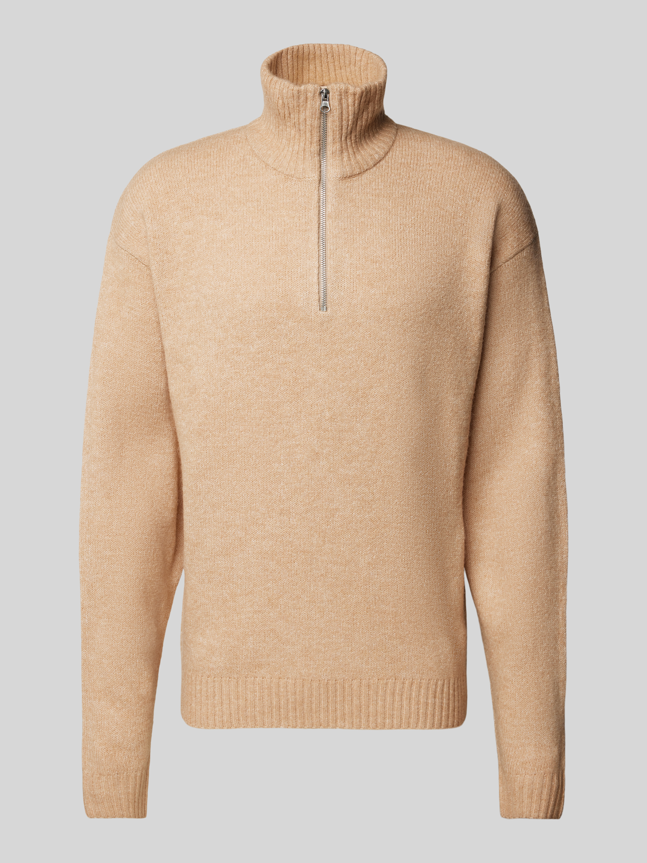 Bluza z kołnierzem i prążkowanymi wykończeniami model ‘OLLIE’ - beżowy