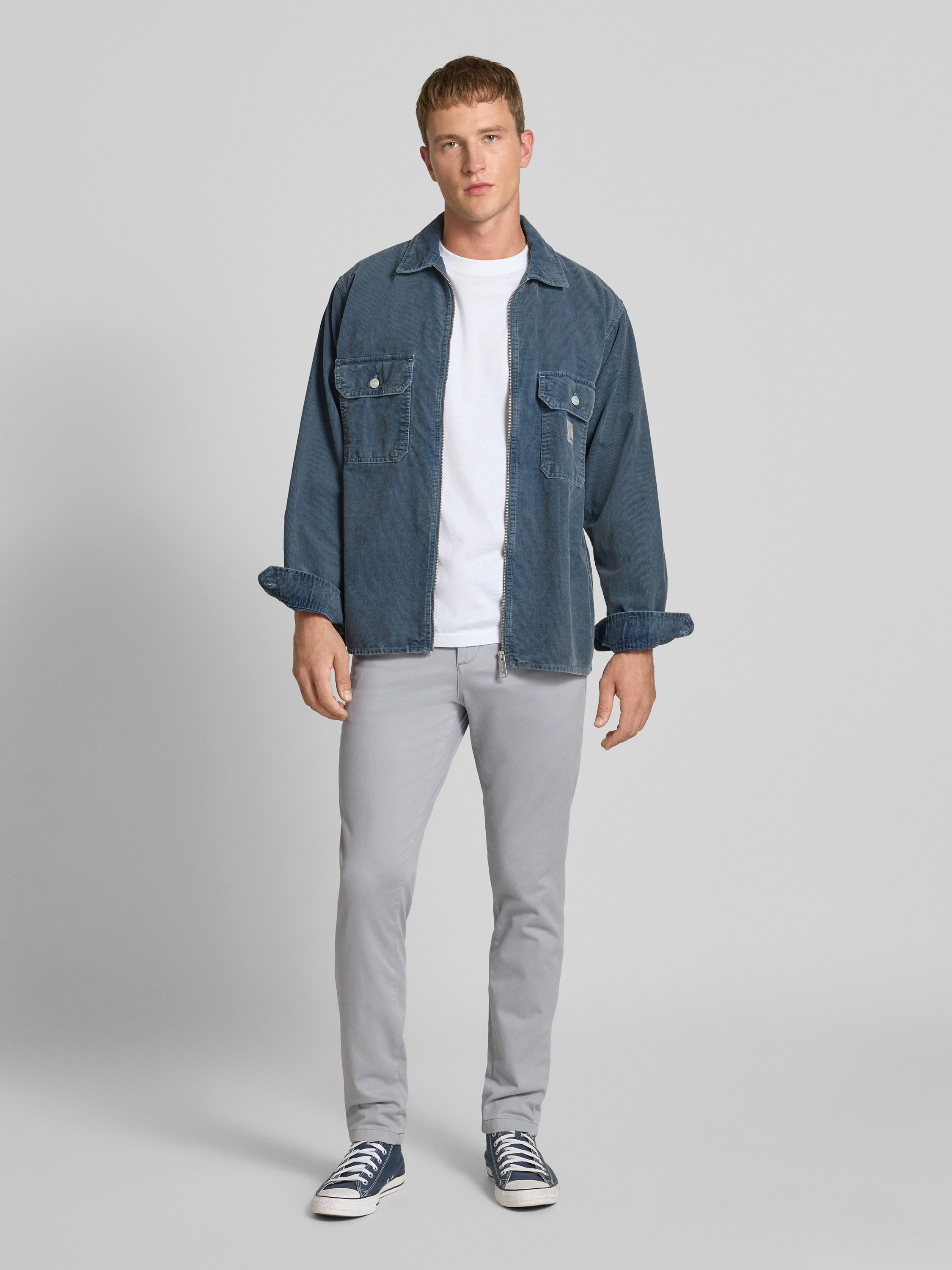 Chinosy o kroju regular fit z dodatkiem streczu model ‘MARCO’ - srebrny