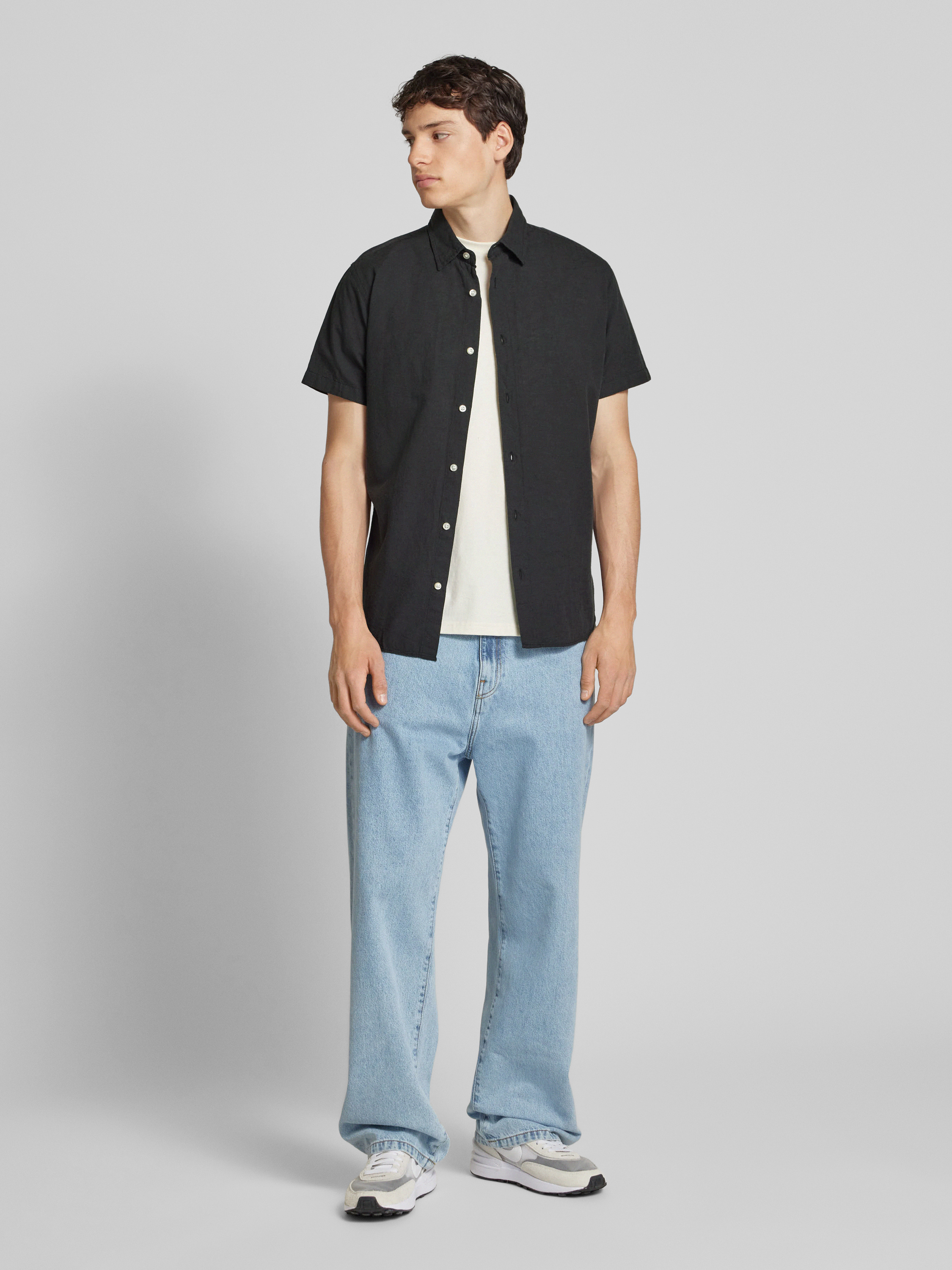 Koszula casualowa o kroju slim fit z rękawem o dł. 1/2 model ‘BREEZE’ - czarny