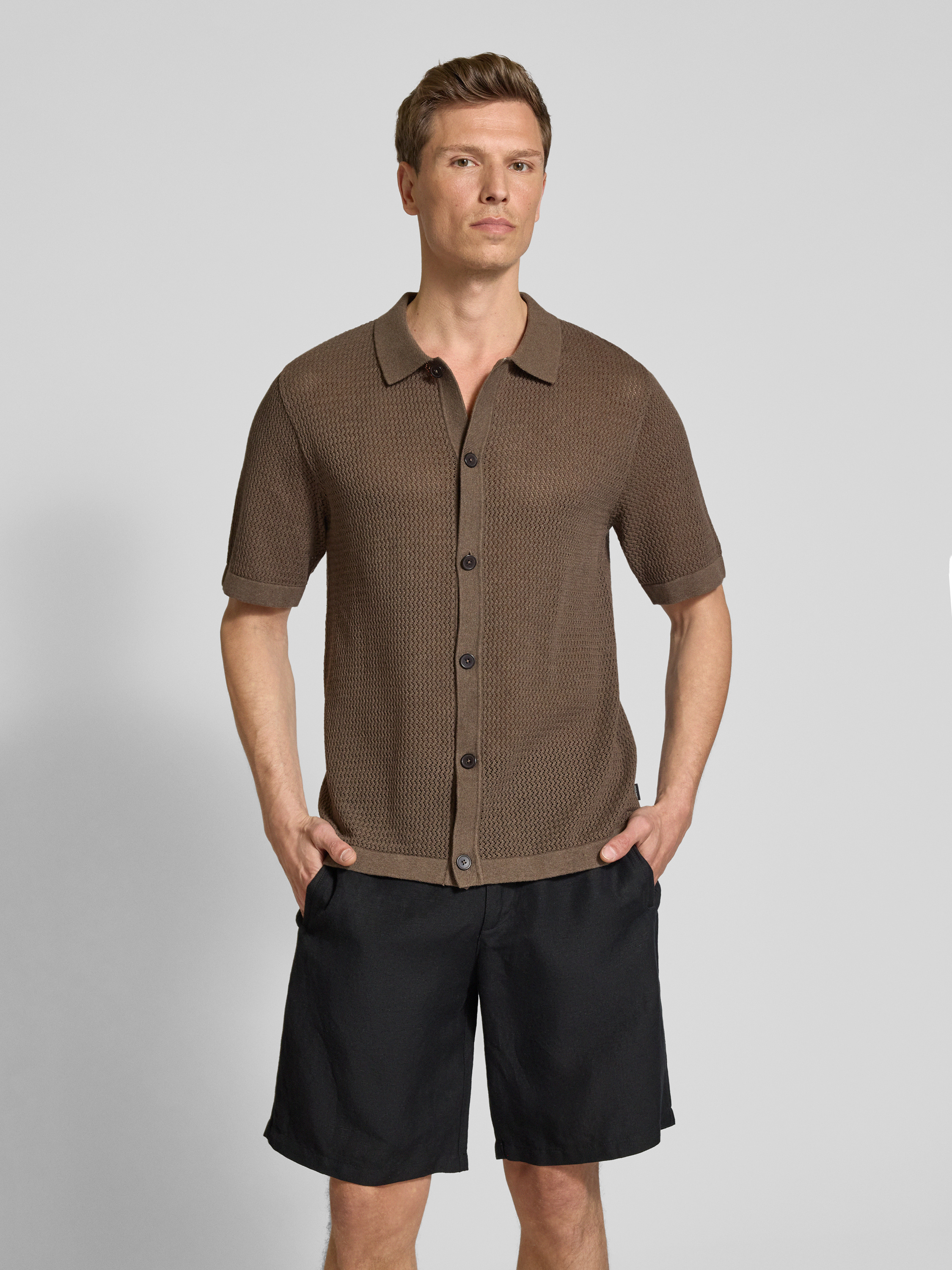 Koszula casualowa z listwą guzikową model ‘AARTO’ - średniobrązowy