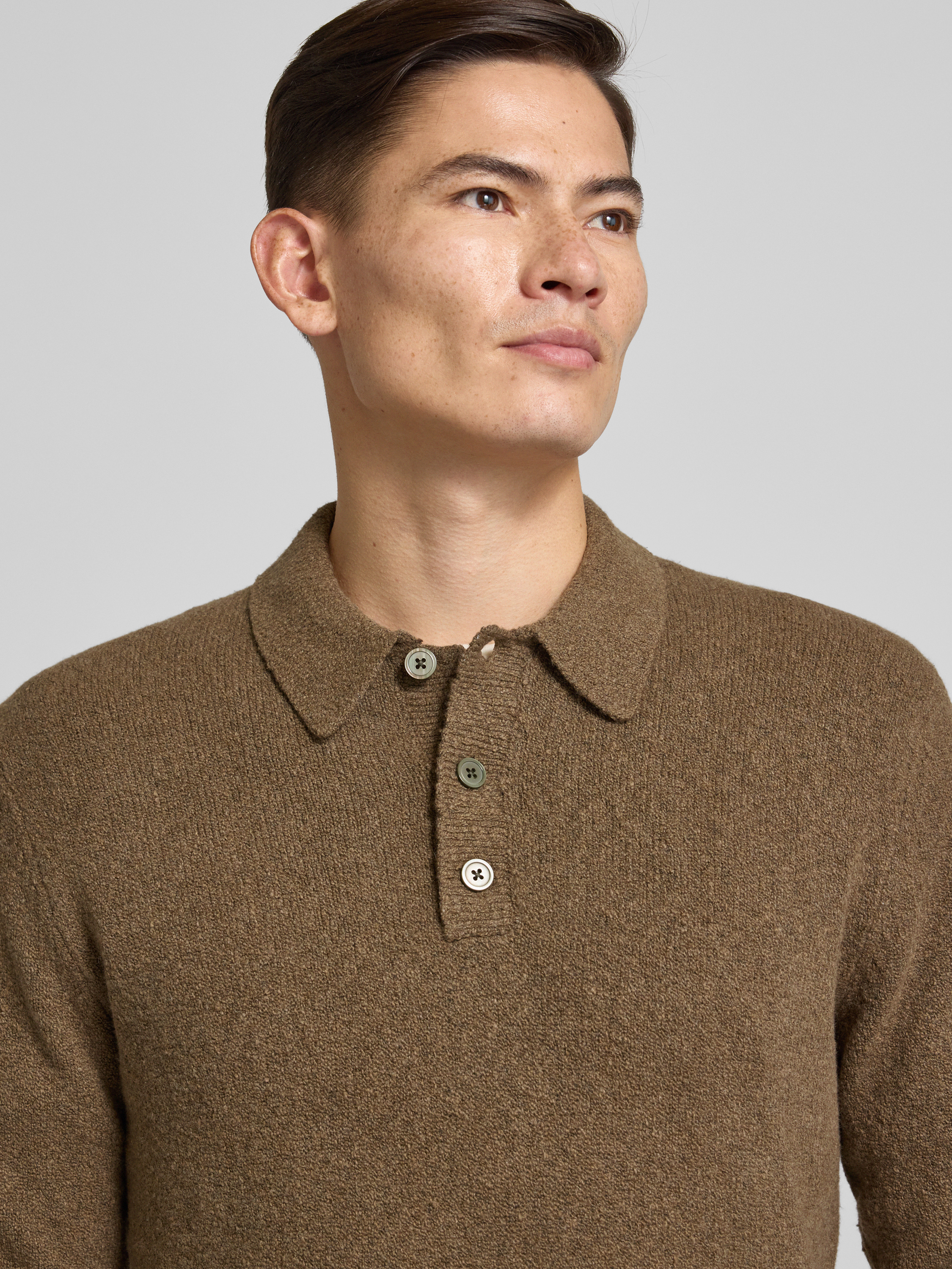 Sweter z dzianiny z kołnierzykiem polo model ‘MAVERICK’ - camel