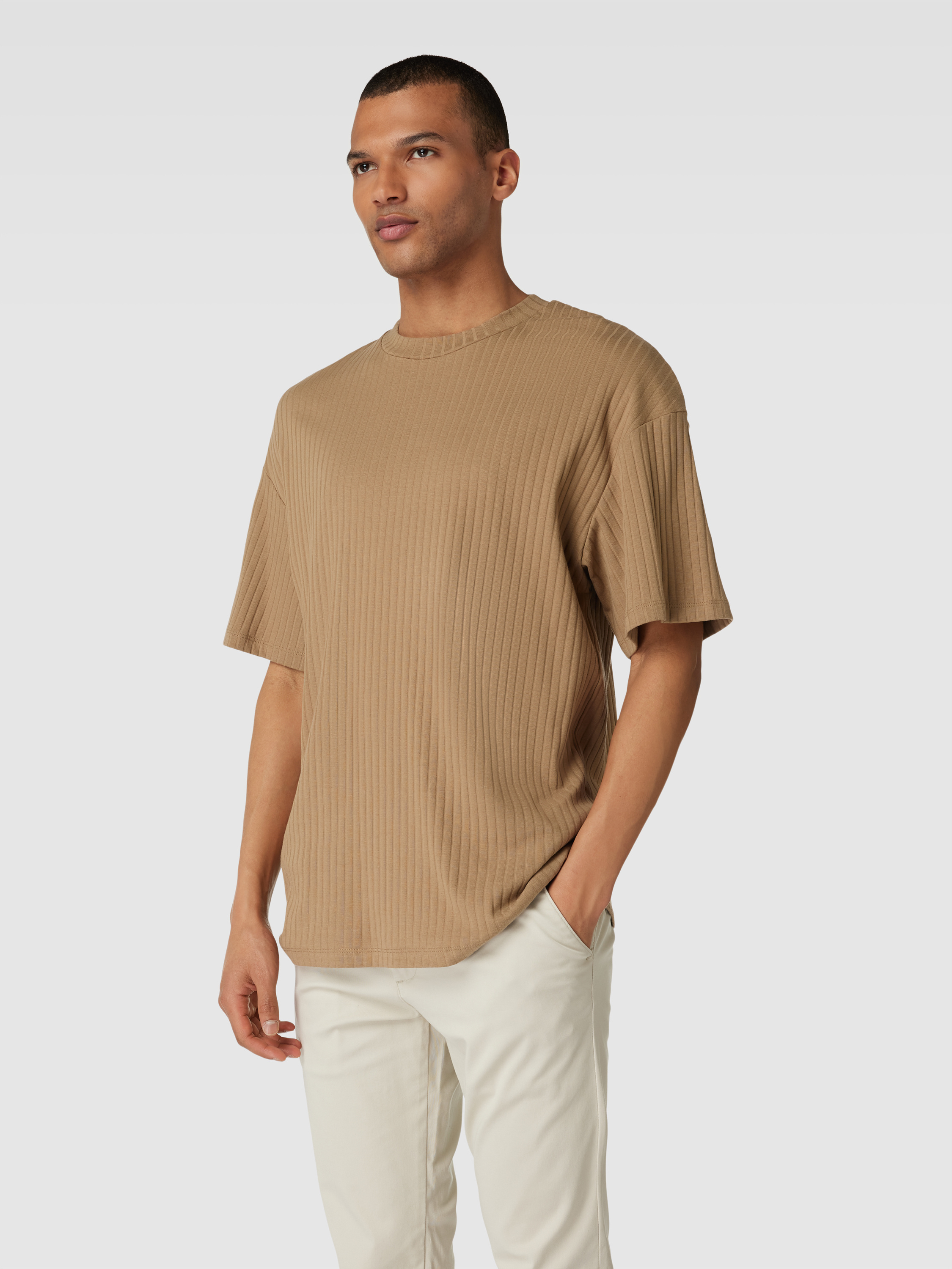 T-shirt z okrągłym dekoltem model ‘AWARD’ - koniakowy
