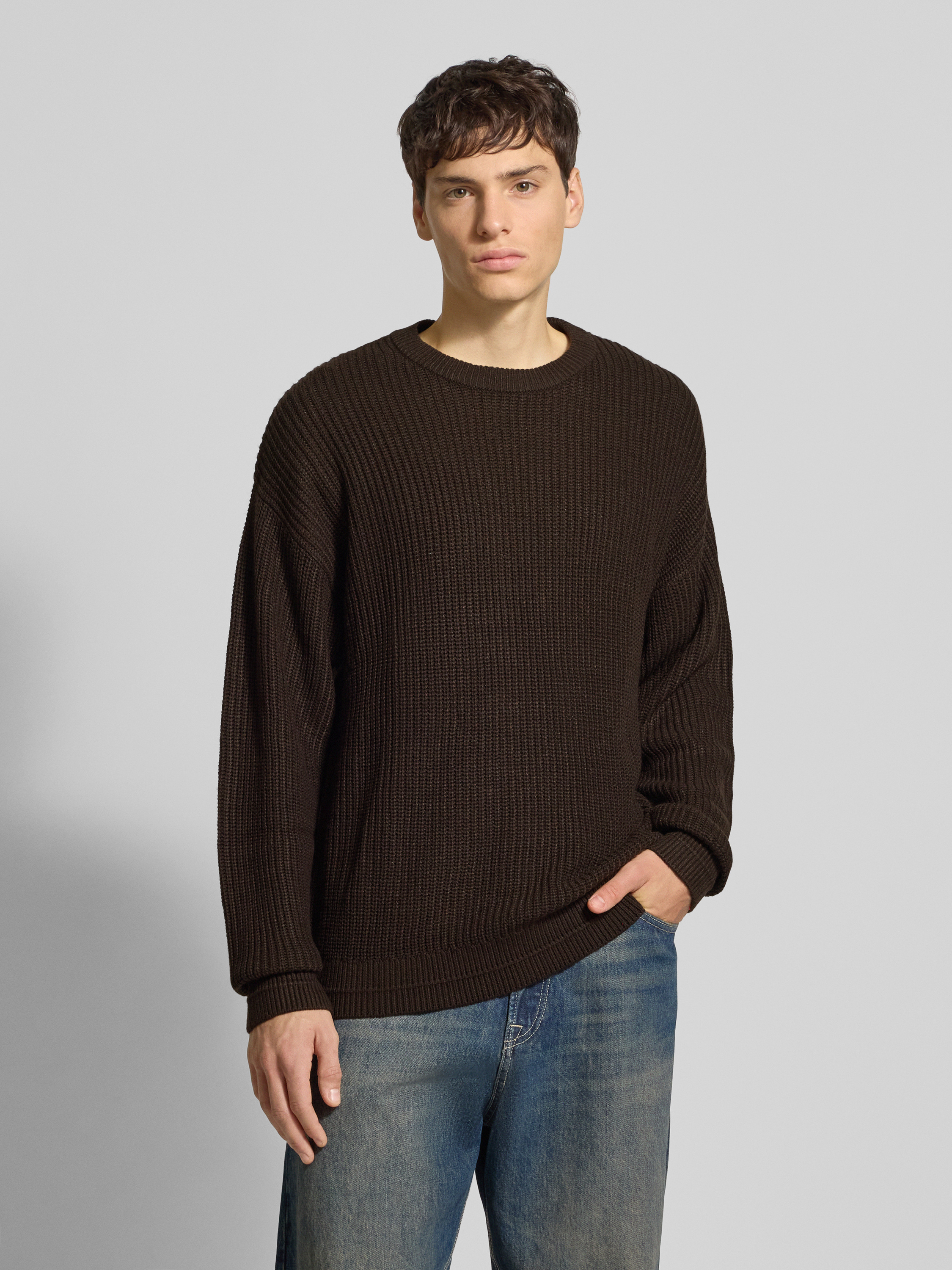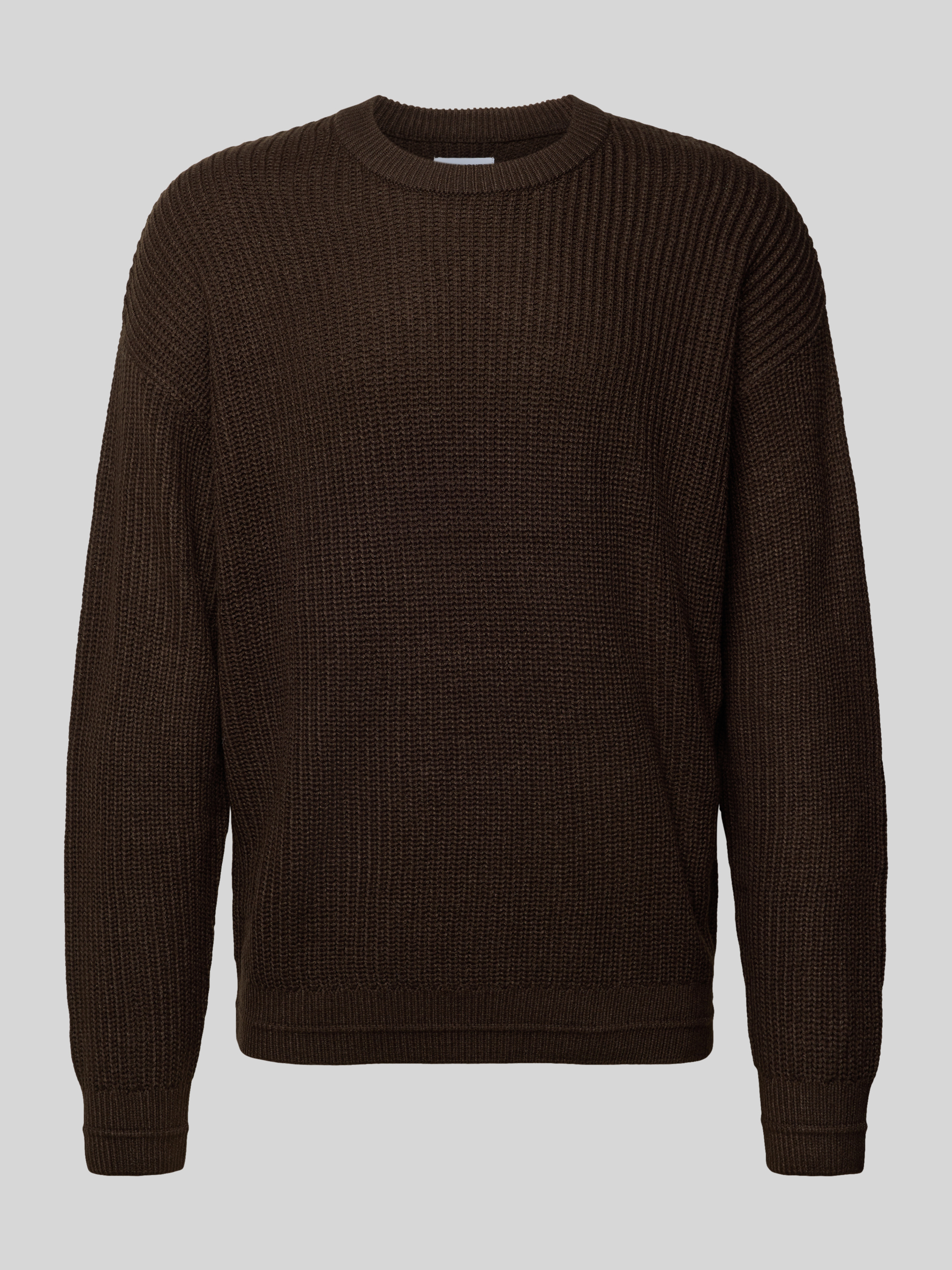 Sweter z dzianiny z okrągłym dekoltem model ‘KAITO’ - ciemnobrązowy