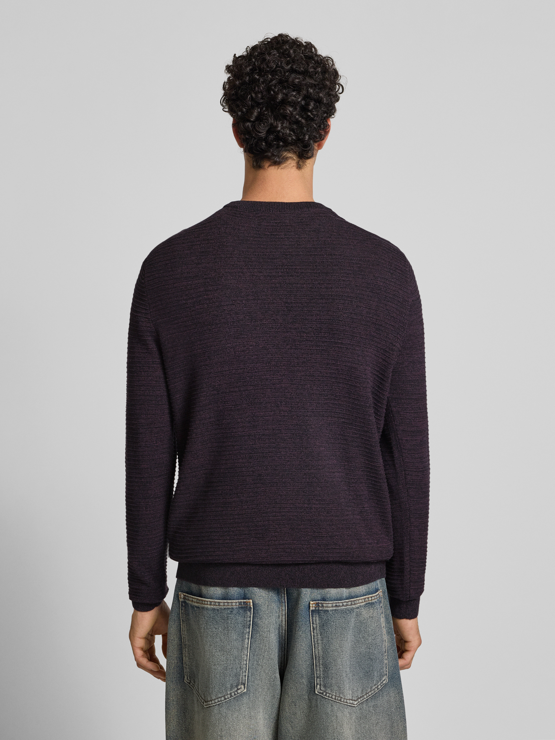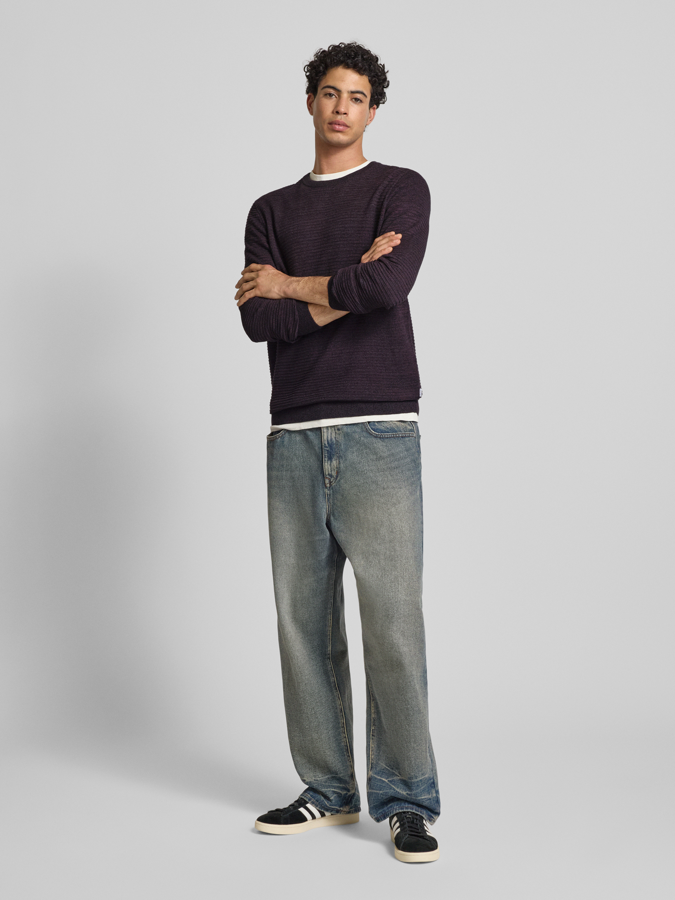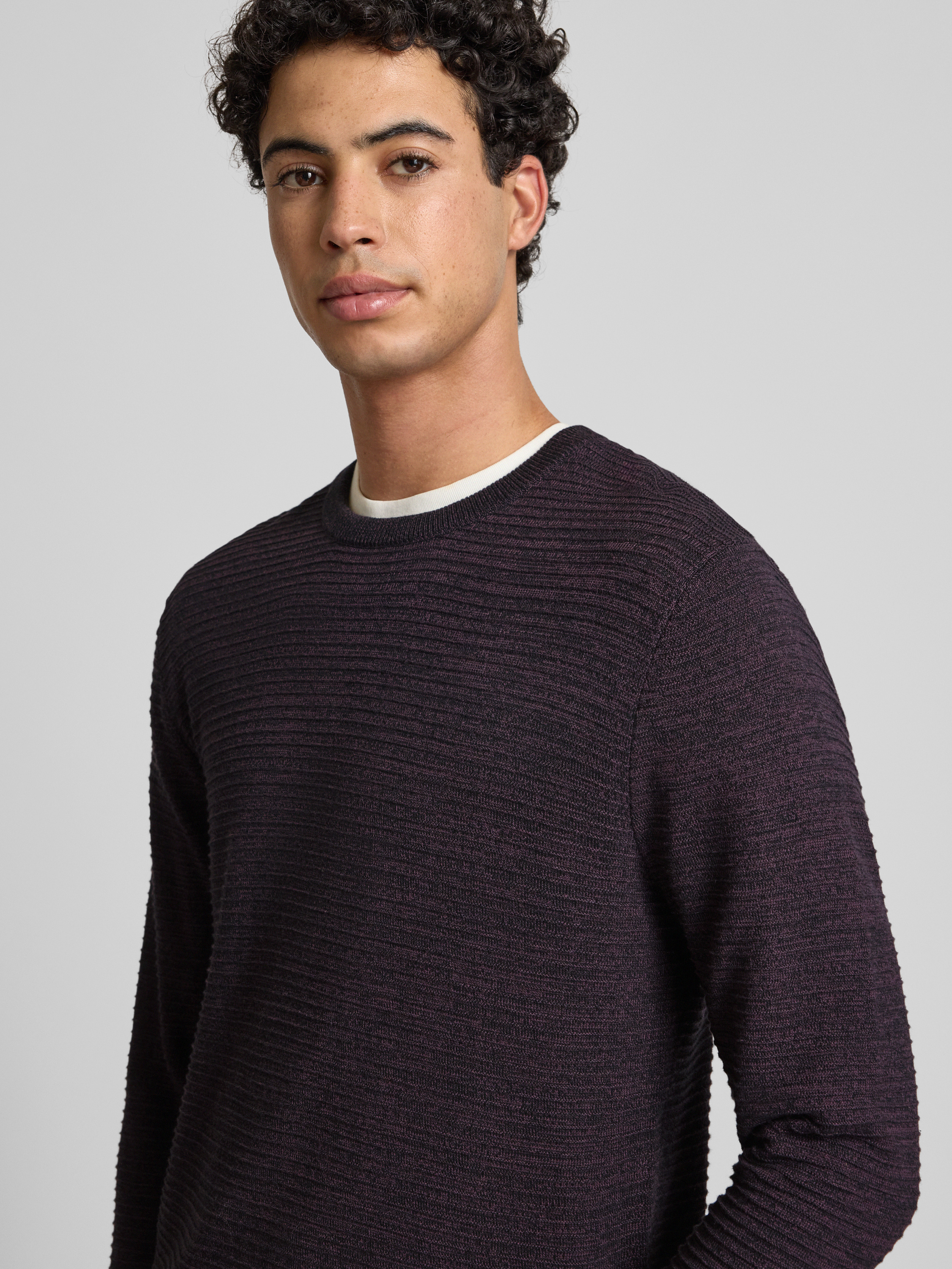 Sweter z dzianiny z okrągłym dekoltem model ‘OTTO’ - bordowy melanż