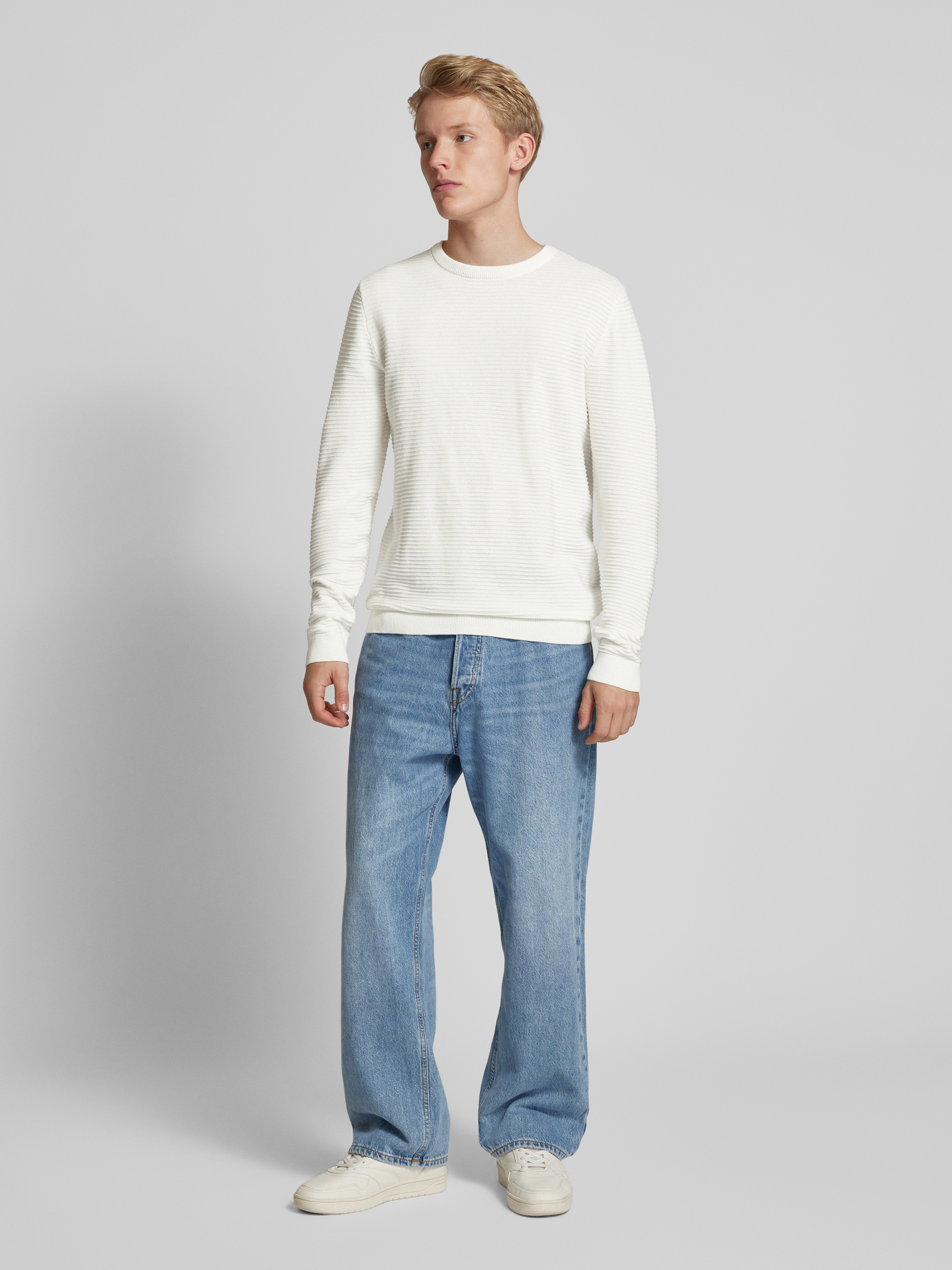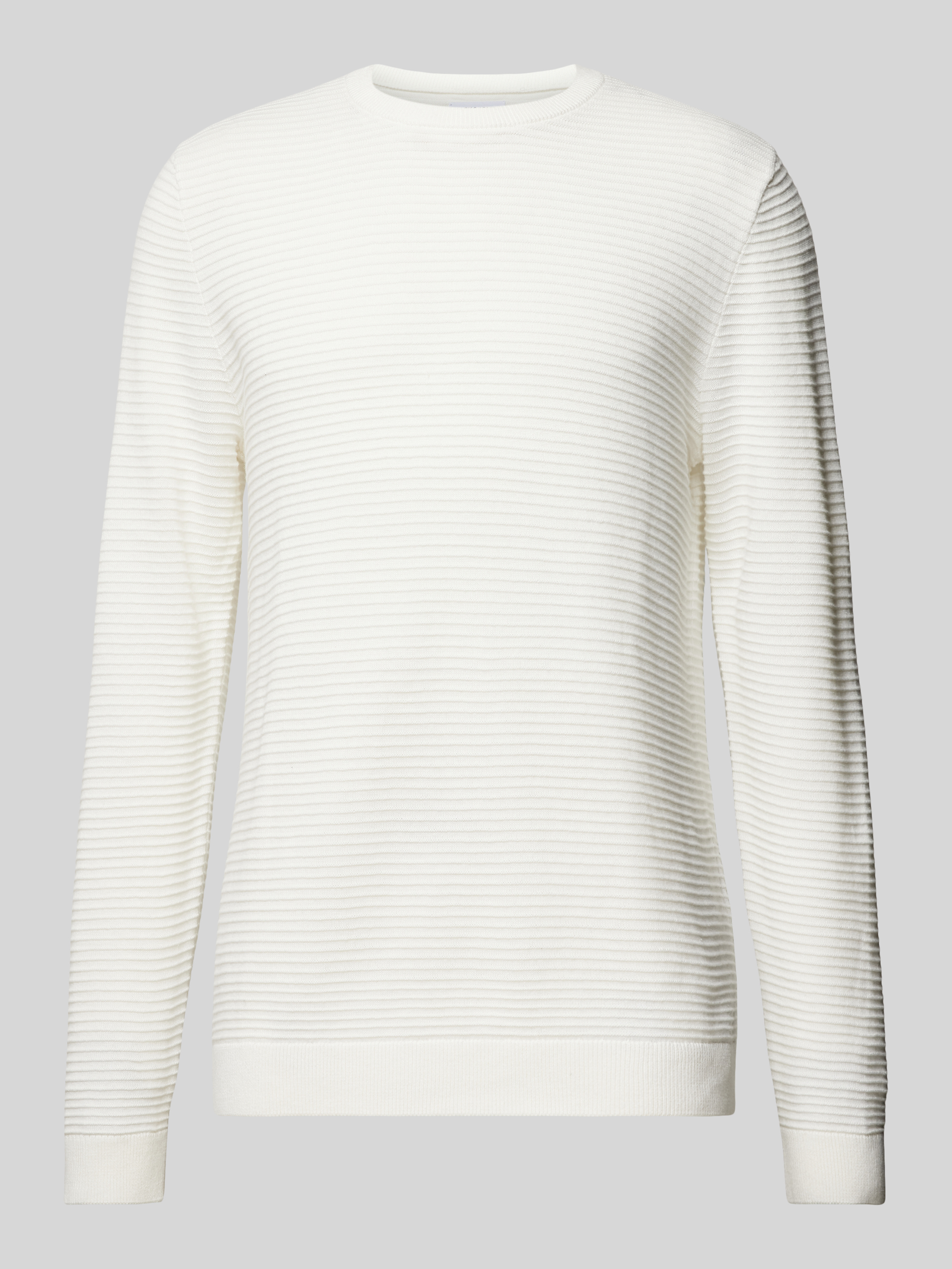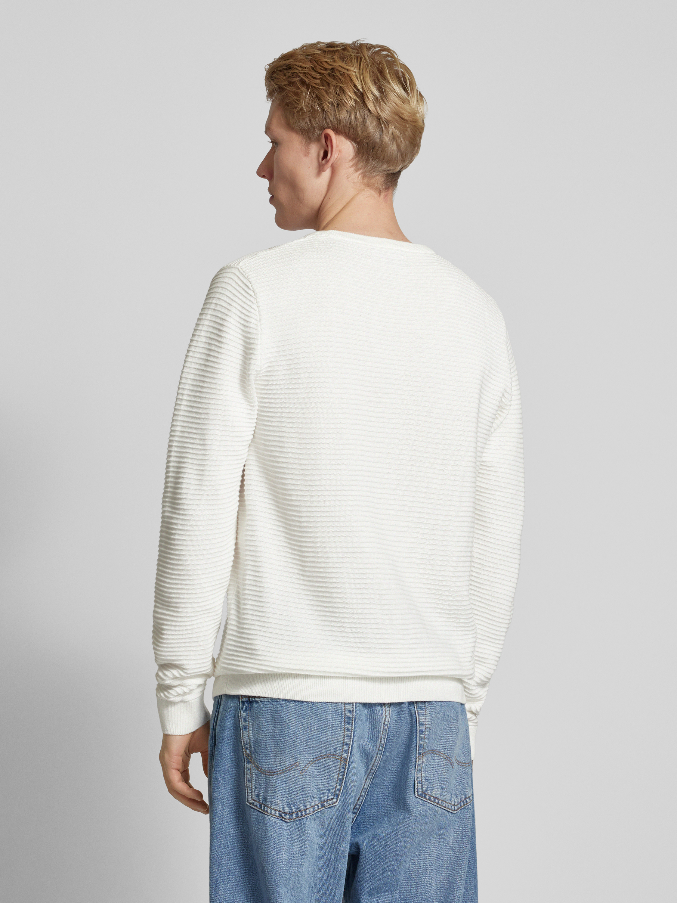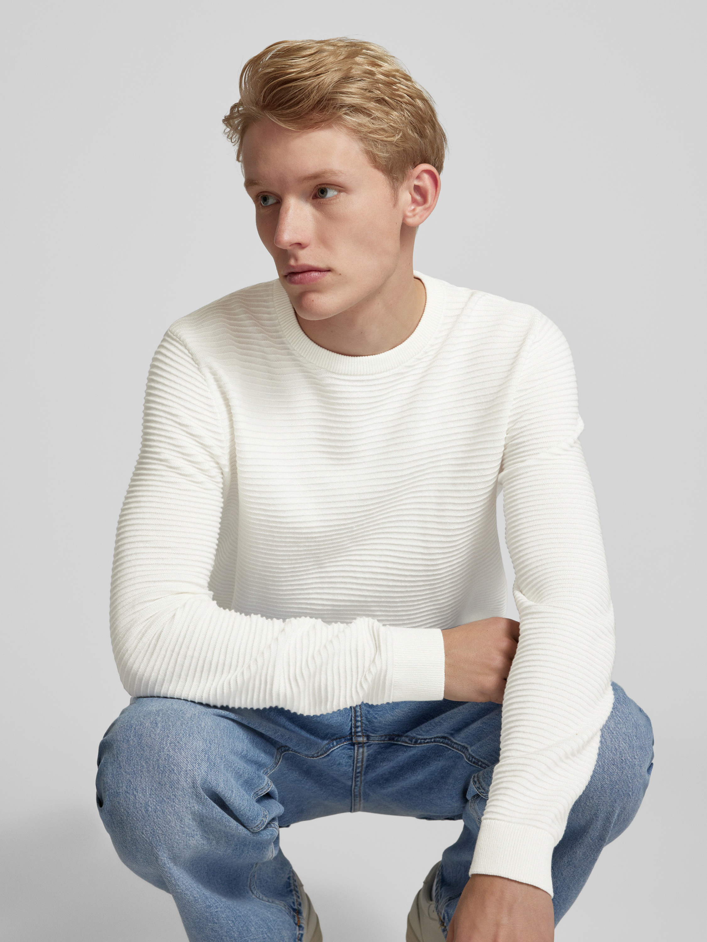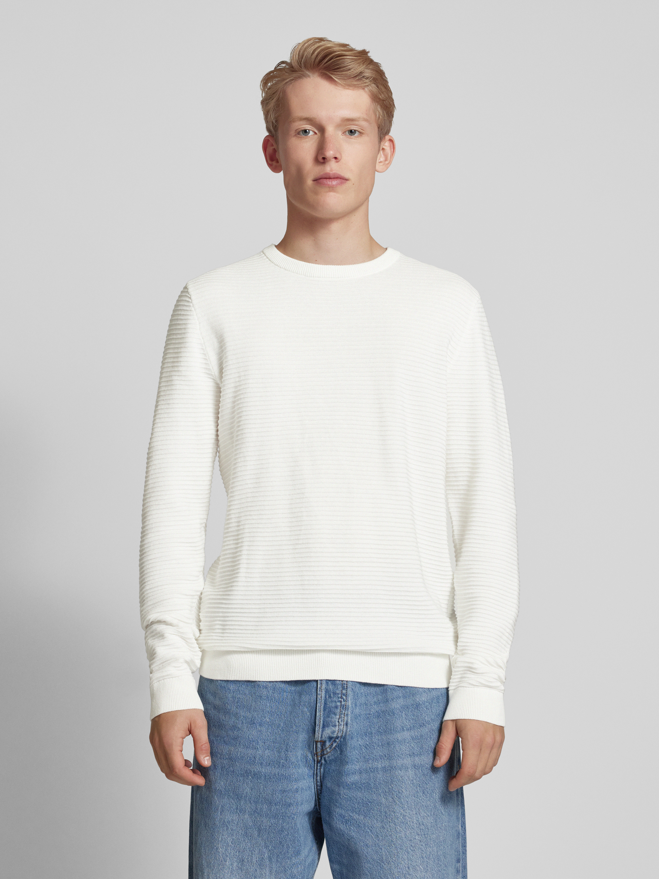 Sweter z dzianiny z okrągłym dekoltem model ‘OTTO’ - złamany biały
