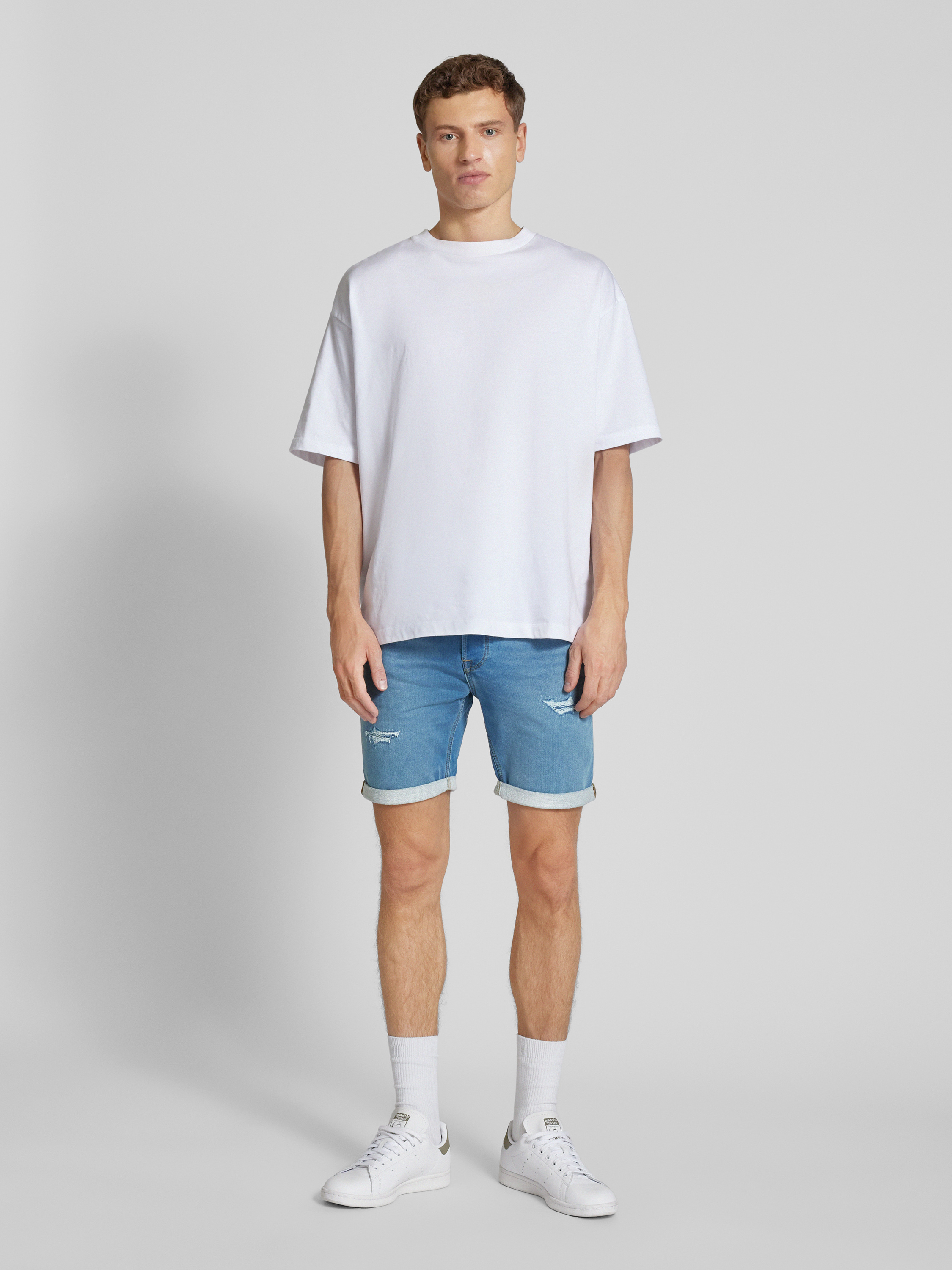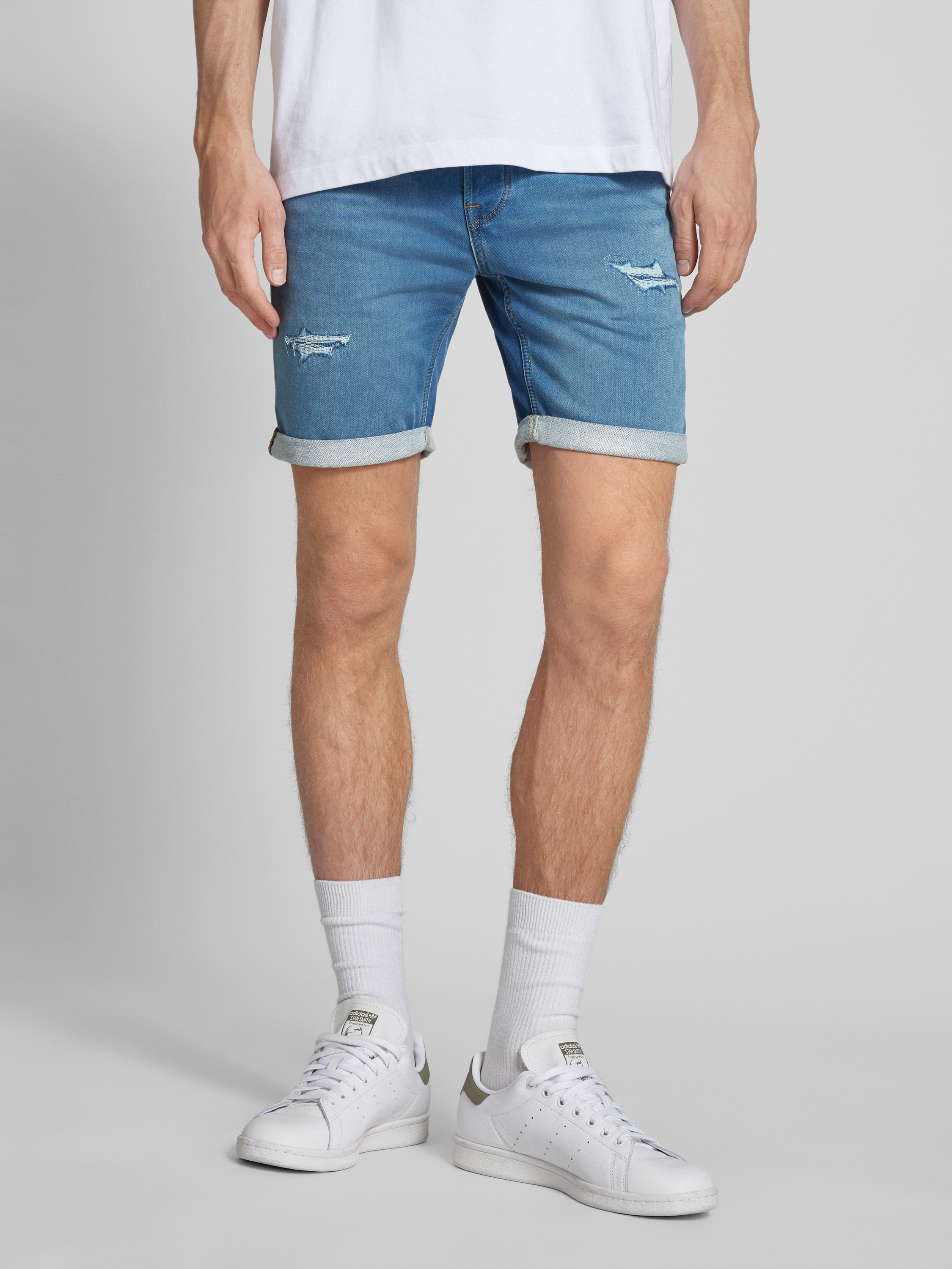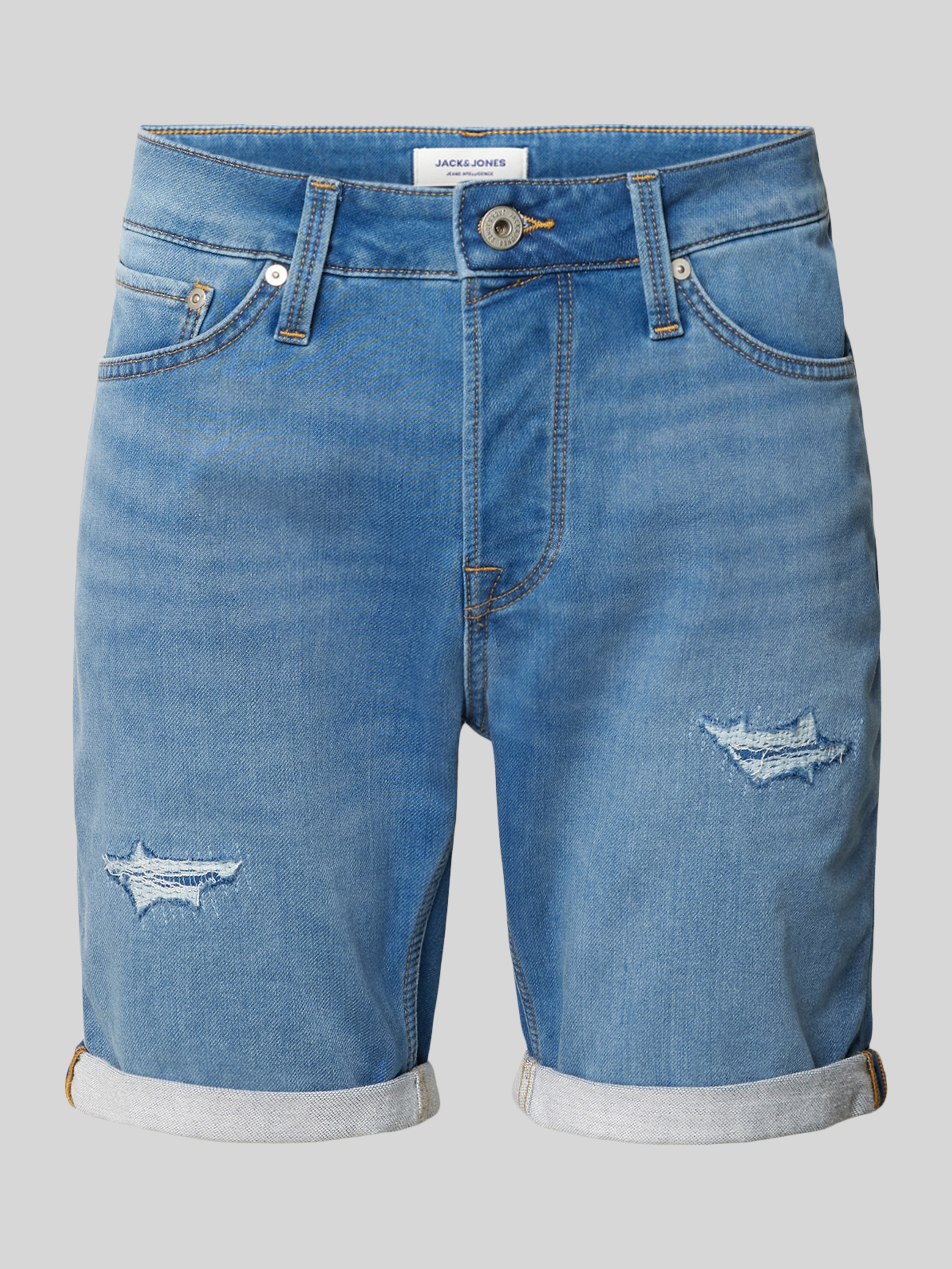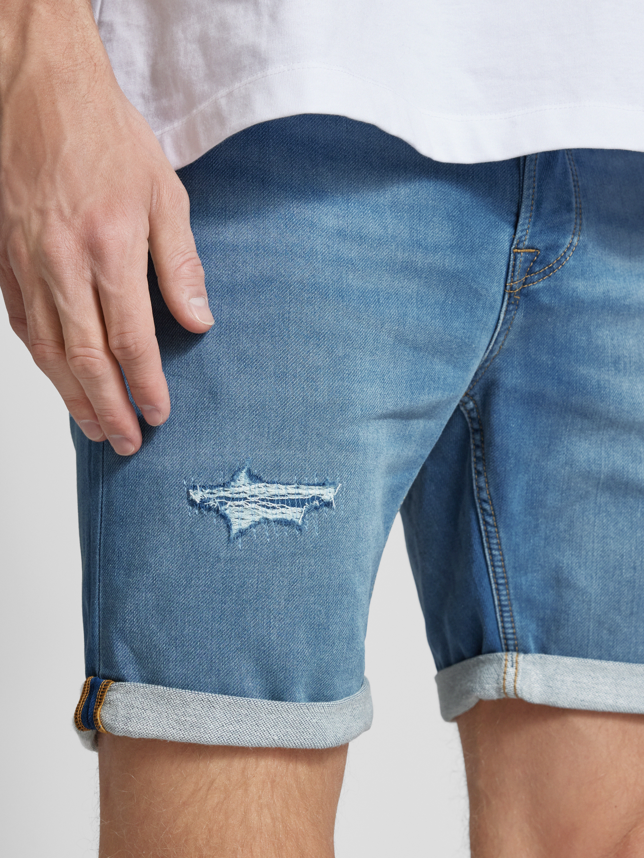 Szorty jeansowe o kroju regular fit z przetarciami model ‘RICK’ - niebieski