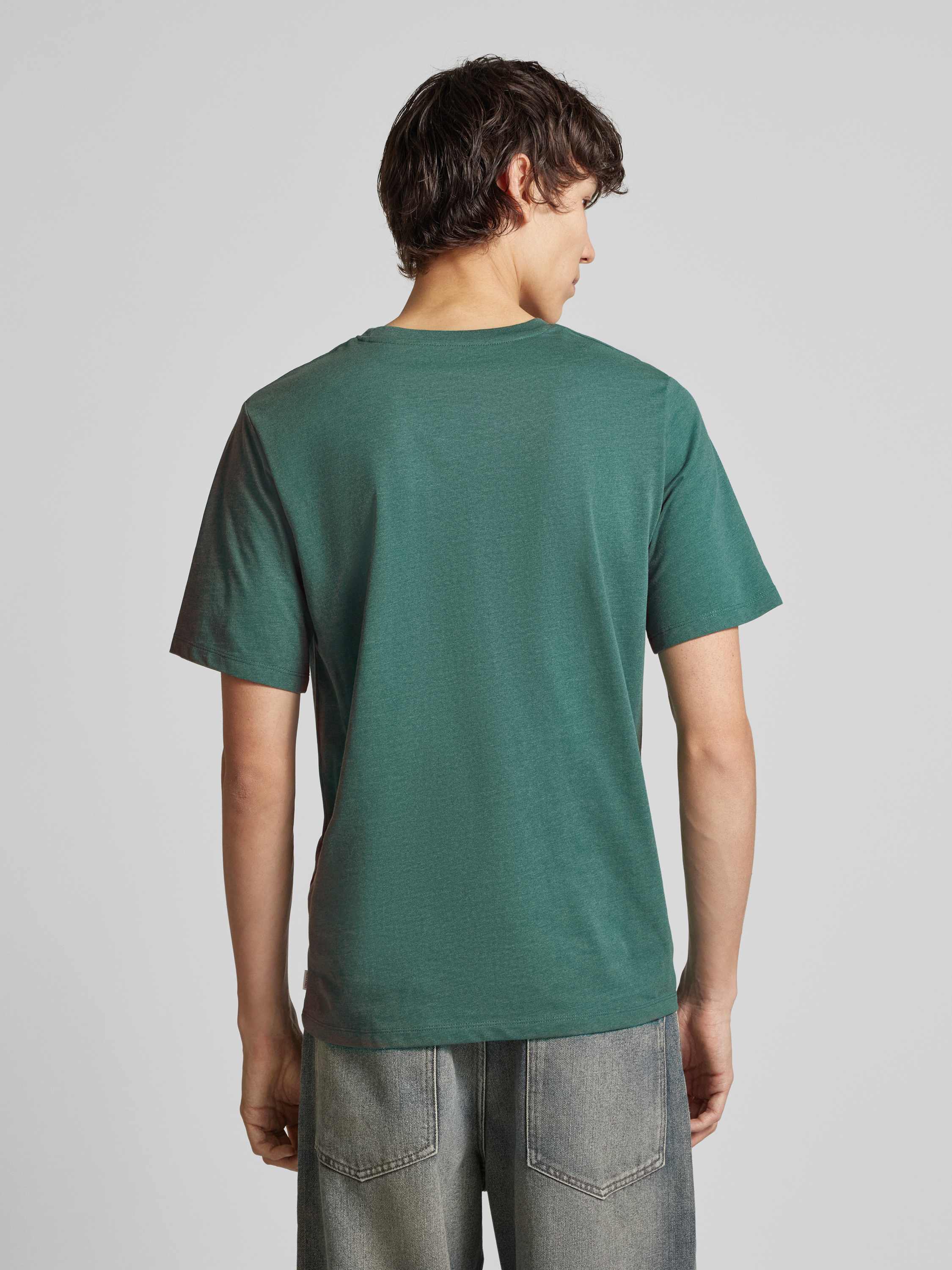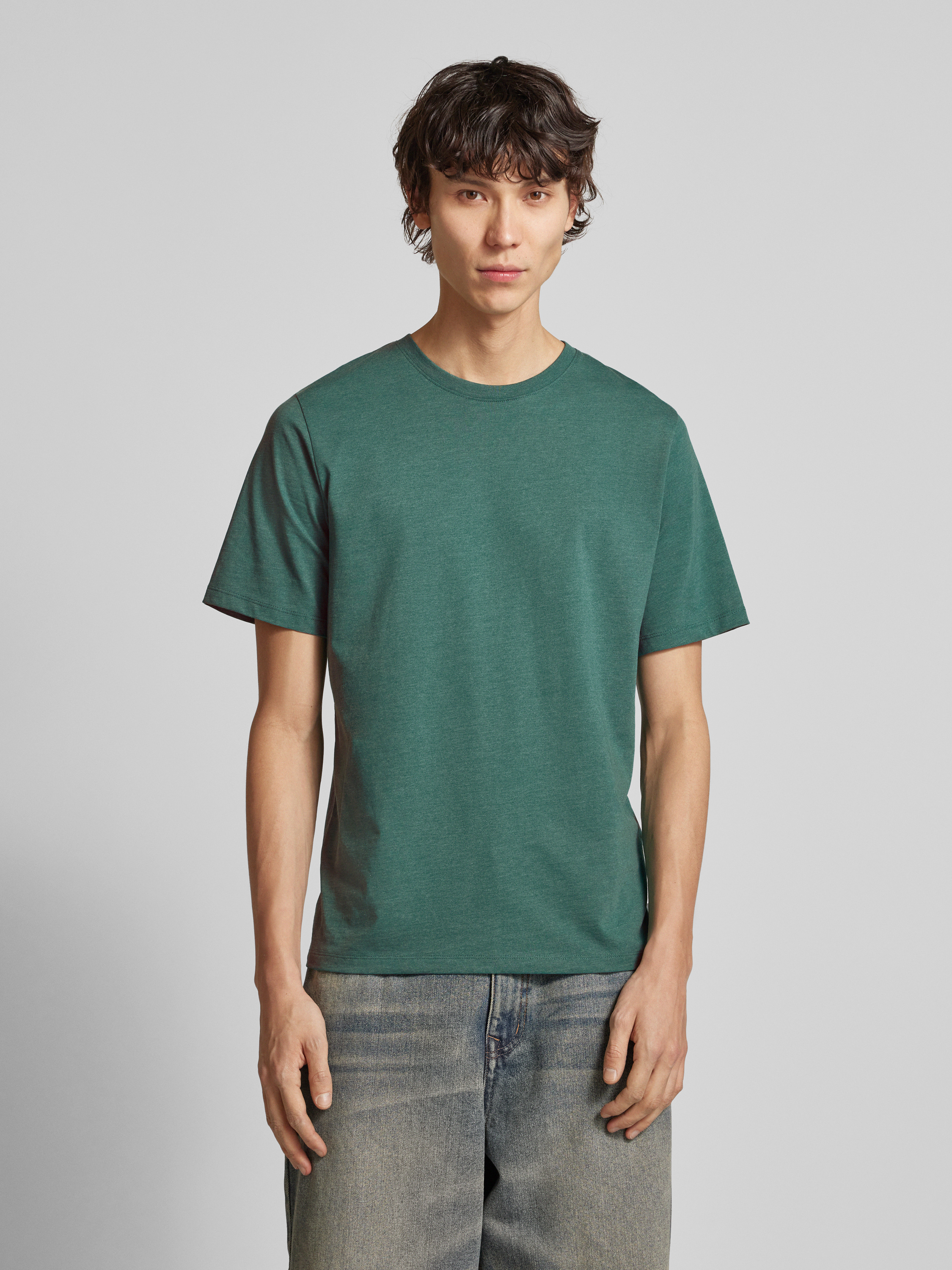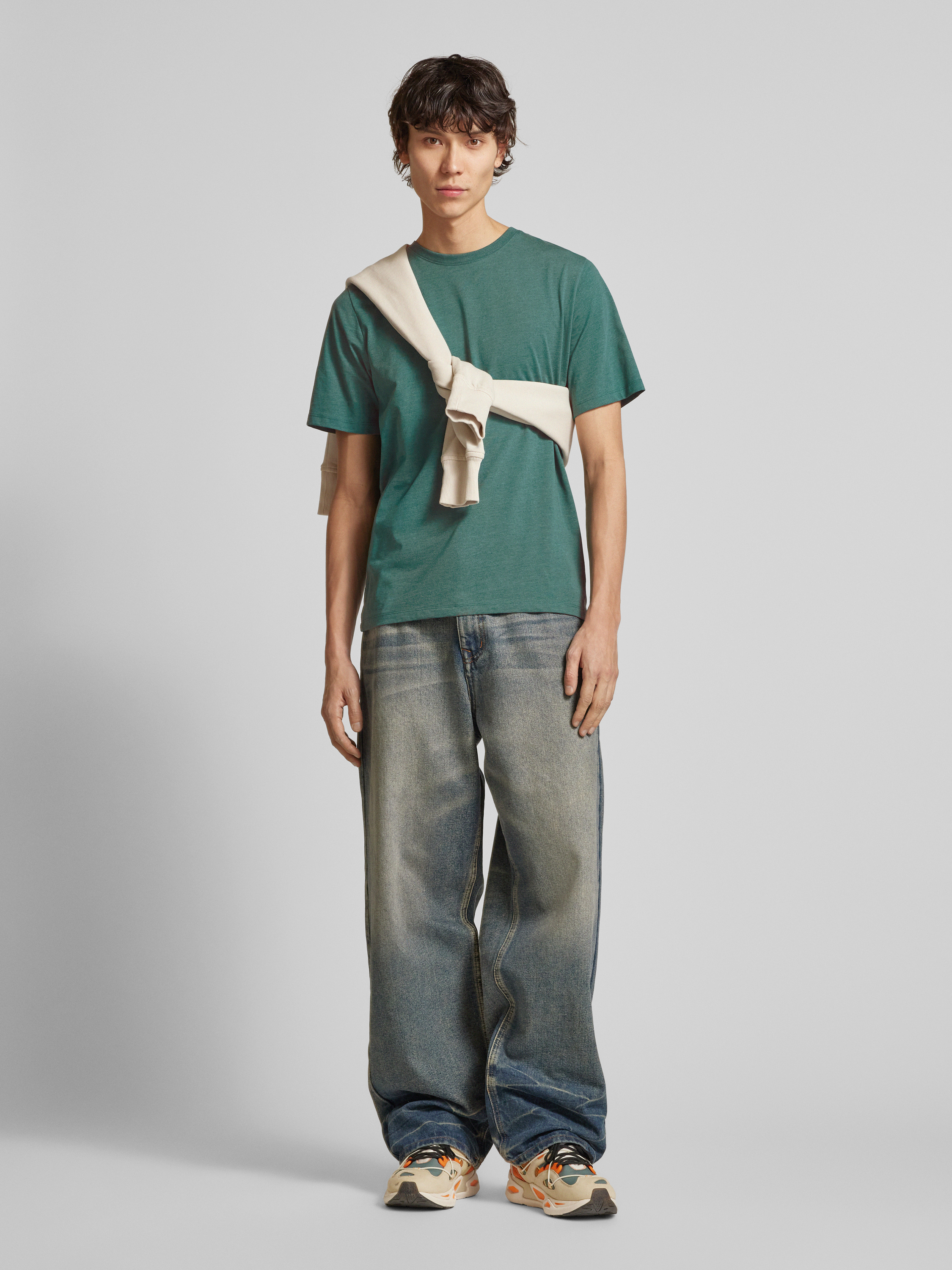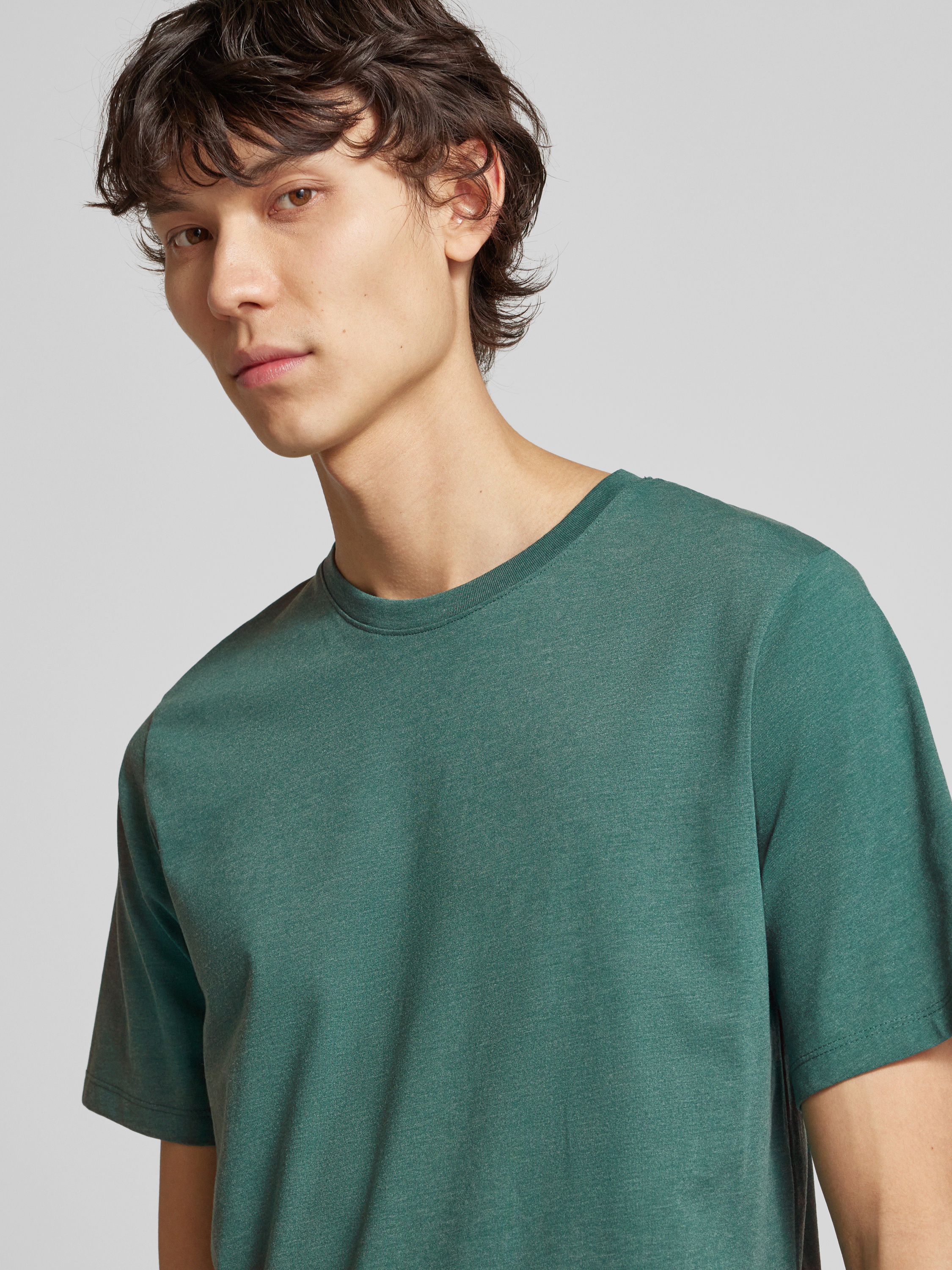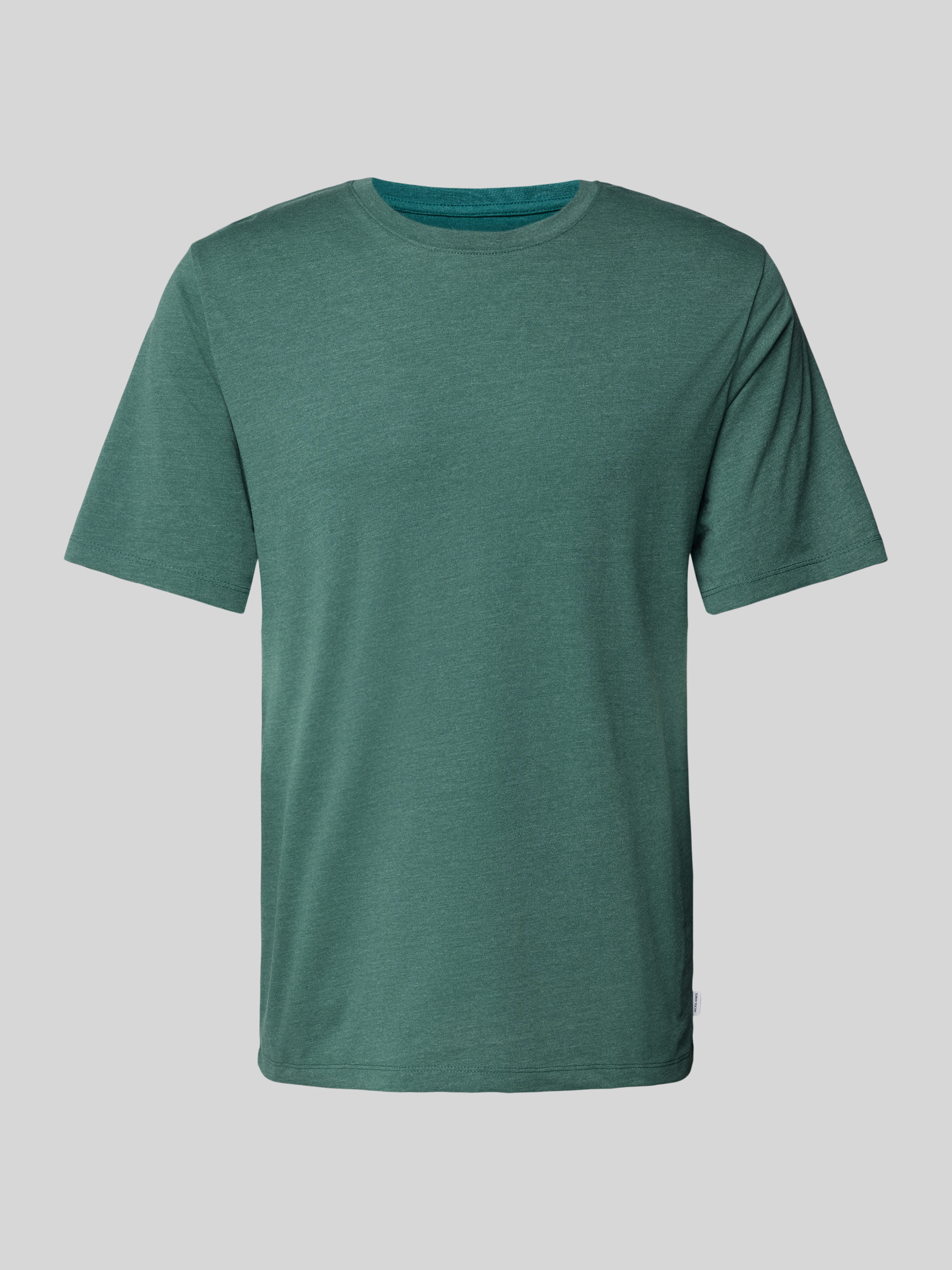T-shirt z prążkowanym okrągłym dekoltem - petrol melanż