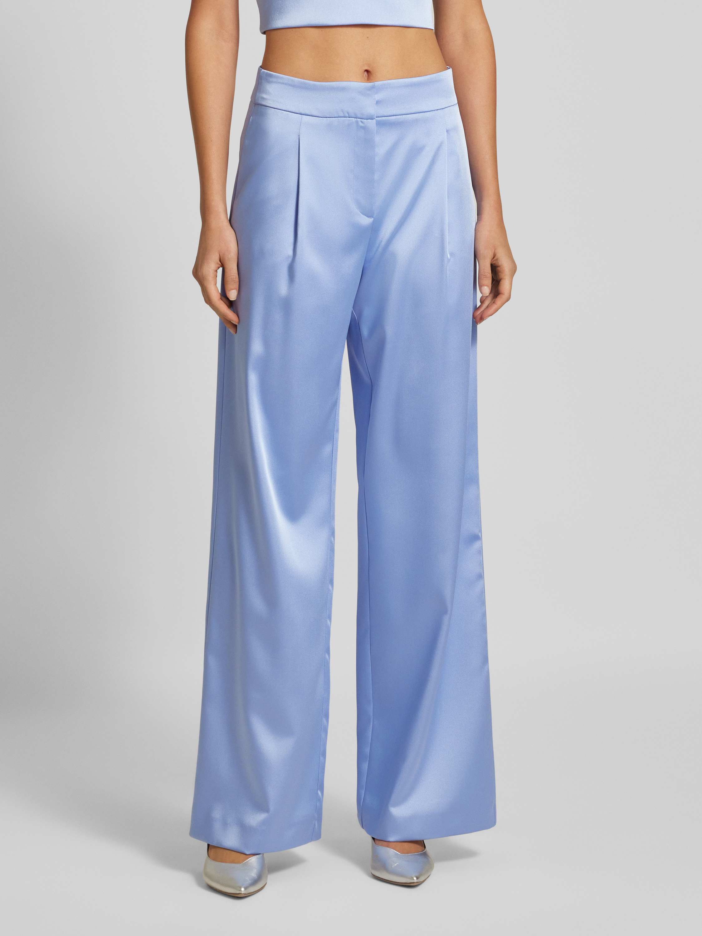 Spodnie z zakładkami w pasie, szerokimi nogawkami i wpuszczanymi kieszeniami - błękitny