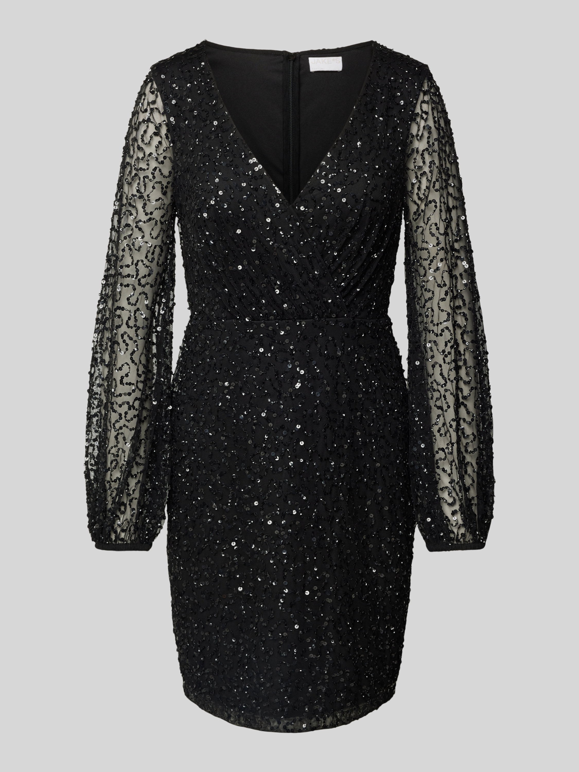 Sukienka koktajlowa z cekinowym obszyciem - czarny