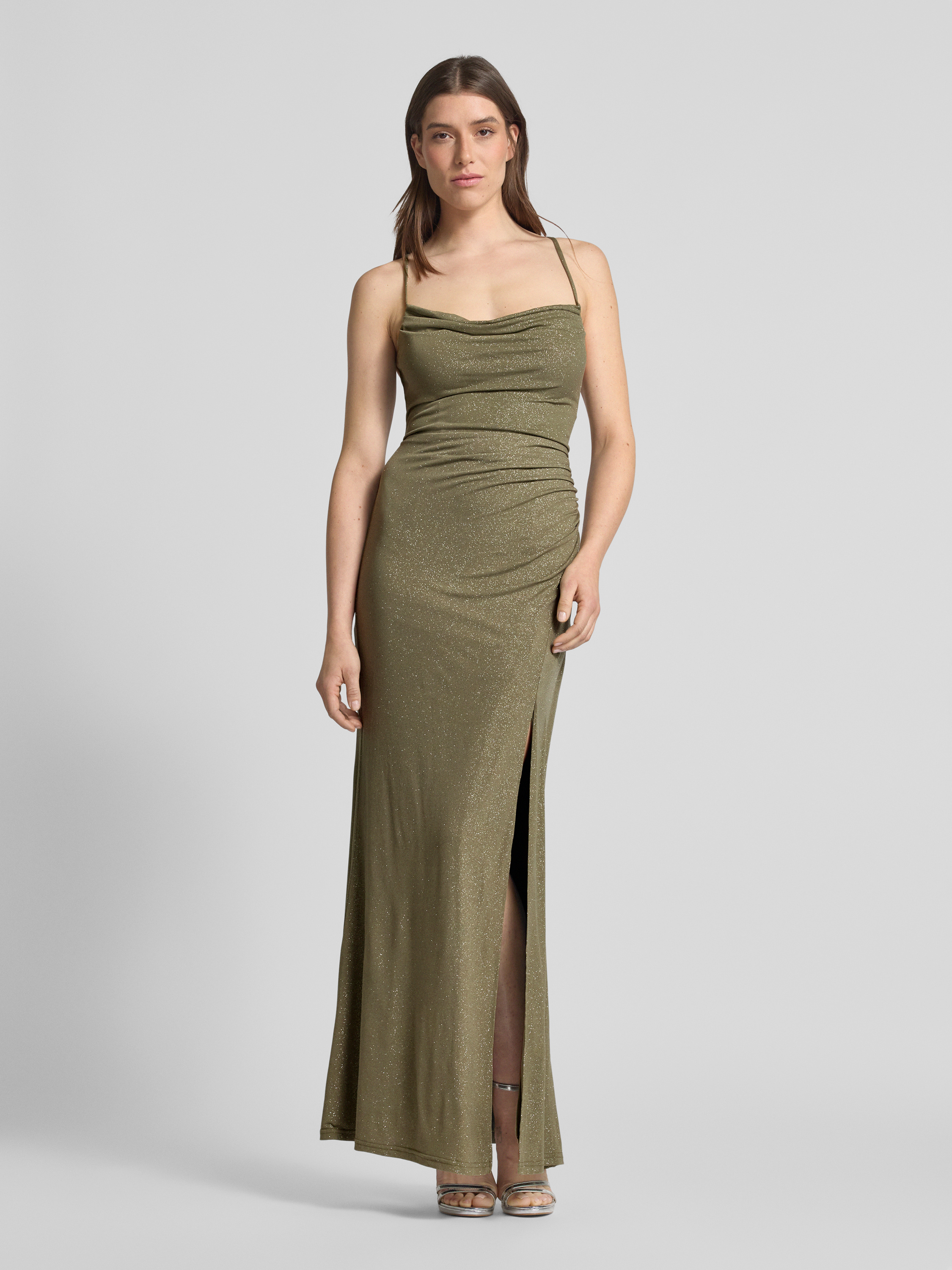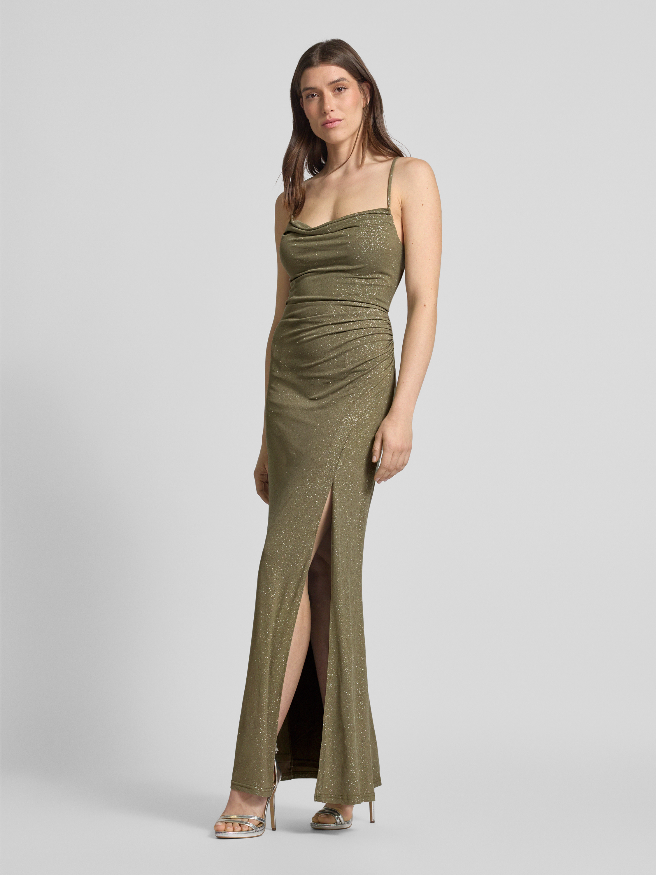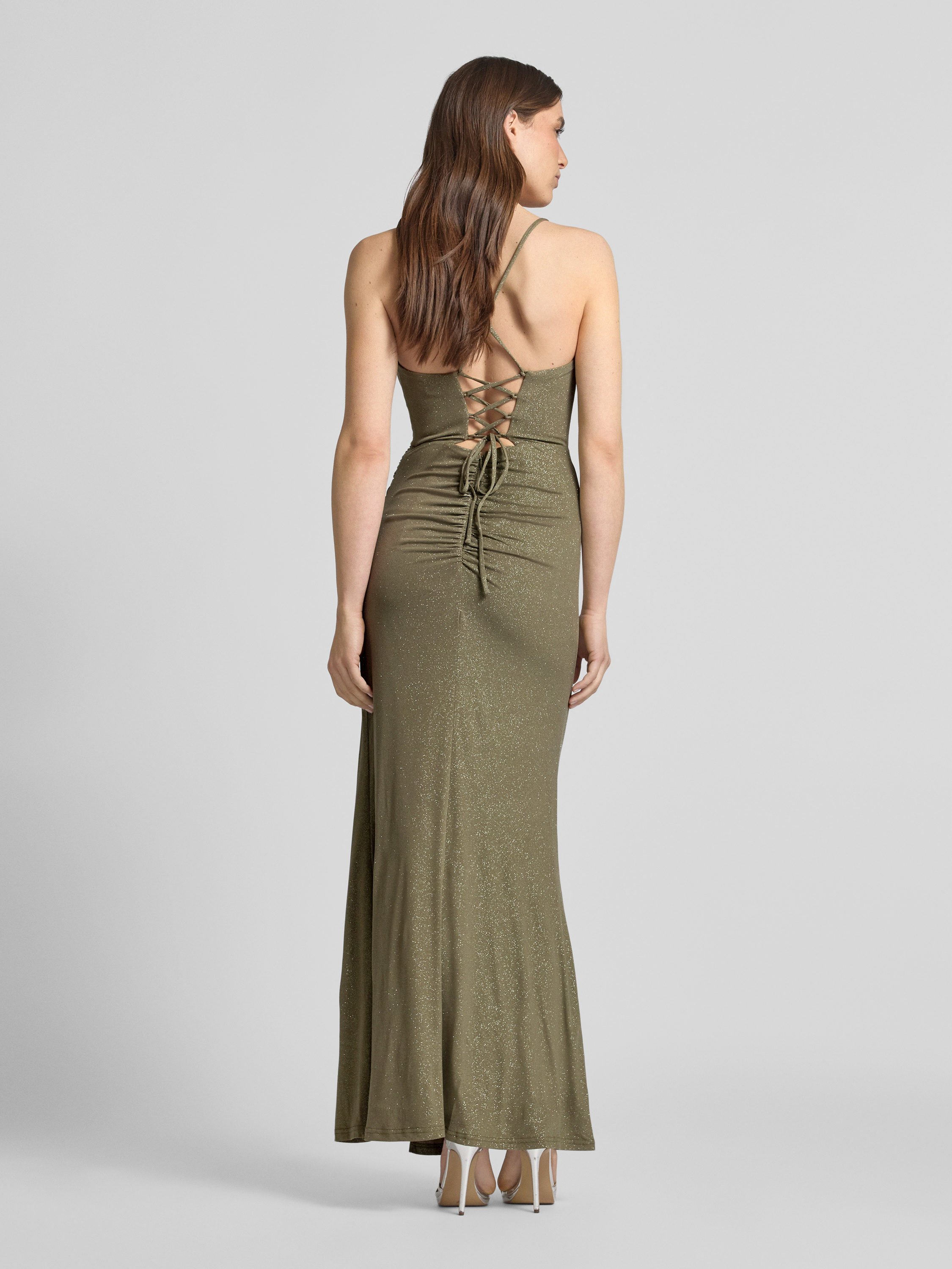 Sukienka koktajlowa z marszczeniami - oliwkowy